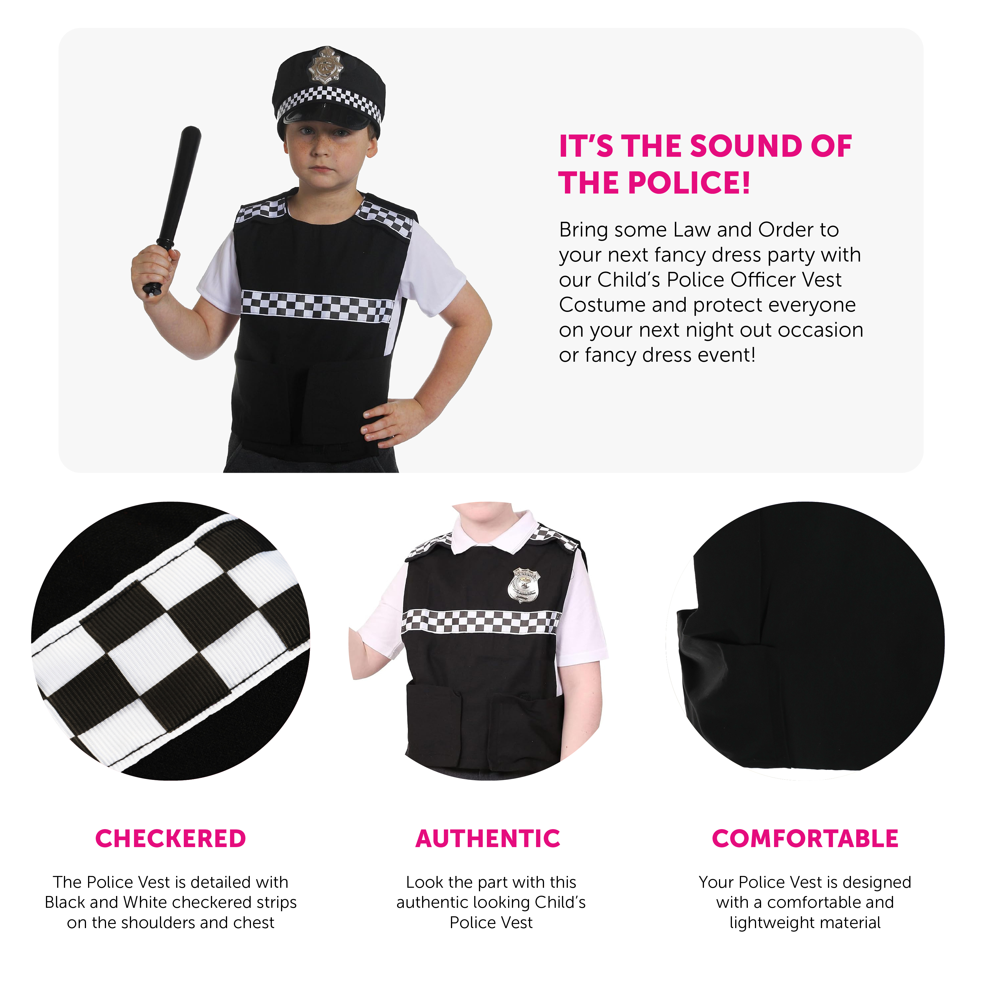 CHILD'S POLICE VEST COSTUME: Bring some Law and Order to your next fancy dress party with our Child's Police Officer Vest Costume and protect everyone on your next night out occasion or fancy dress event!