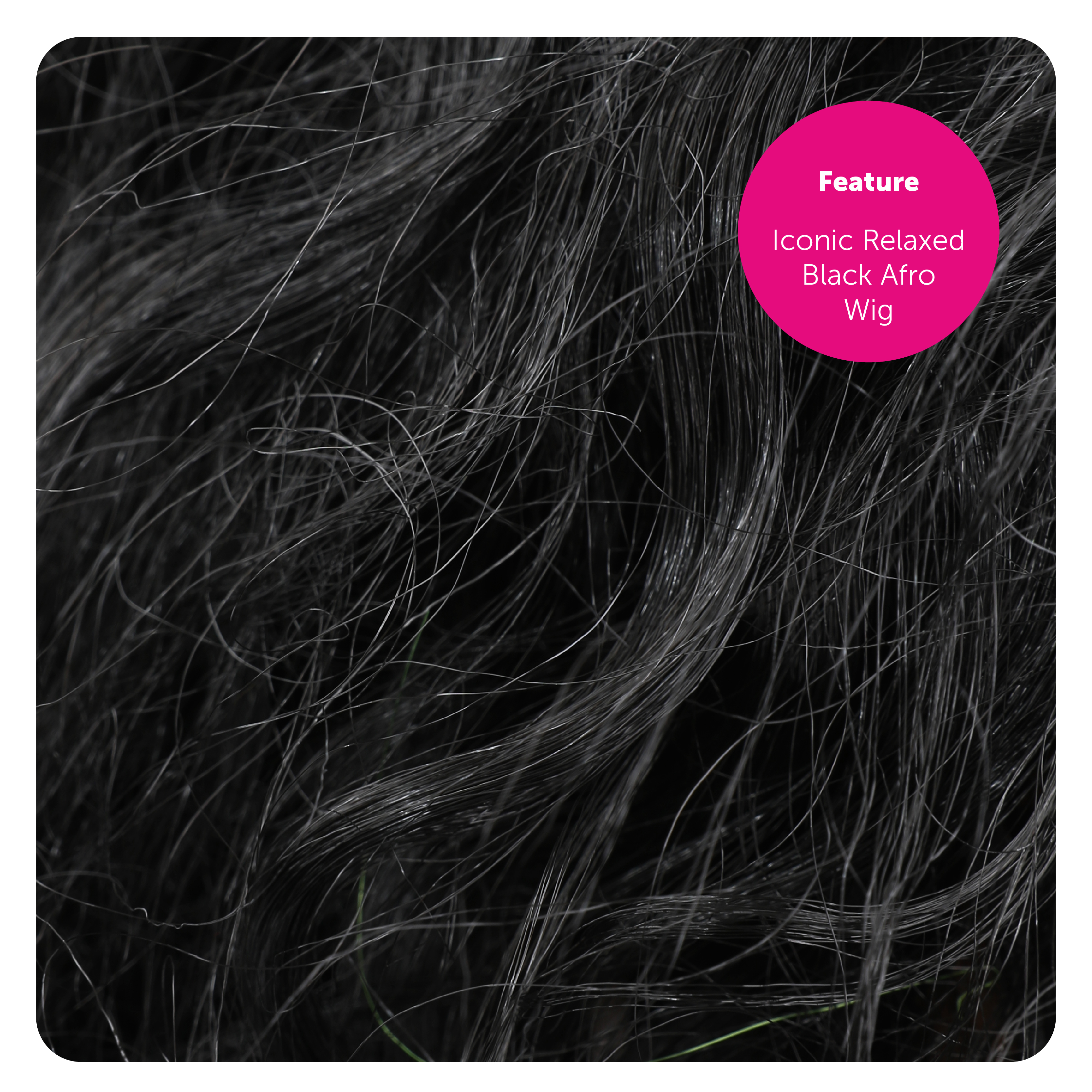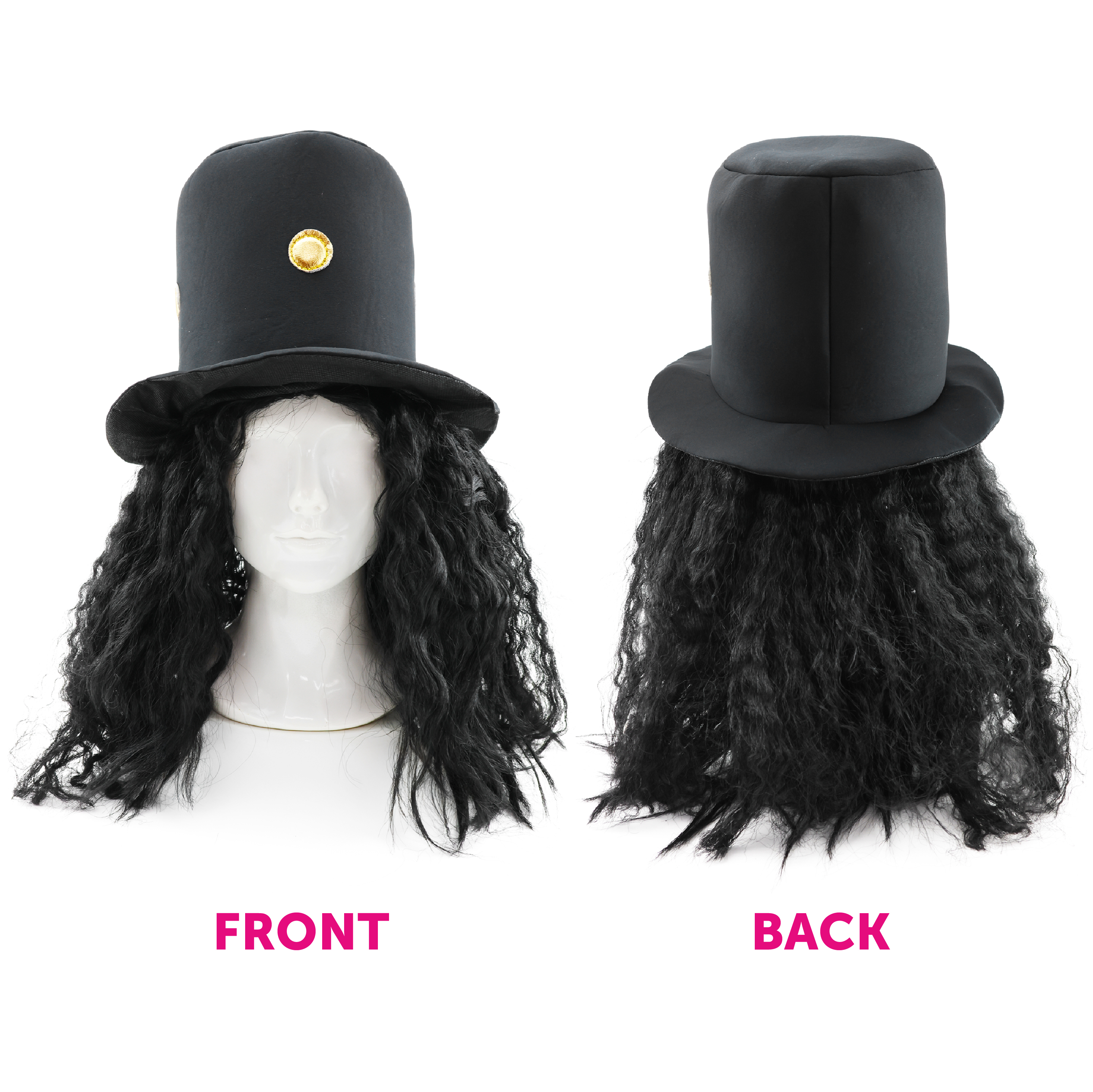 ACCESSORY SET INCLUDES: This Accessory Set includes a tall Black Top Hat with Gold detail and long hair attached, a wet-look, Relaxed Black Afro Wig, Gold Frame Sunglasses, a pair of Black Fingerless Gloves with Silver Stud detail and a Silver Cross Necklace!