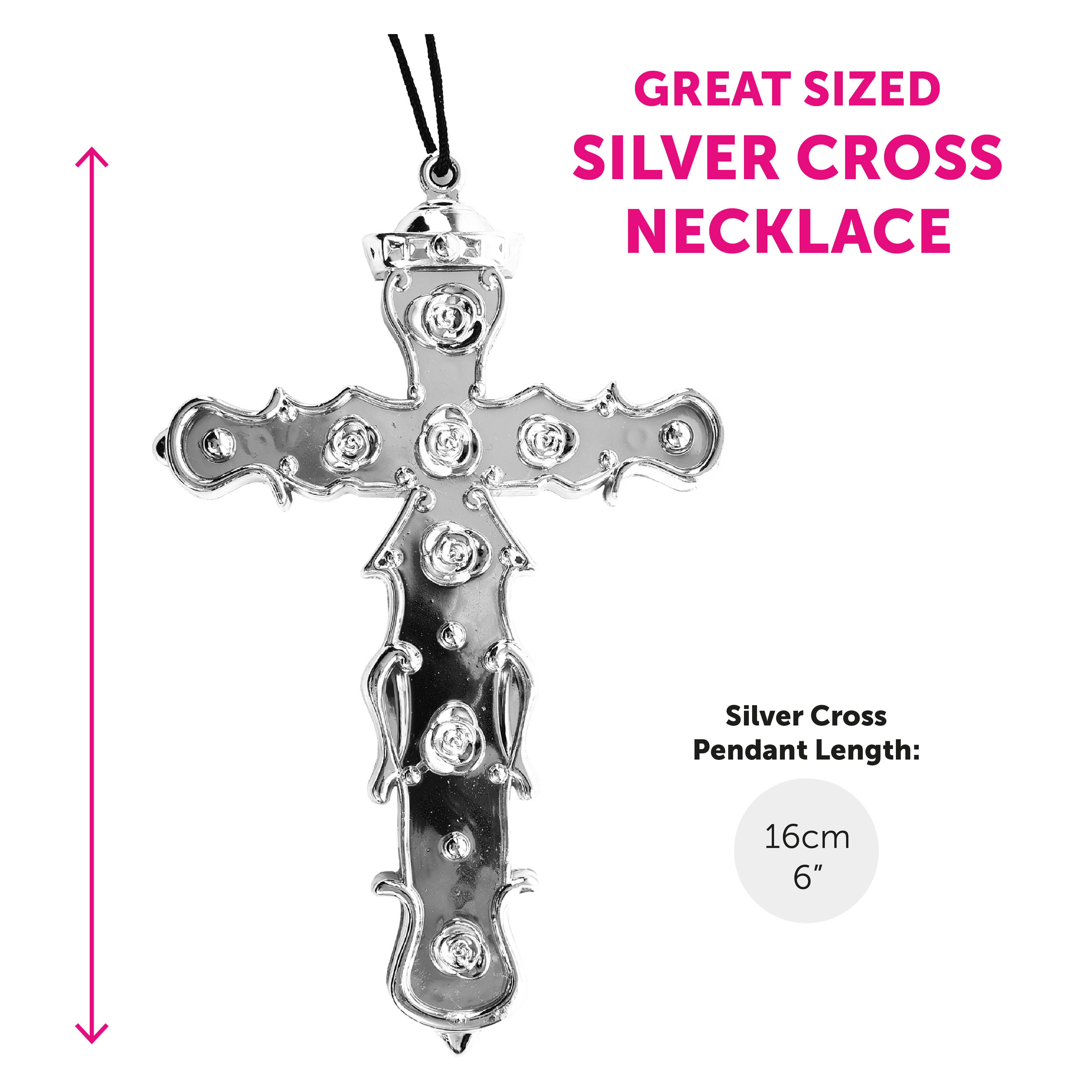 GREAT SIZED NECKLACE: The Silver Cross Necklace is a great sized accessory to add to your iconic costume, with the pendant measuring a length of 16cm (6"), and the cord measuring a full length of 74cm (29")
