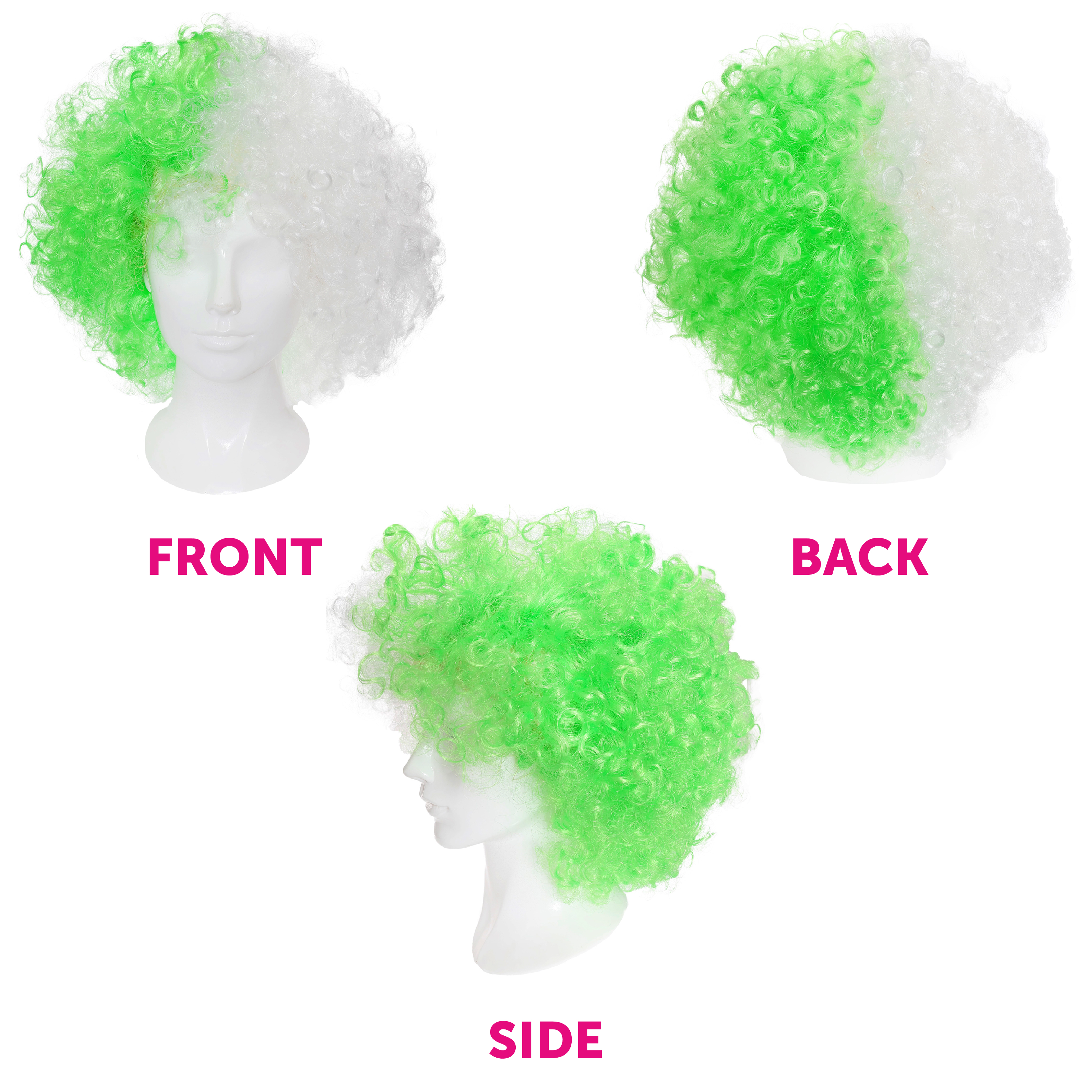 AVAILABLE IN MULTIPLE PACKS: Not only do you get an already amazing wig for yourself, if you’re looking to turn heads with your friends, then check out our Green and White Afro Wigs available in Singles, Packs of 3, Packs of 6, Packs of 12, and a Pack of 24!