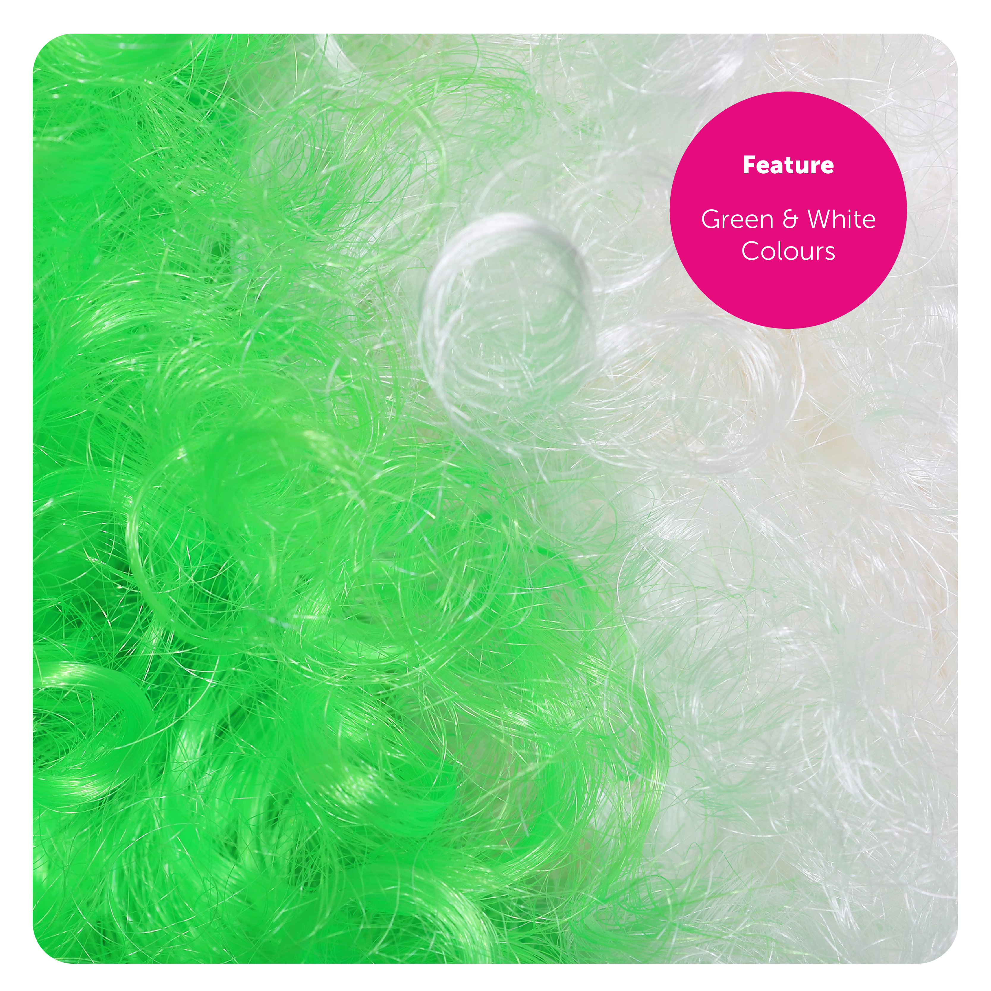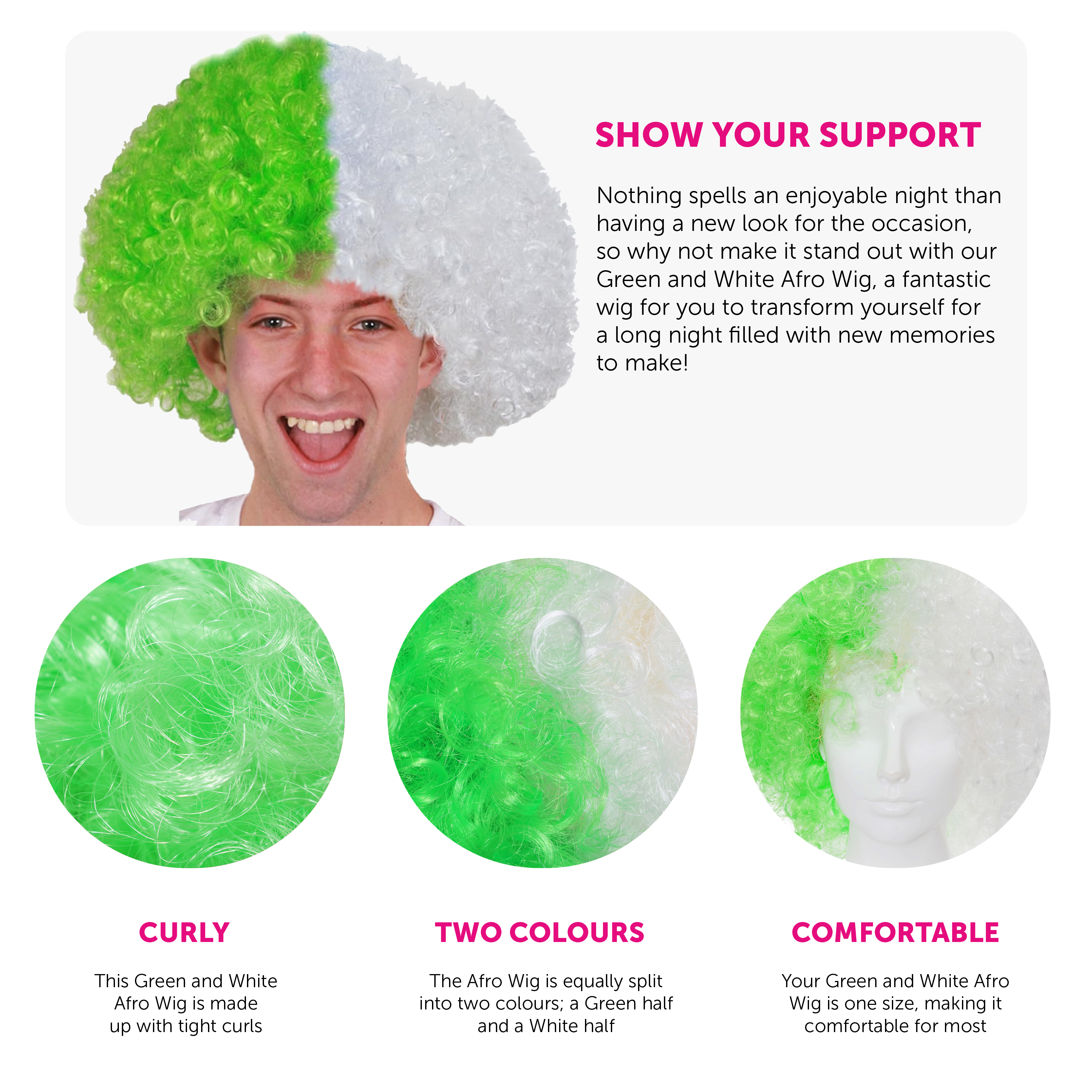 PERFECT FOR FANCY DRESS EVENTS AND OCCASIONS: Whether it be to support your country at Sporting events, or to finish off a general Costume, you can be sure to count on our Green and White Afro Wig for making some great memories!