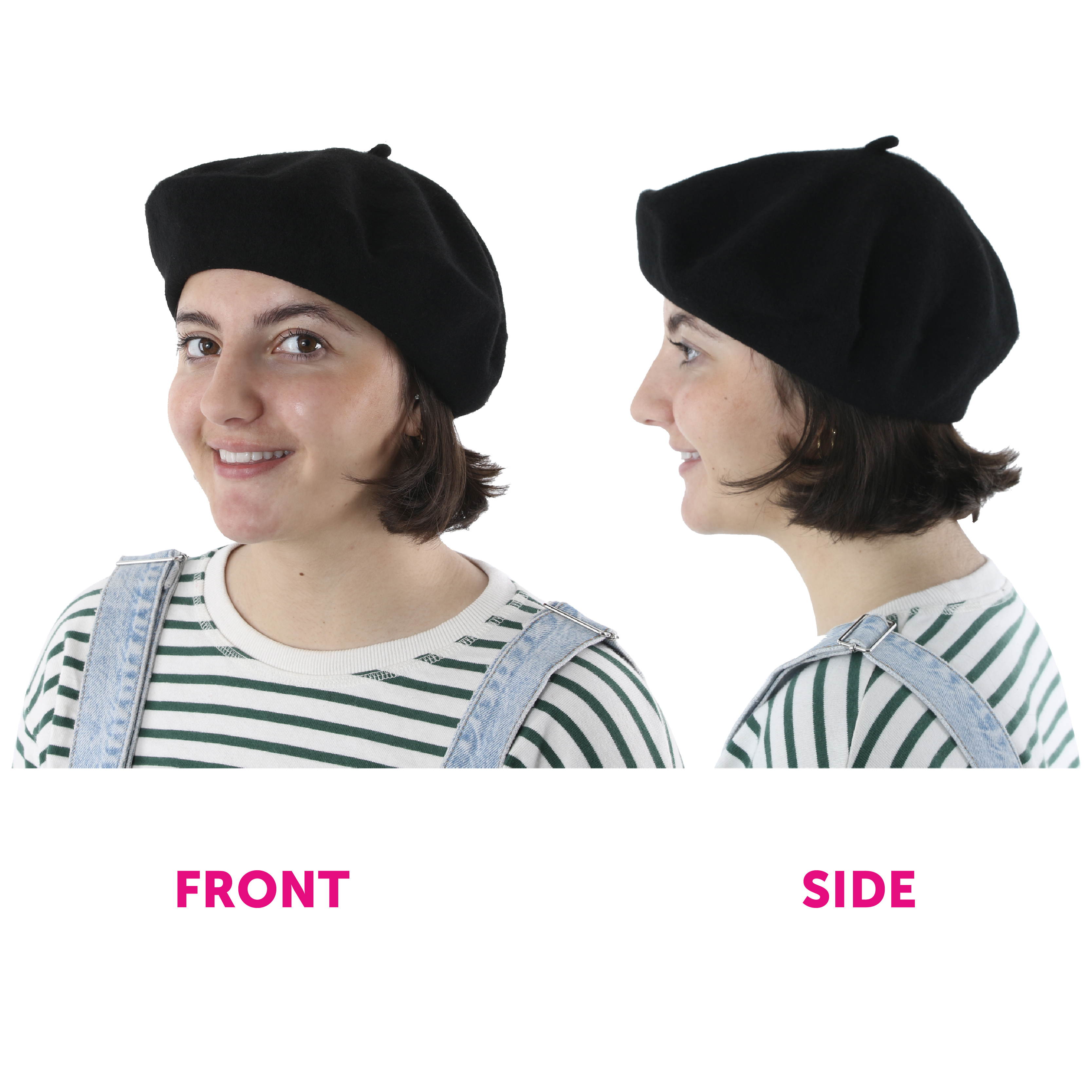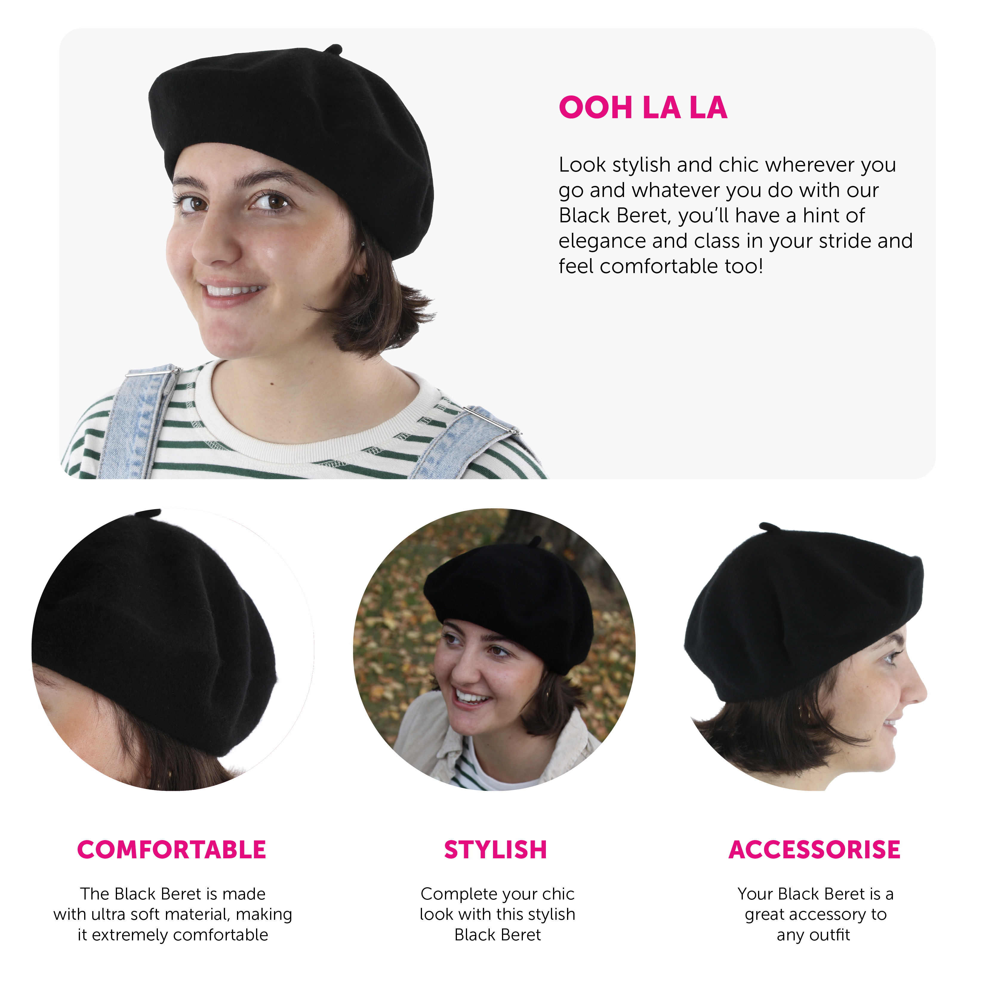 BLACK BERET HAT: Add a sharp and fashionable feature to your seasonal walks and outings with our Black Beret Hats and raise your outfits style up with this perfect hat fit for all seasons of the year!