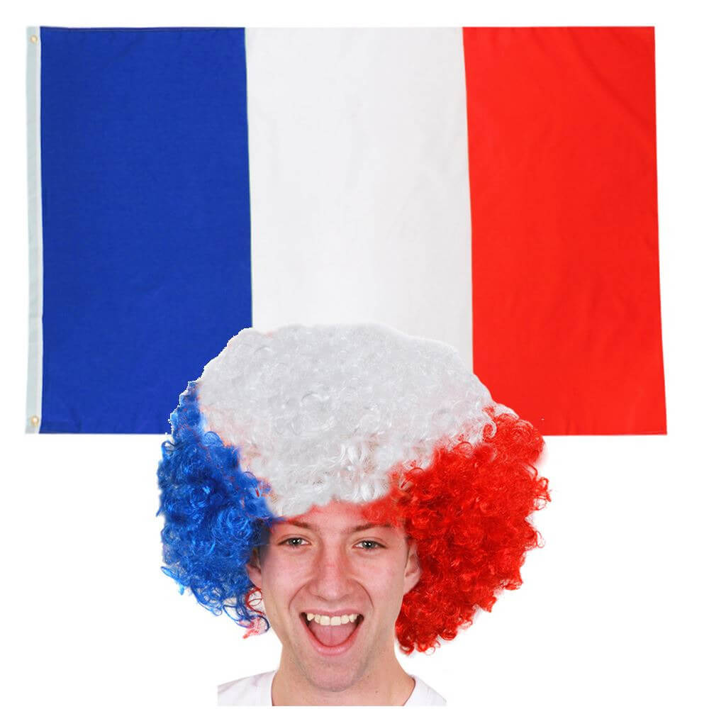 - Includes: 1x France 3ft x 5ft Flag, French Afro Wig