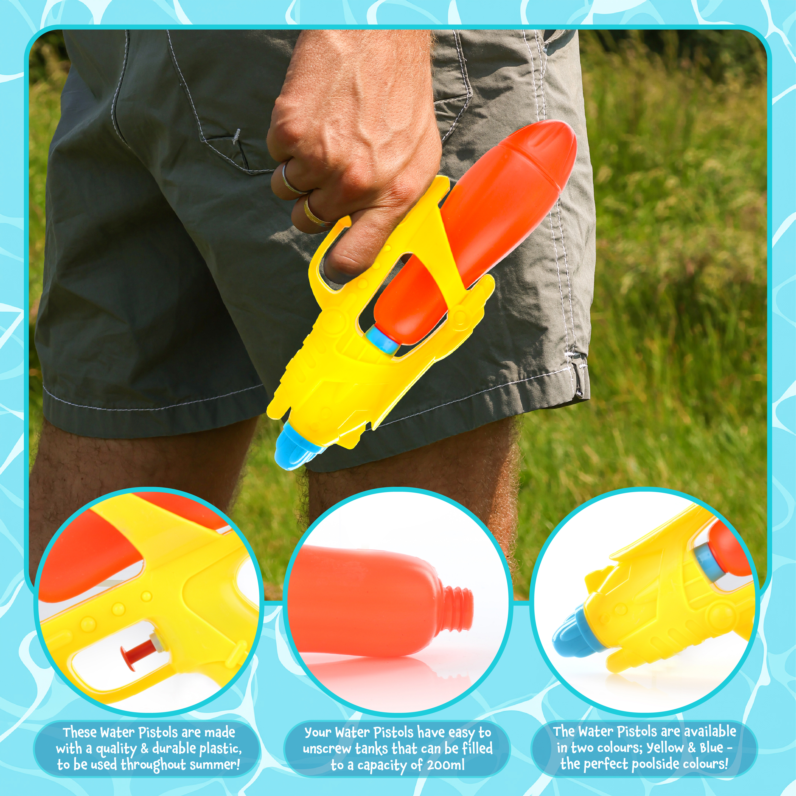 ASSORTED COLOURS – RANDOM SELECTION: These compact water guns come in a range of bold, bright colours. You'll receive one at random in either of the following colour combinations: