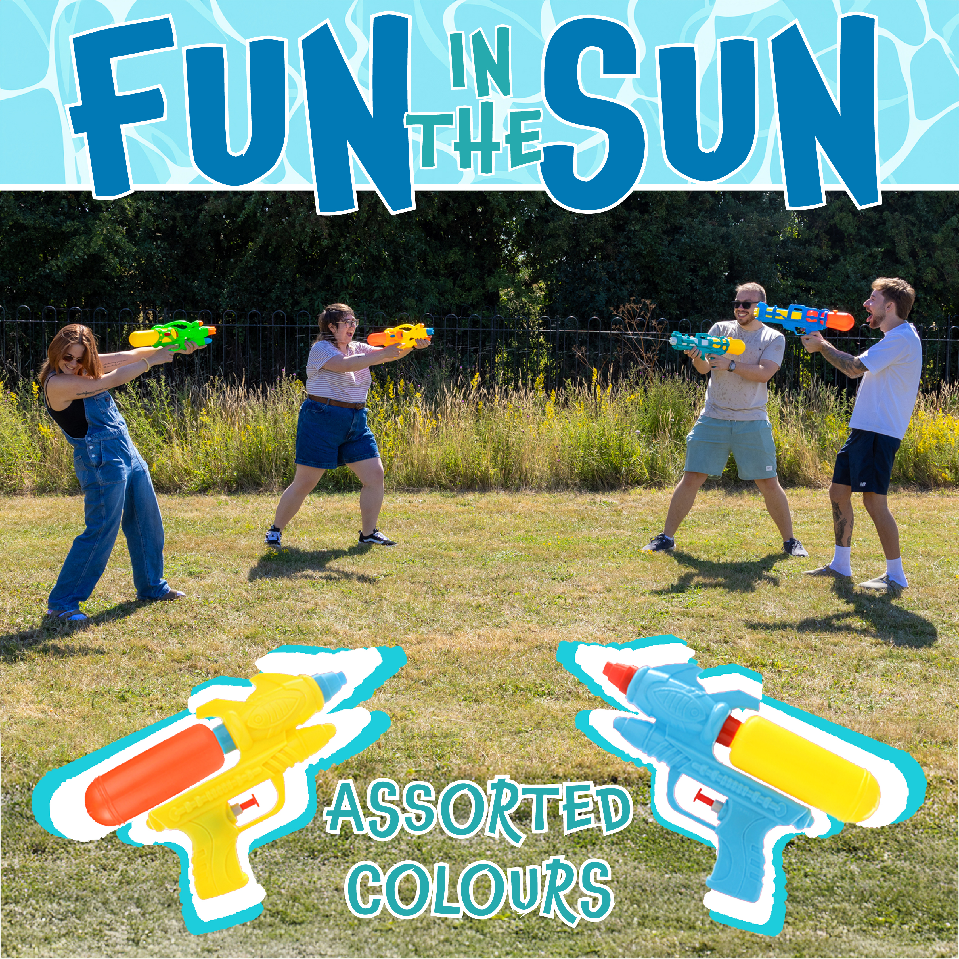 ASSORTED COLOURS – RANDOM SELECTION: Water Guns come in bold, bright colour combinations and are supplied at random in one of the following styles: