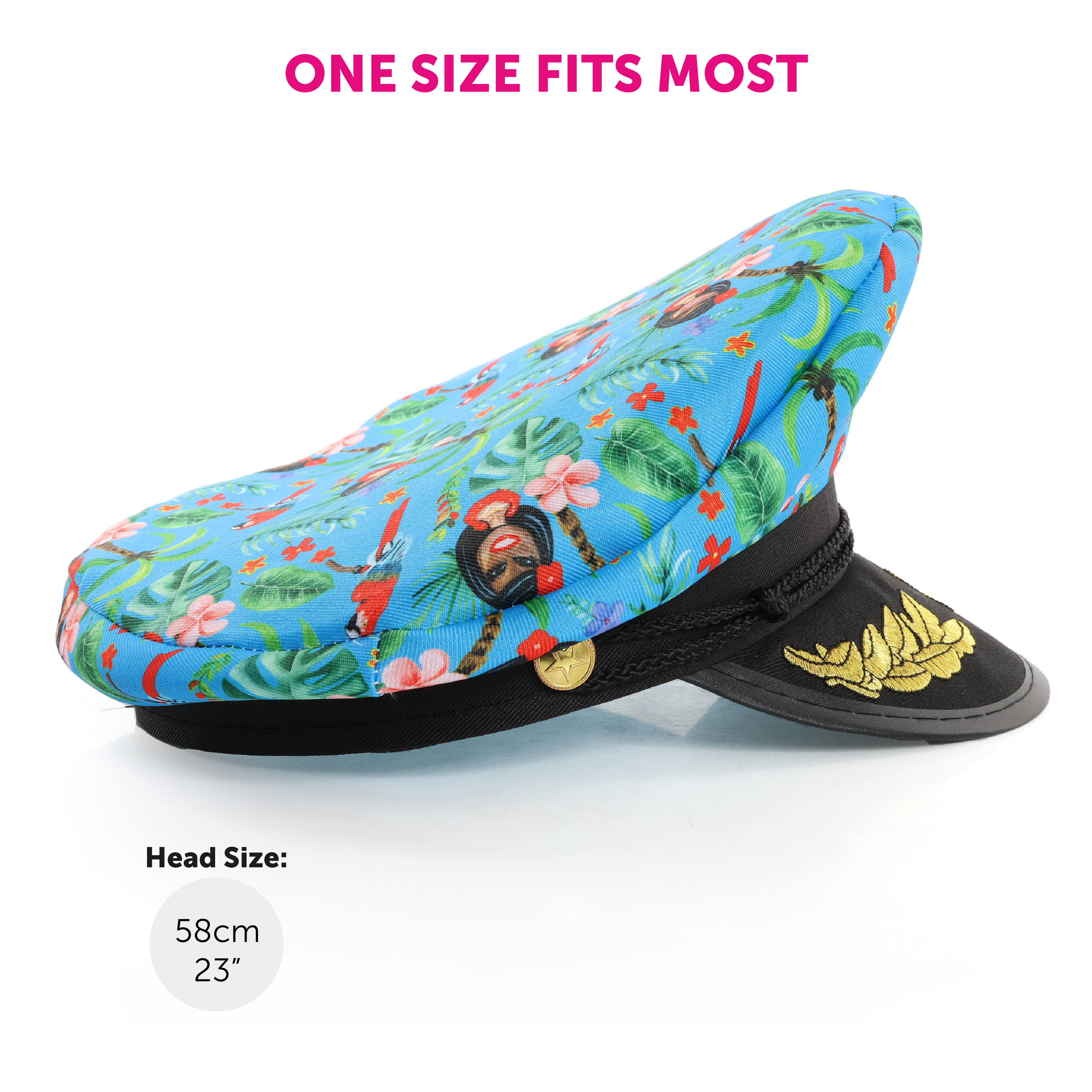 ONE SIZE HAT: No matter the size or shape of your head, this Hawaiian Sailors Captain Hat is 58cm (23") in head circumference, and will fit any adult with comfort, ease, and a firm positioning to keep you sailing through the day!