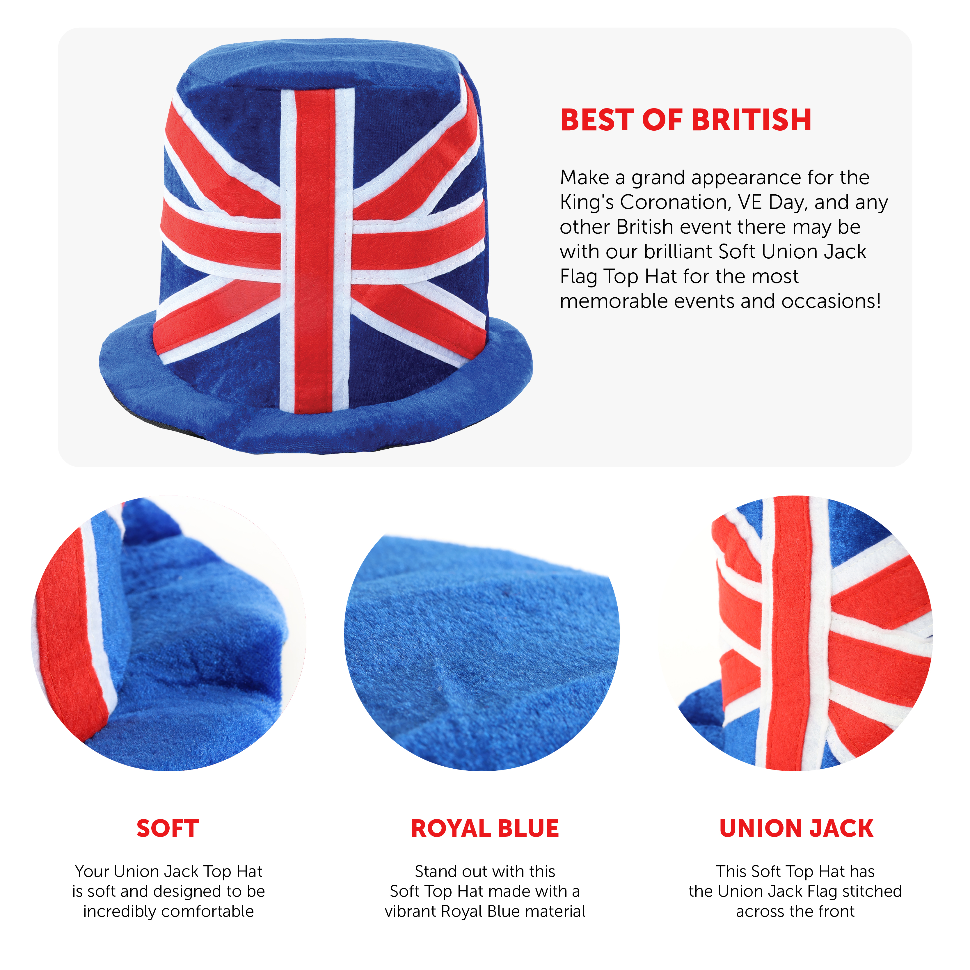 PERFECT FOR ANY BRITISH EVENT: Whether you're celebrating VE Day, the King's Coronation or any other British event, make sure you don't miss out on our Soft Union Jack Top Hat!