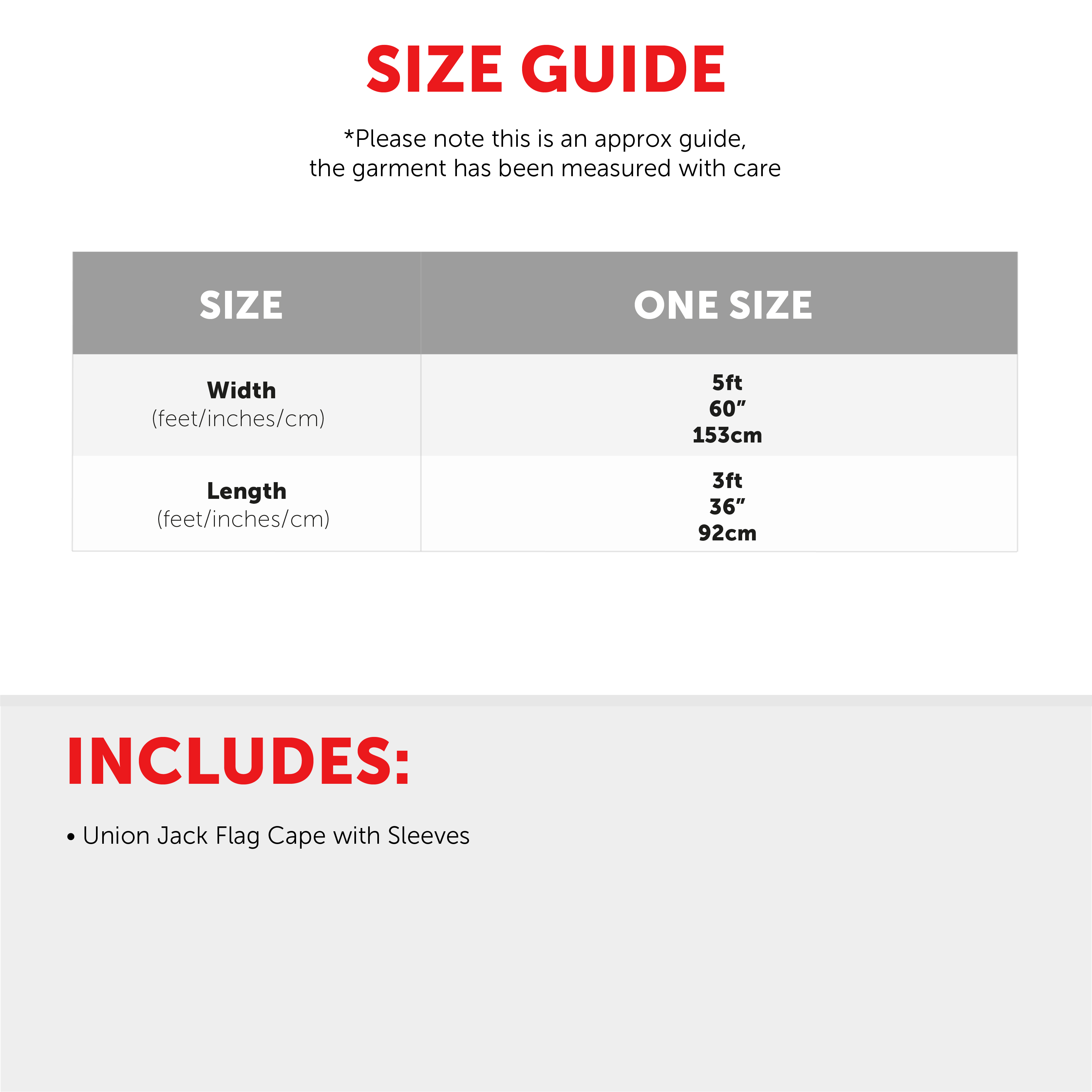 LARGE UNION JACK FLAG MEASUREMENTS: With your Large Wearable Union Jack Flags measuring 5ft (60") in Width and 3ft (36") in Height, you'll have the perfect flag accessory to fly high for the King's Coronation and British Events!
