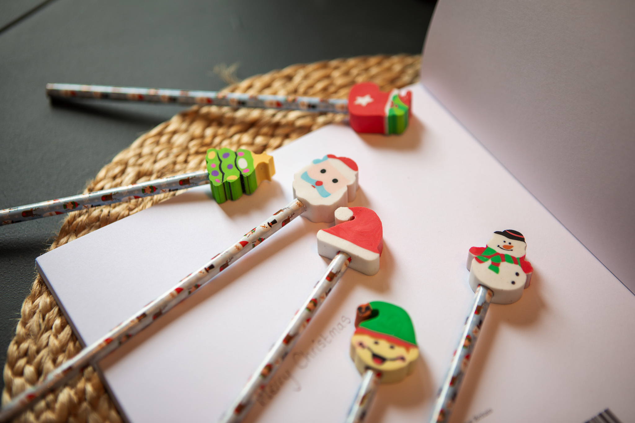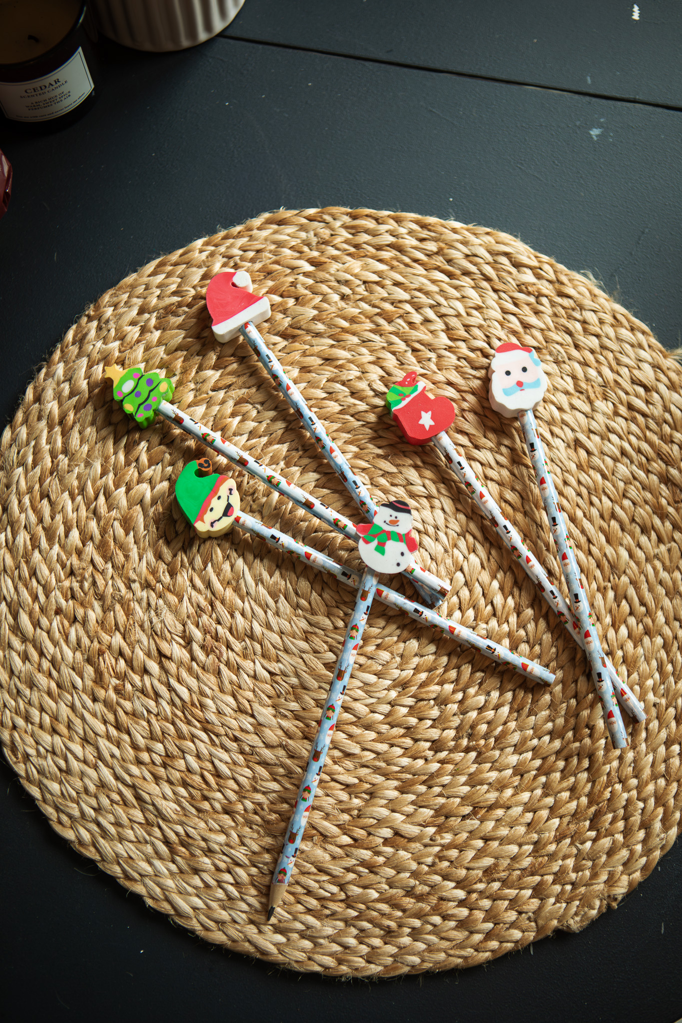 CHRISTMAS PENCILS WITH ERASER TOPPERS – PACK OF 6