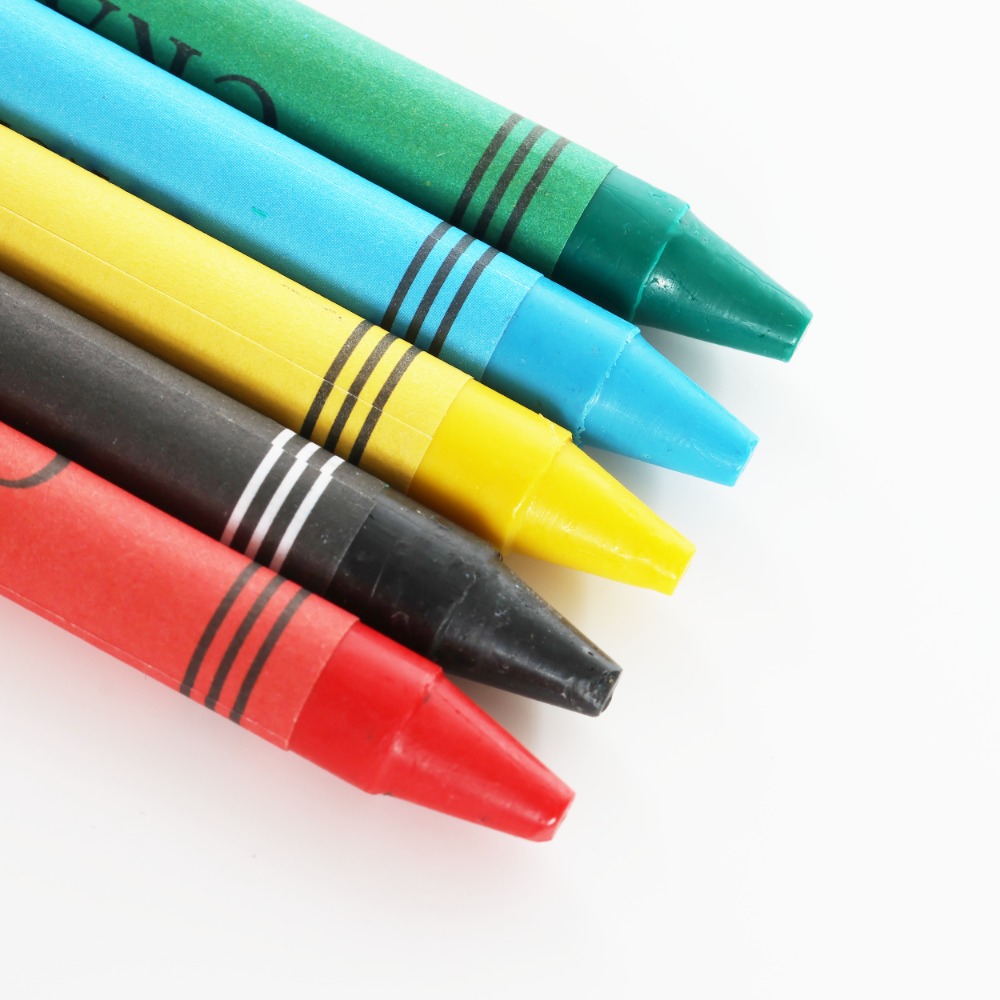 - 1x Set of 5 Crayons in Black, Blue, Green, Red and Yellow