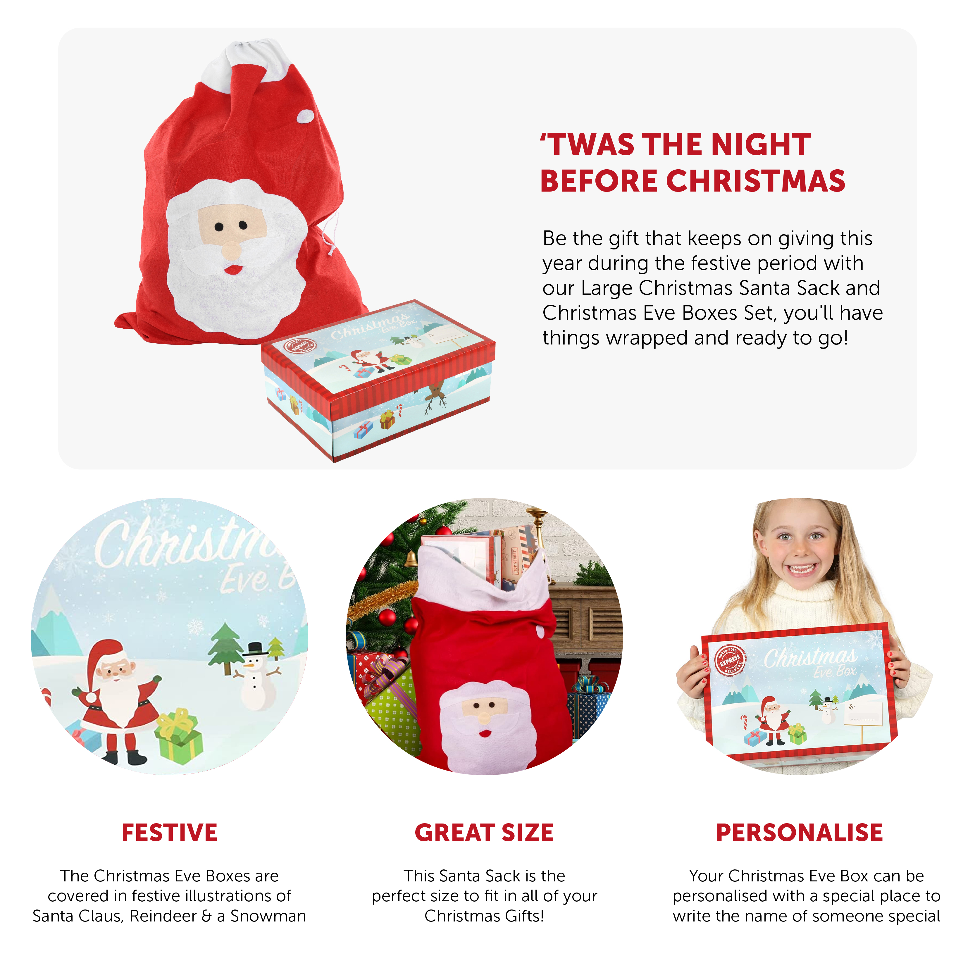 LARGE CHRISTMAS SANTA SACK & 3X CHRISTMAS EVE BOX: Be the gift that keeps on giving this year during the festive period with our Large Christmas Santa Sack and 3x Christmas Eve Box Set, you'll have things wrapped and ready to go!