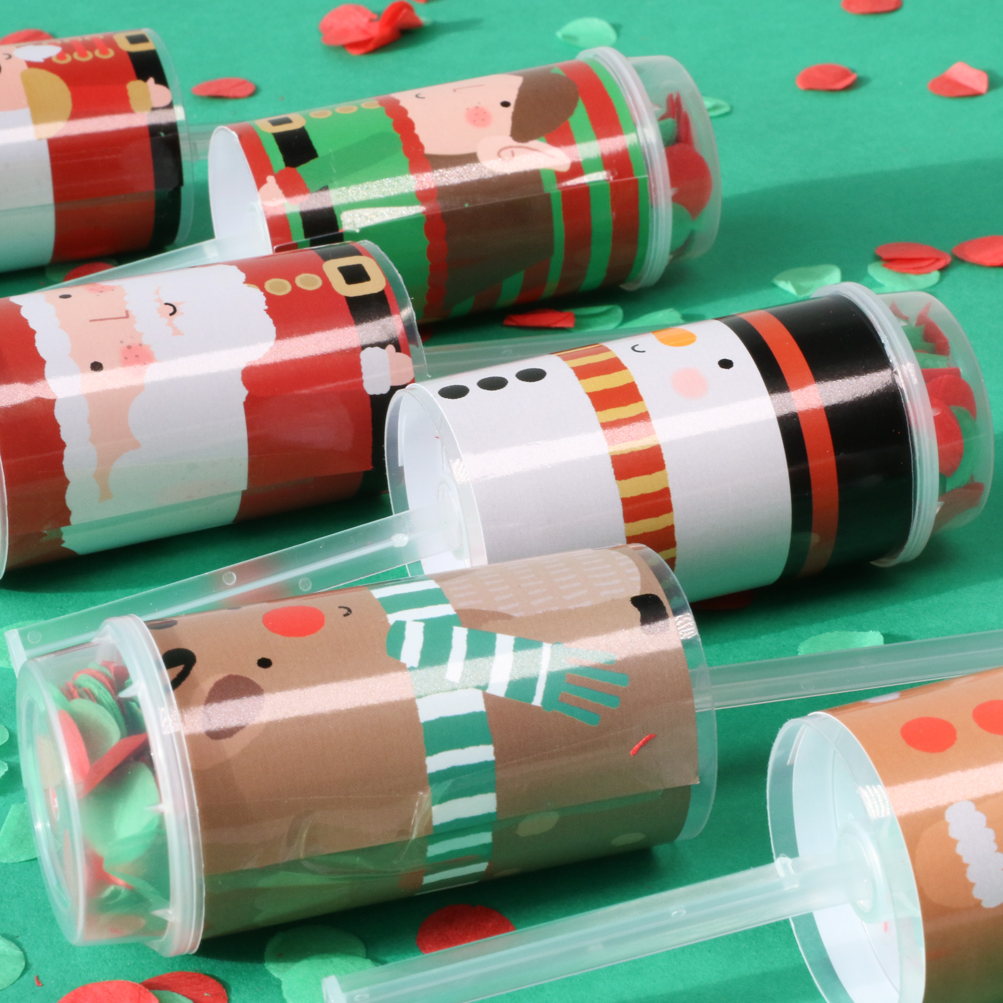 - XMAS CELEBRATION: Celebrate Christmas at your Christmas party or celebration and shower them with confetti while dancing & having fun. These confetti push poppers come in our Christmas character designs making them perfect for the theme of the Christmas party.