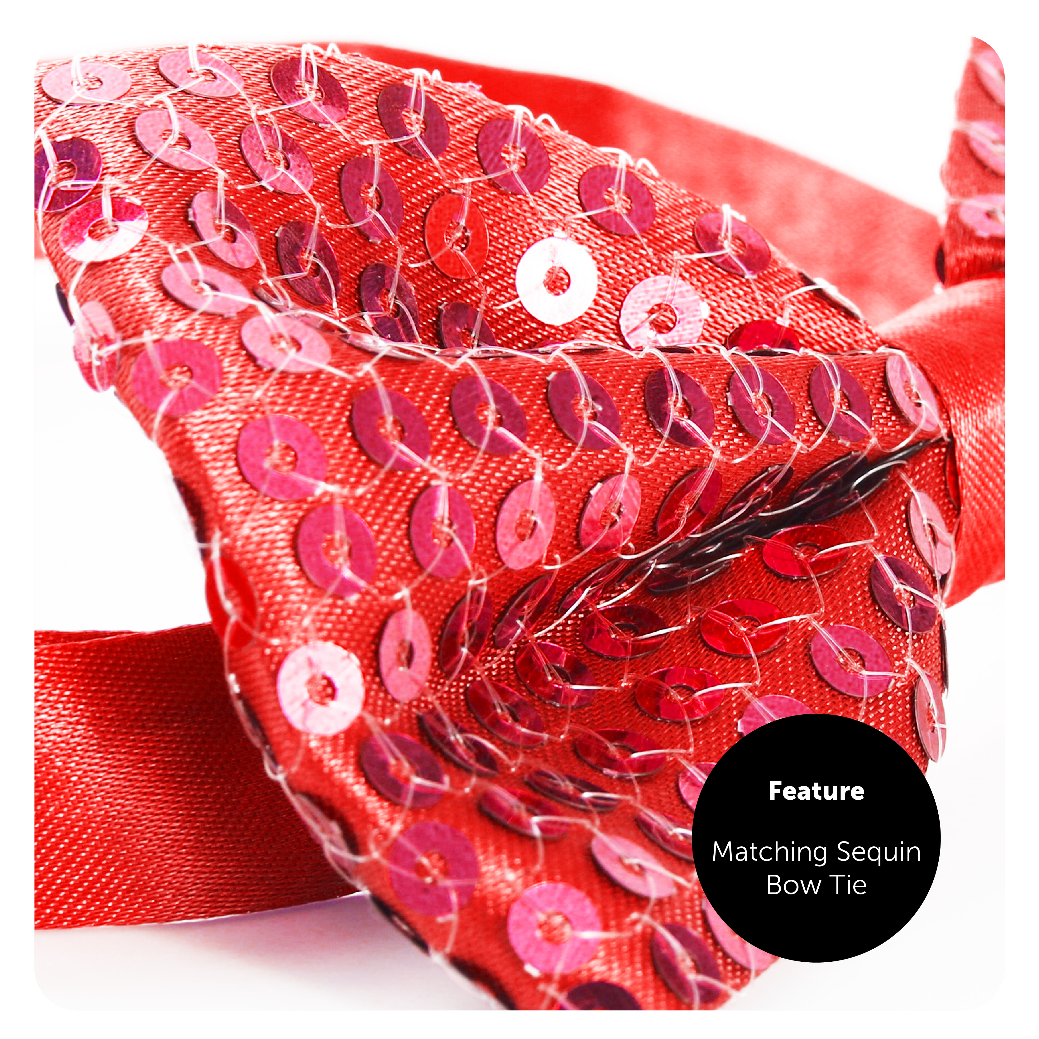 SET INCLUDES: Your Accessory Set includes a Red Trilby Hat covered in Sequins, and an adjustable Red Sequin Bow Tie, to complete your look!