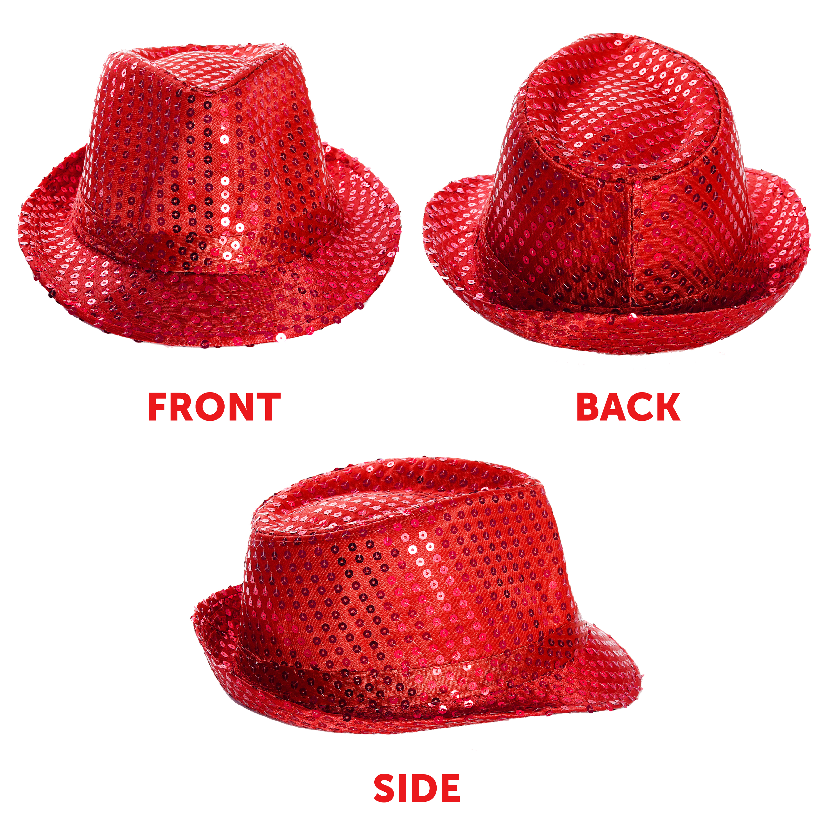 ONE SIZE FITS MOST: This Red Sequin Trilby Hat is suitable for most Adults to wear comfortably with a head size of 58cm (23")