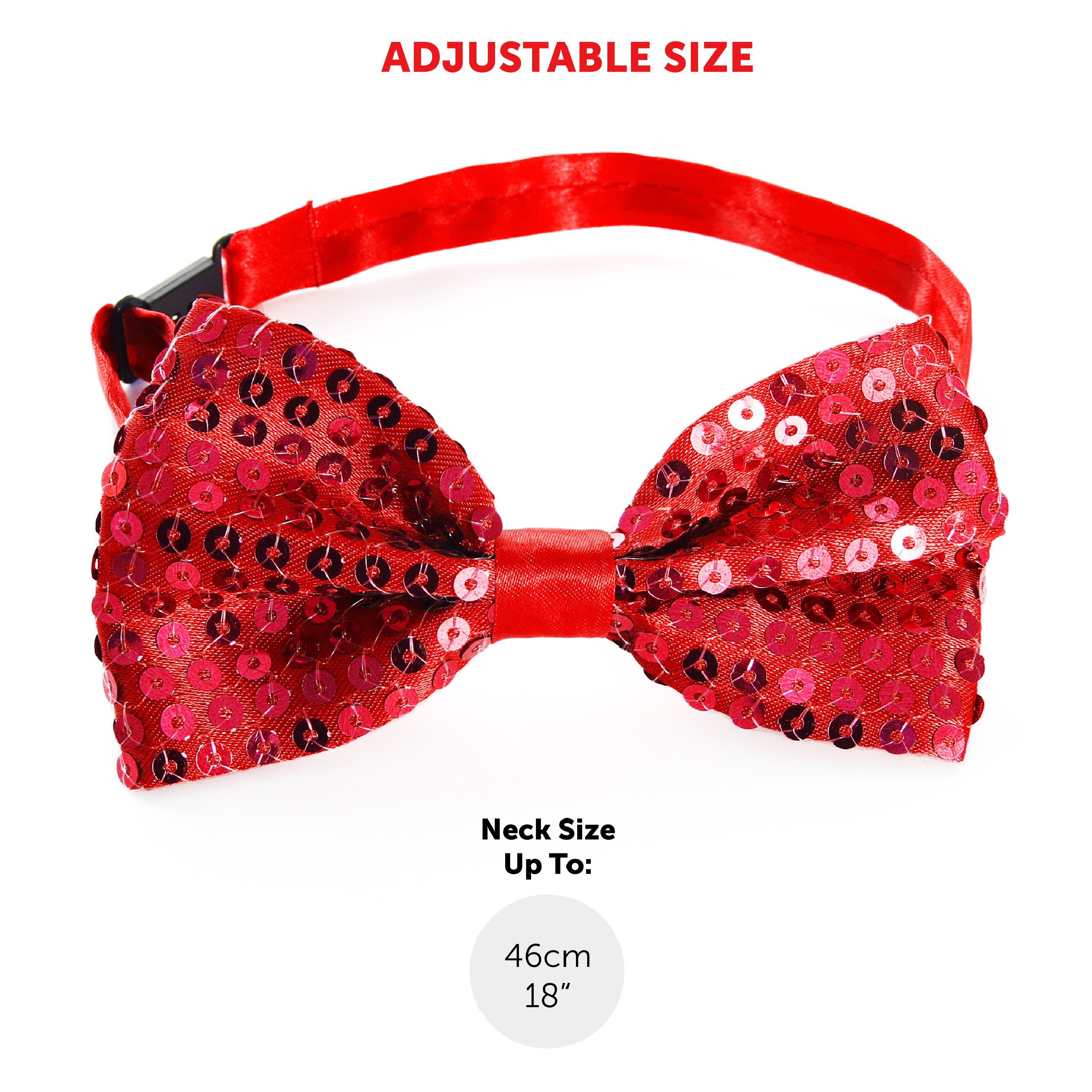 ADJUSTABLE BOW TIE: The Red Sequin Bow Tie measures up to 46cm (18") and fits any Adult perfectly and can be adjusted to the desired length and size to fit your style comfortably and well!