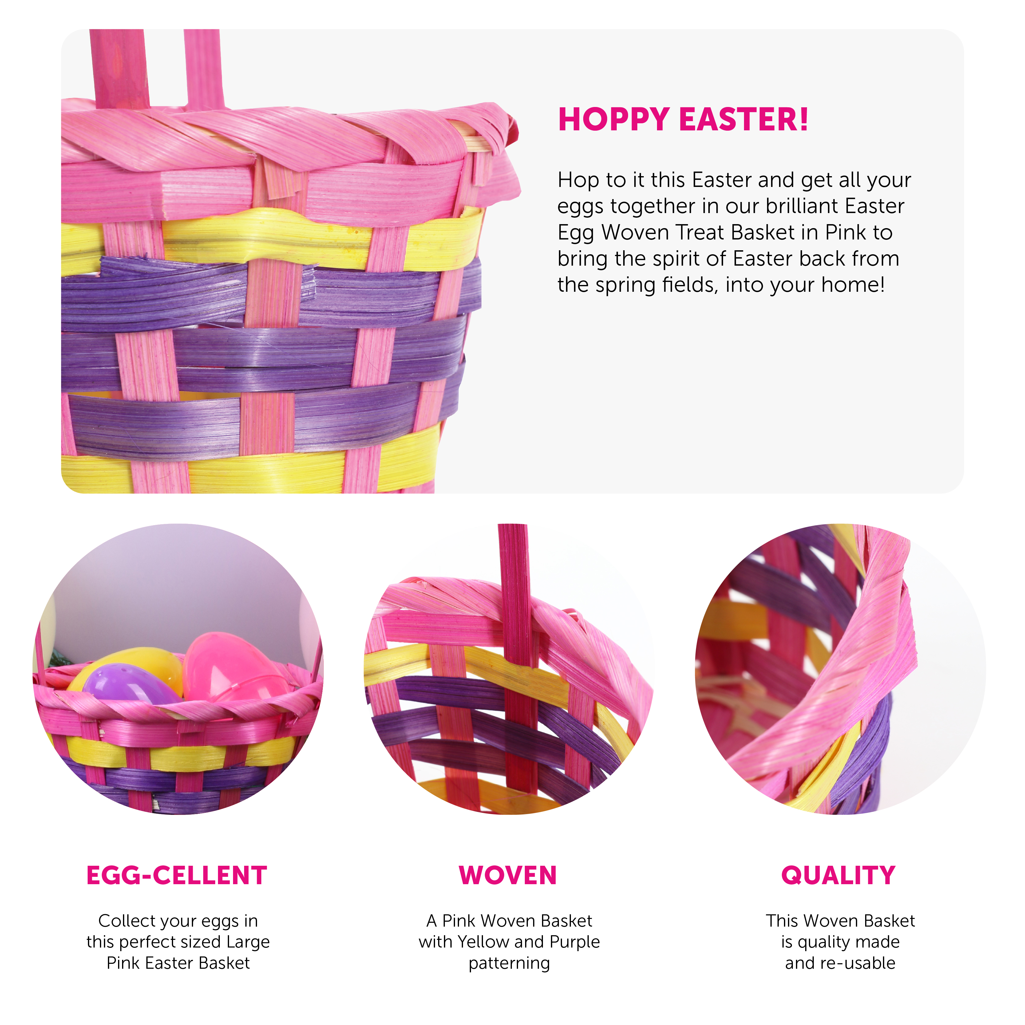 LARGE EASTER RABBIT BASKET: Hop to it this Easter and get all your eggs together in our brilliant Easter Egg Woven Treat Basket in Pink to bring the spirit of Easter back from the spring fields, into your home!