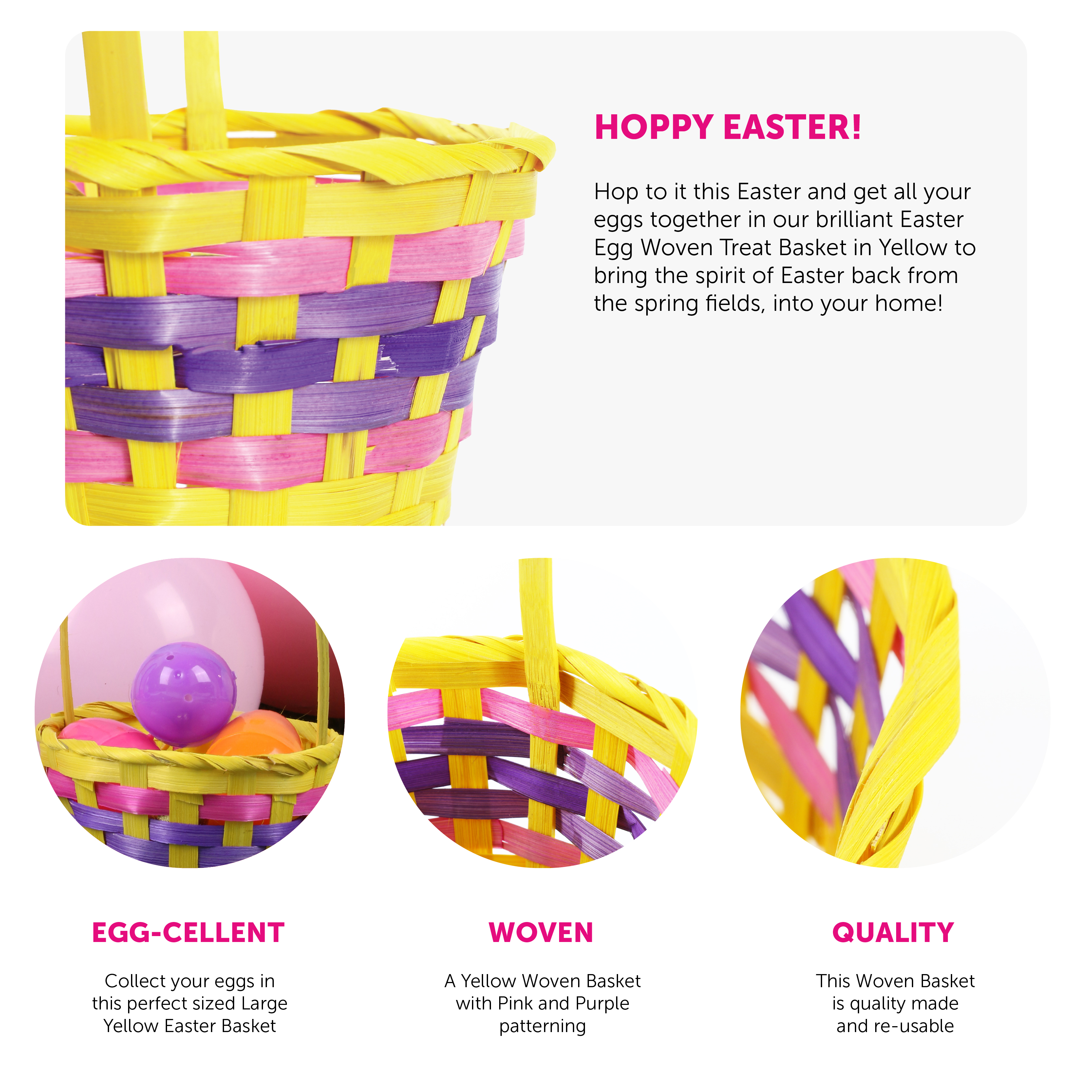 LARGE EASTER RABBIT BASKET: Hop to it this Easter and get all your eggs together in our brilliant Easter Egg Woven Treat Basket in Yellow to bring the spirit of Easter back from the spring fields, into your home!