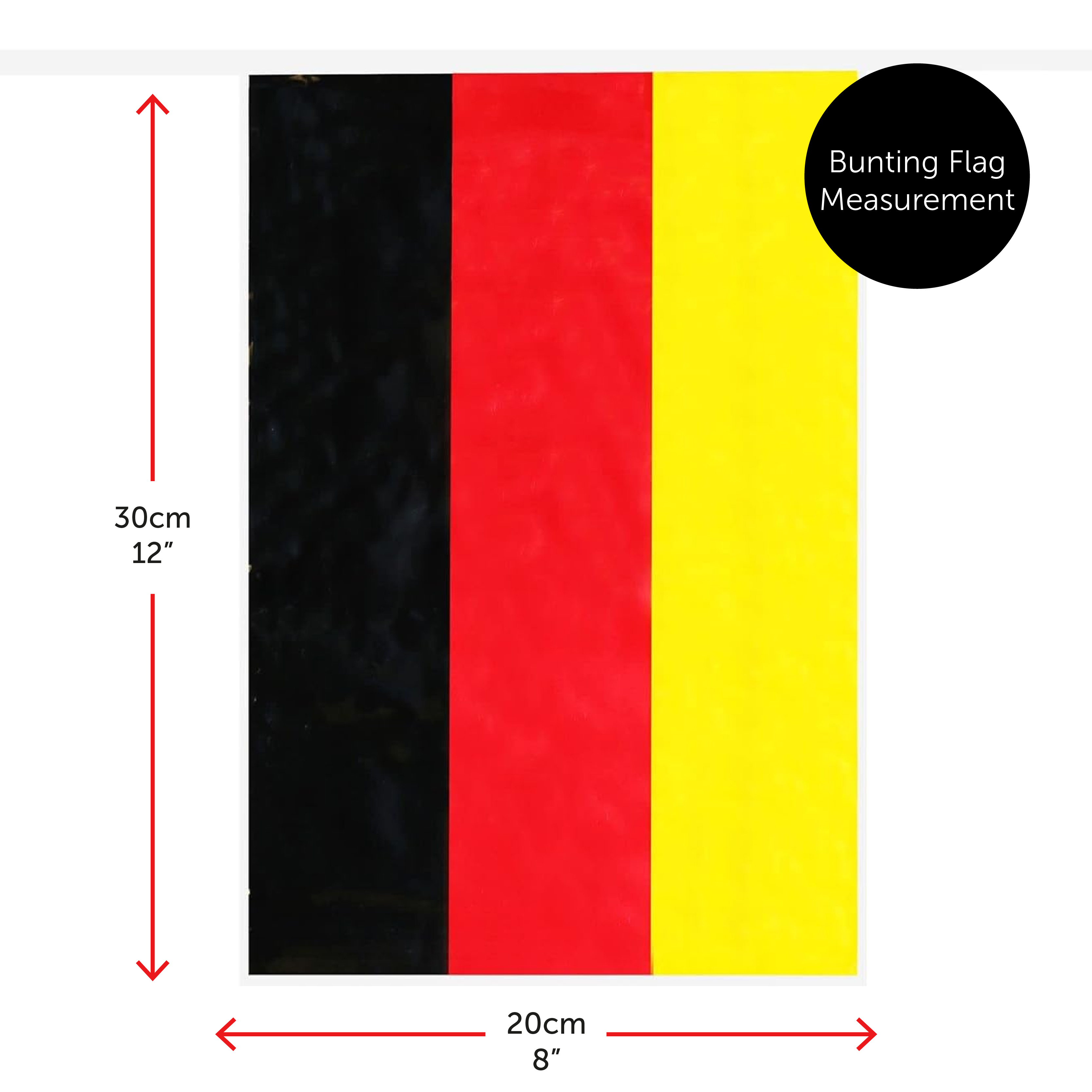 BUNTING MEASUREMENT: Your German Bunting measures a full length of 10m/33ft, with individual flags measuring 30cm (12") x 20cm (8") - a great addition to any German event!