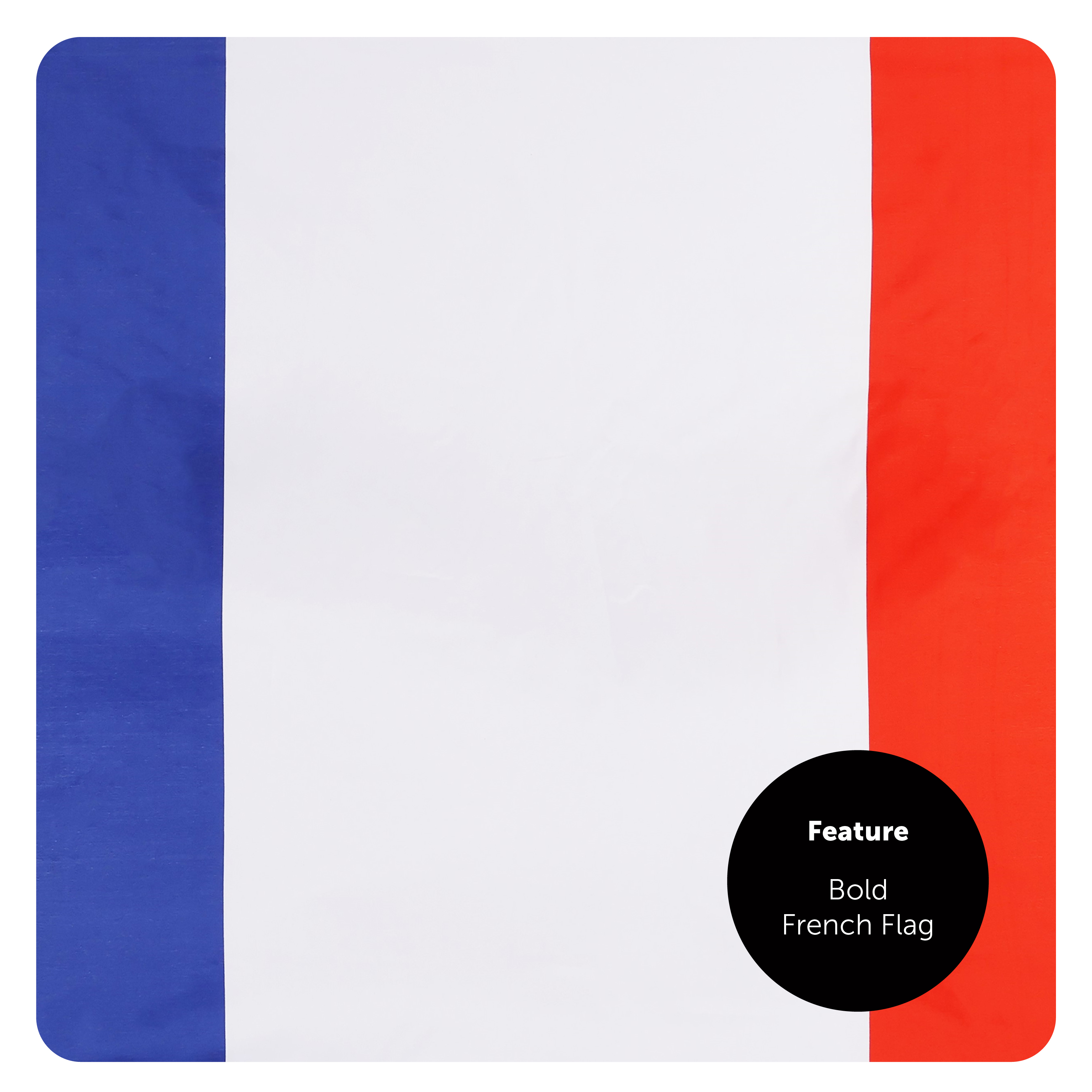 FLAG DETAILS: This French Flag is a vibrant tricolour Flag with vertical Blue, White and Red Stripes, the Flag measures 5ft (152cm/60") in Width and 3ft (91cm/36") in Height, you'll have the perfect flag accessory to fly high for any event!