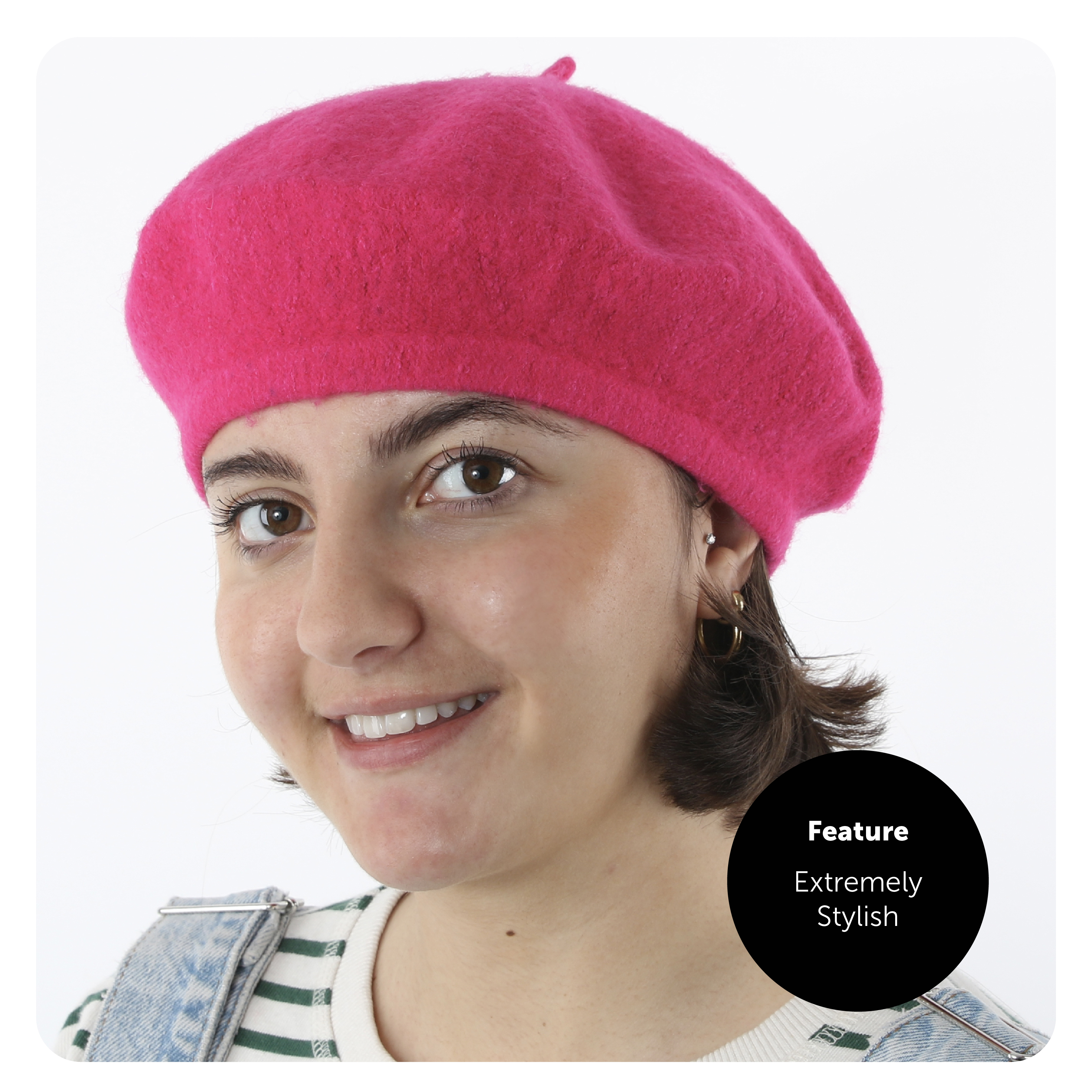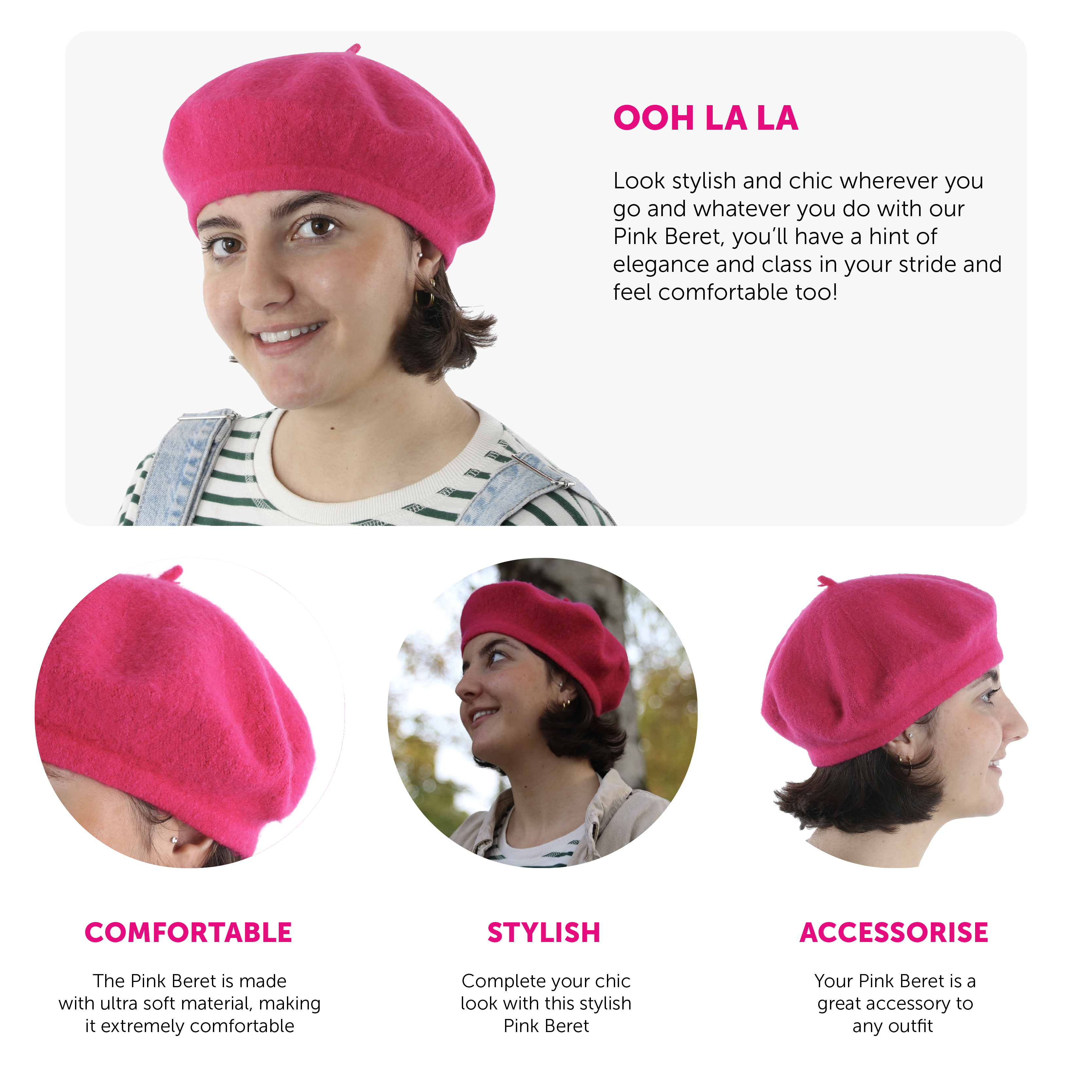 PINK BERET HAT: Add a sharp and fashionable feature to your seasonal walks and outings with our Pink Beret Hats and raise your outfits style up with this perfect hat fit for all seasons of the year!