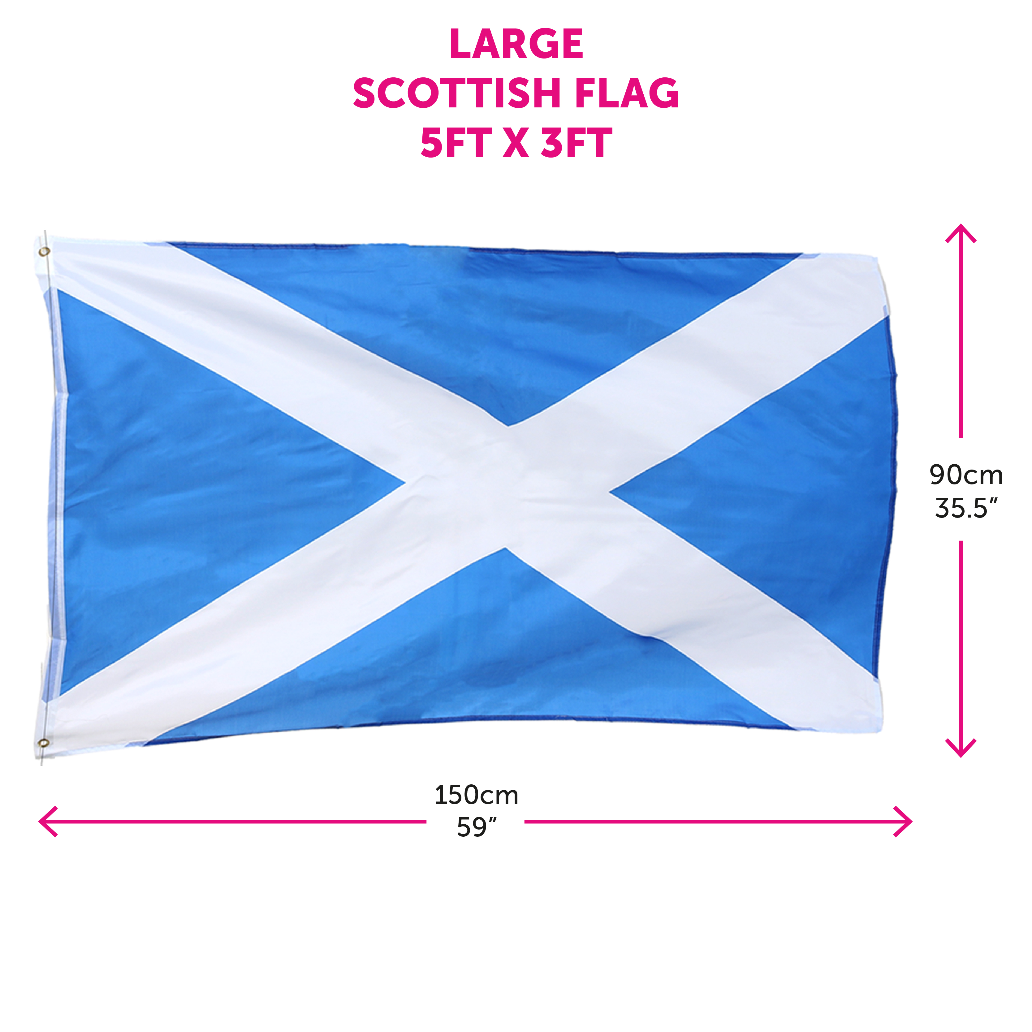 GREAT SIZED PRODUCTS: The Scottish Flag Bunting measures a full length of 33ft/10m (24 Flags), with each of the Flags measuring 21cm x 14cm (8" x 5"), and the Large Scottish Flag measures 5ft x 3ft (150cm x 90cm) - the perfect sized Flags to show support for your Country!