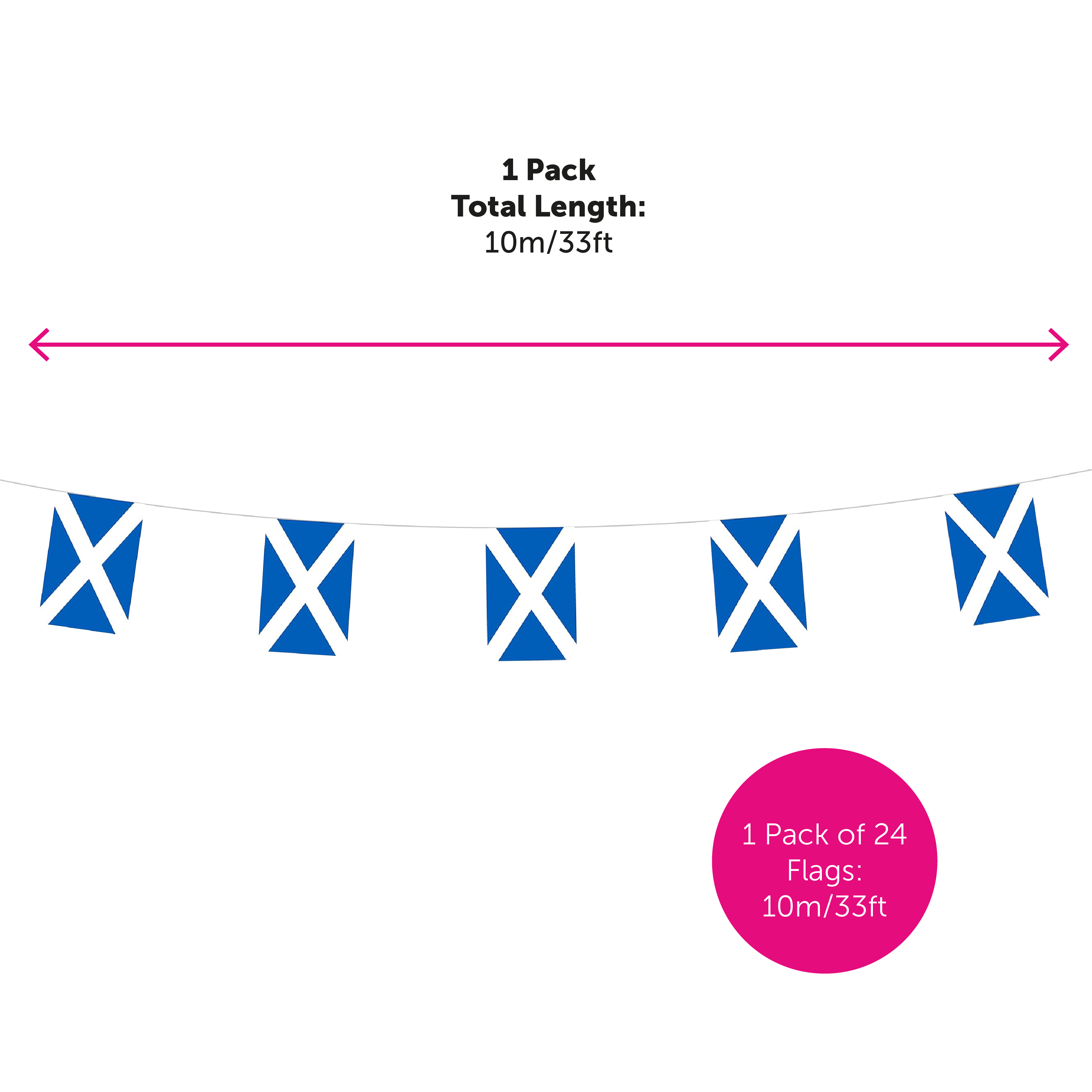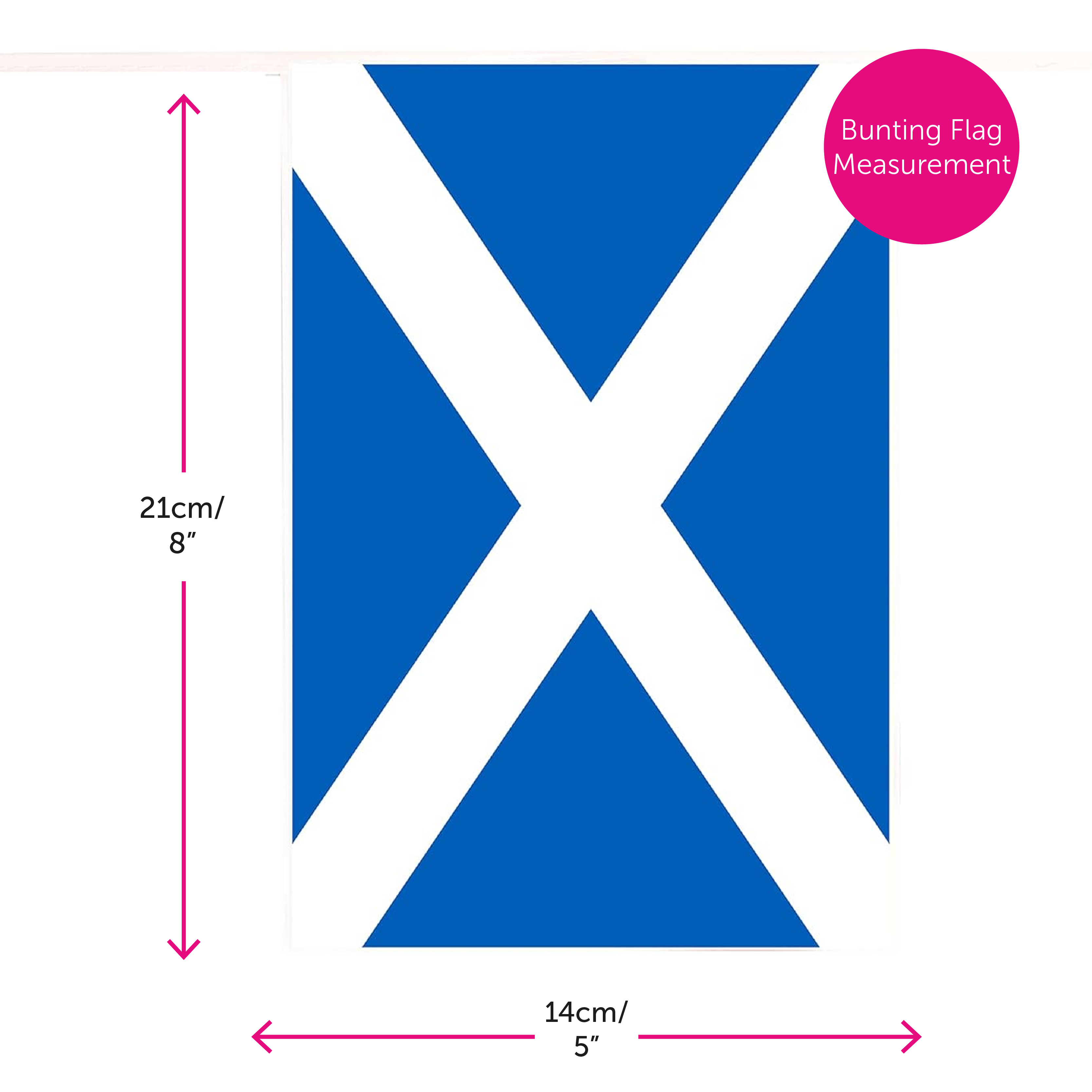 GREAT SIZE BUNTING: The Scottish Flag Bunting measures a full length of 33ft/10m (24 Flags), with each of the Flags measuring 21cm x 14cm (8" x 5") - a great sized stretch of Bunting to show support for your Country!