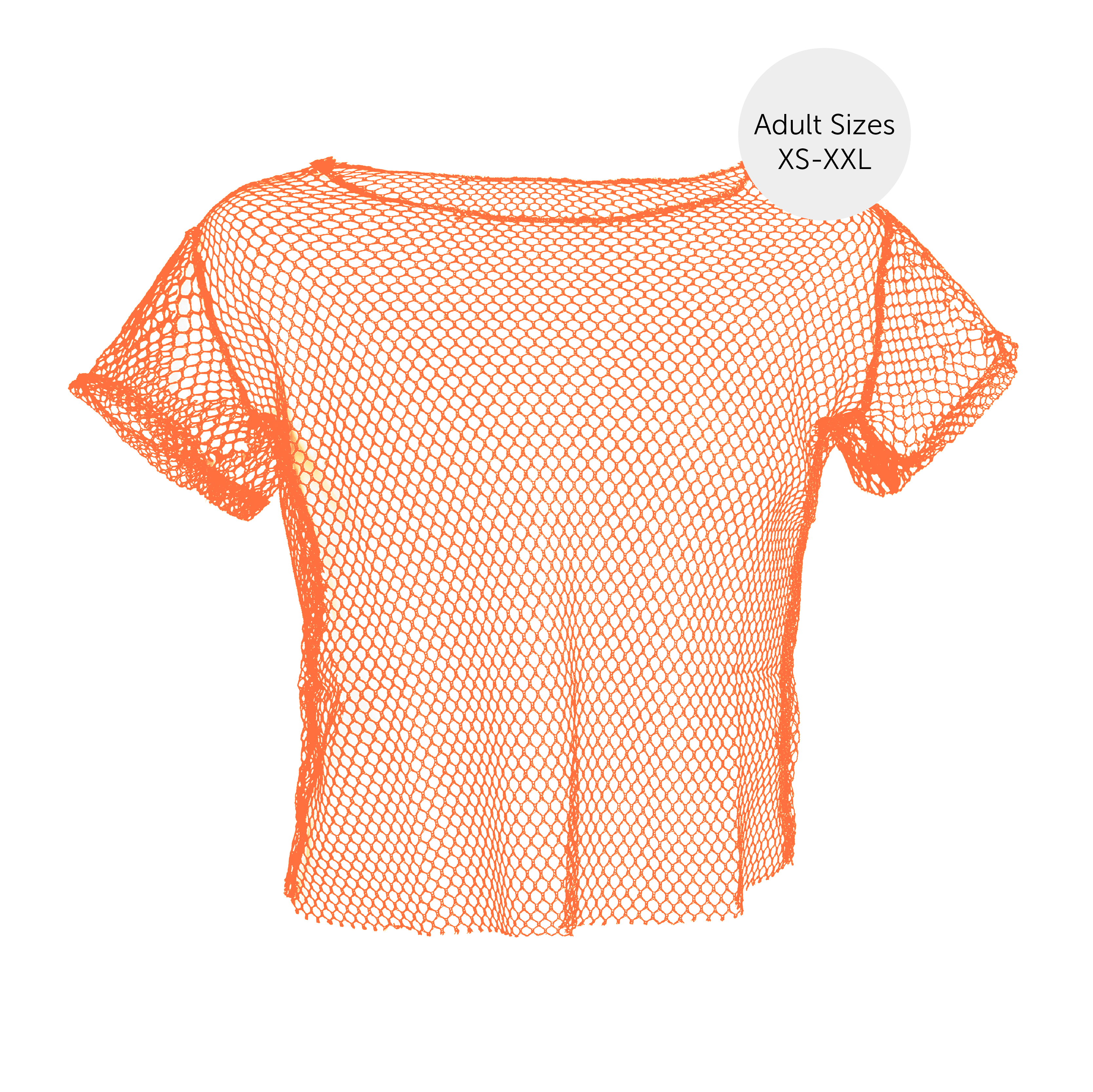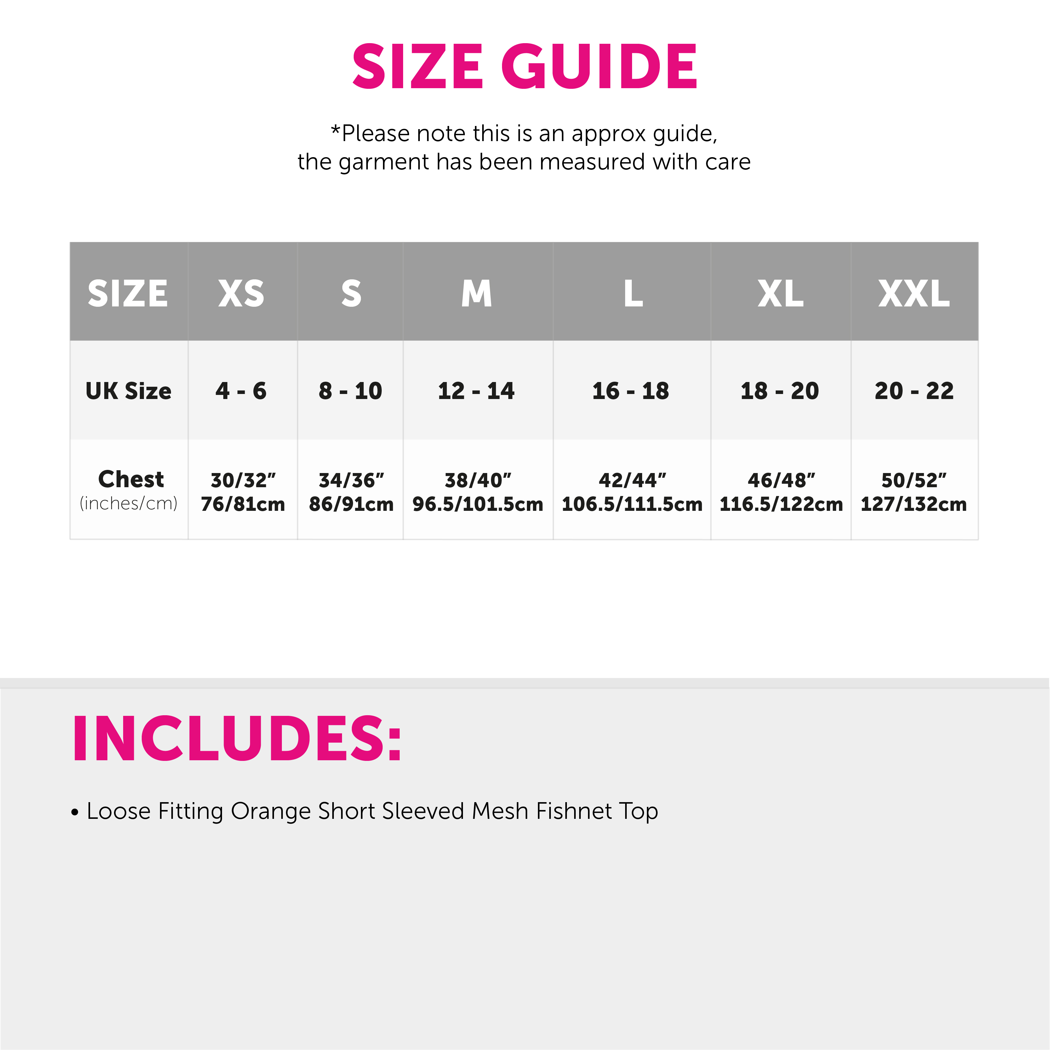 AVAILABLE IN MULTIPLE SIZES: Your Ladies Orange Fishnet Top is available in multiple sizes
