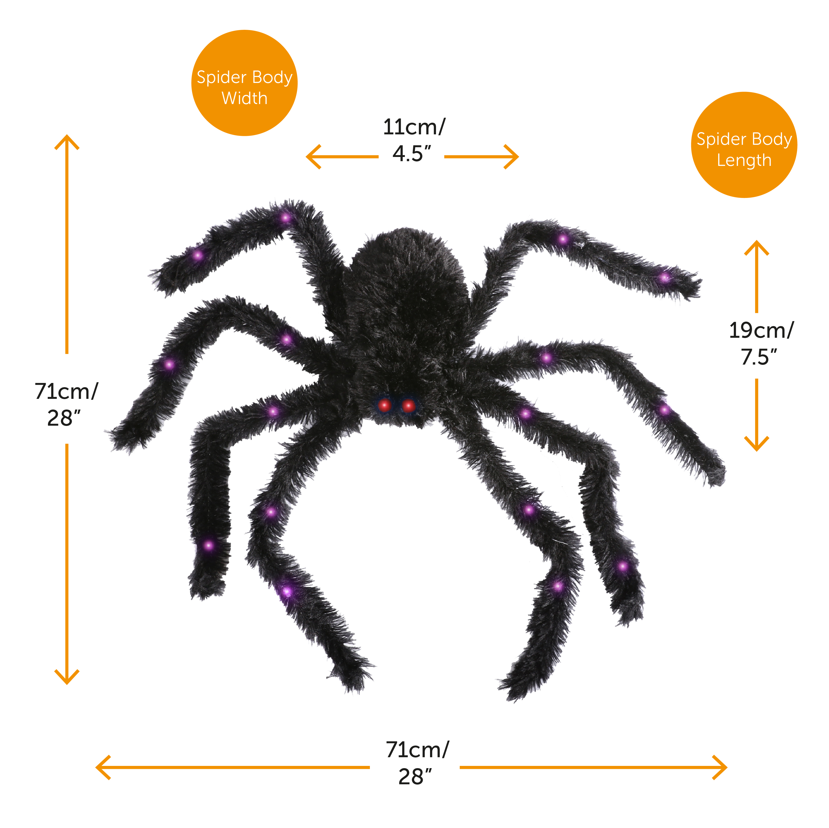 WALKING SPIDER DECORATION MEASUREMENTS: Your Animated Walking Spider Animated Decoration prop is a 71cm/28” tall from head to foot, a large Halloween Decoration that will be sure to get noticed!