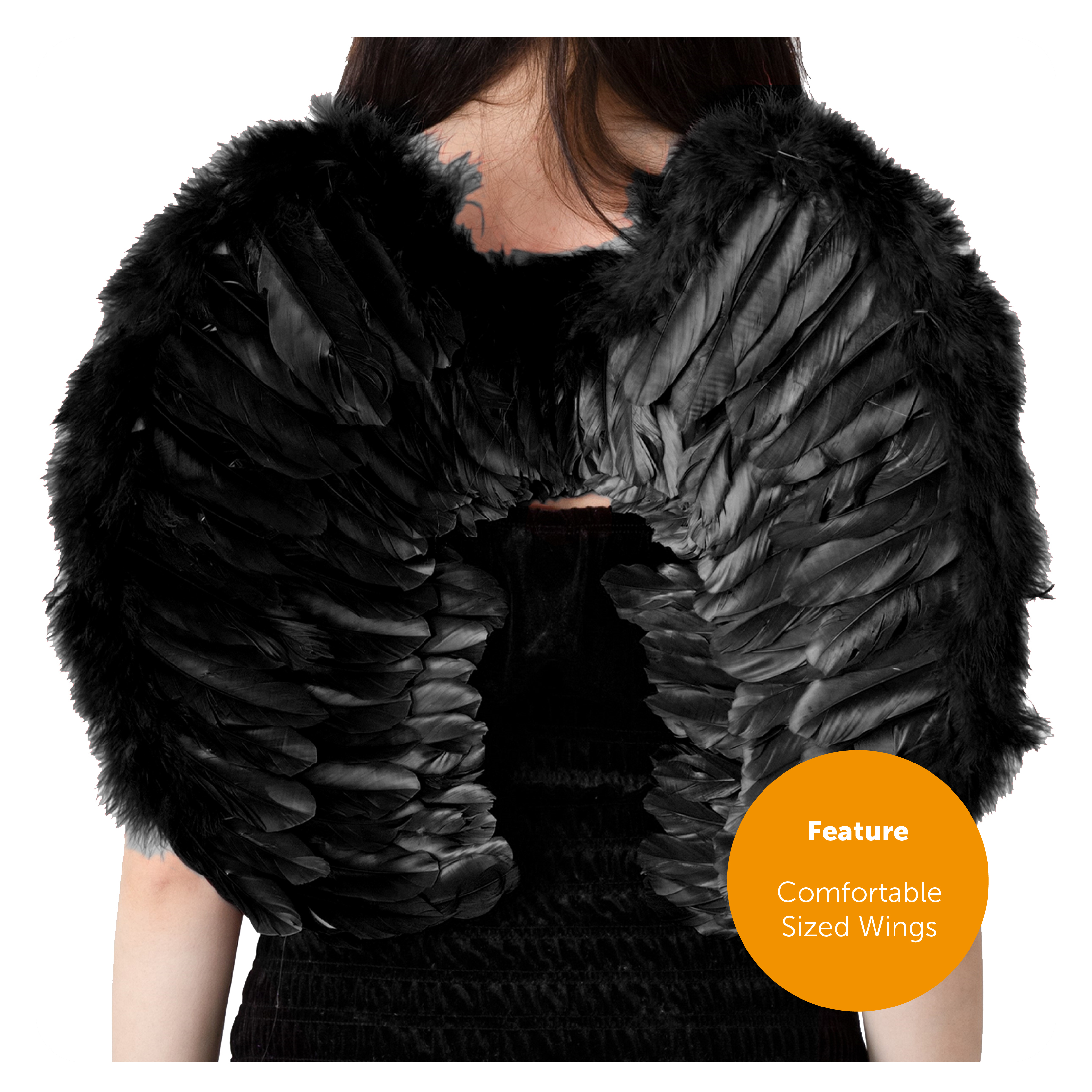 WING DETAILS: Your Wings are made with Black Feathers and are one size with comfortable straps attached, the perfect finishing touch to your Costume!