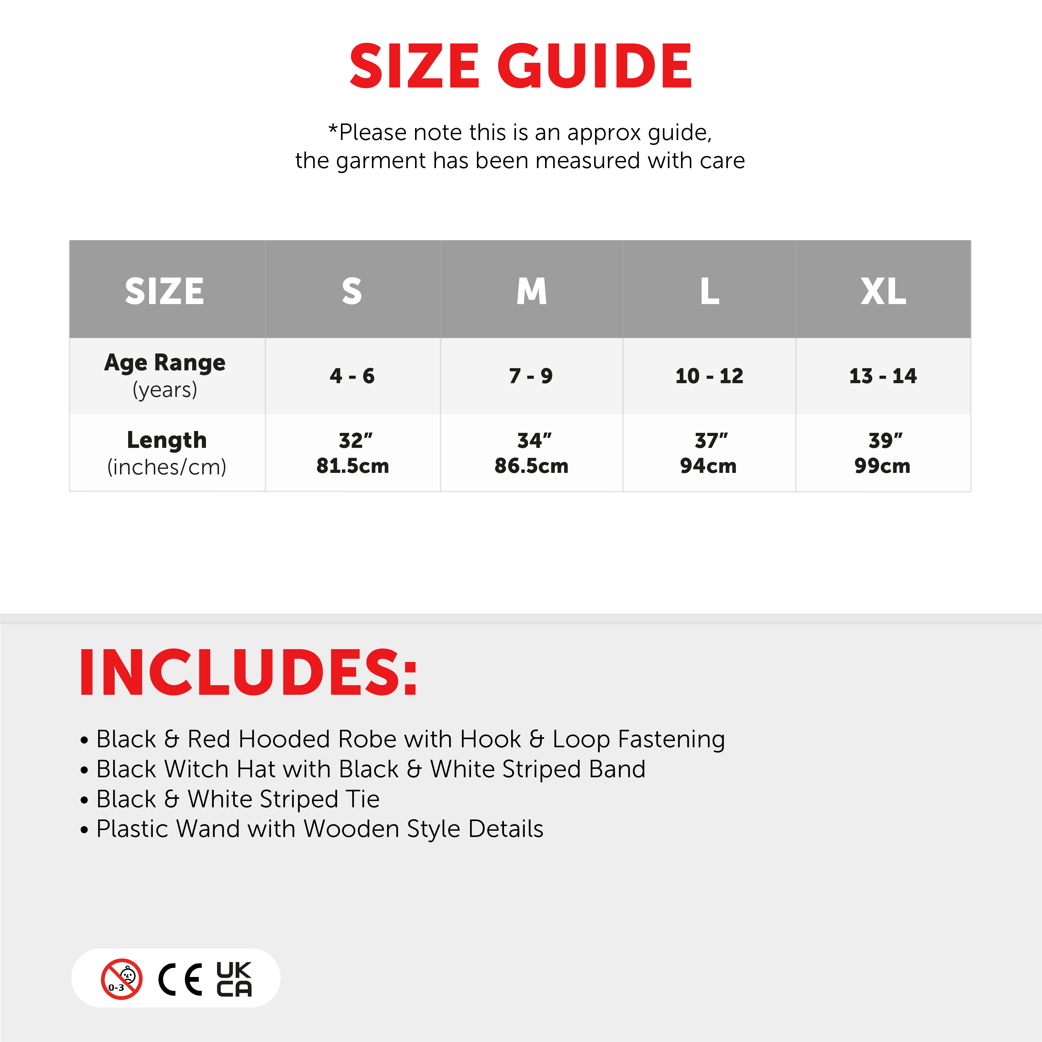 AVAILABLE IN MULTIPLE SIZES: Our Child's School Witch Costumes are available for your children in multiple sizes, ranging from Small to X-Large: Small (4 - 6 years) Length 32" (81.5cm) | Medium (7 - 9 years) Length 34" (86.5cm) | Large (10 - 12 years) Length 37" (94cm) | X-Large (13 - 14 years) Length: 39" (99cm)