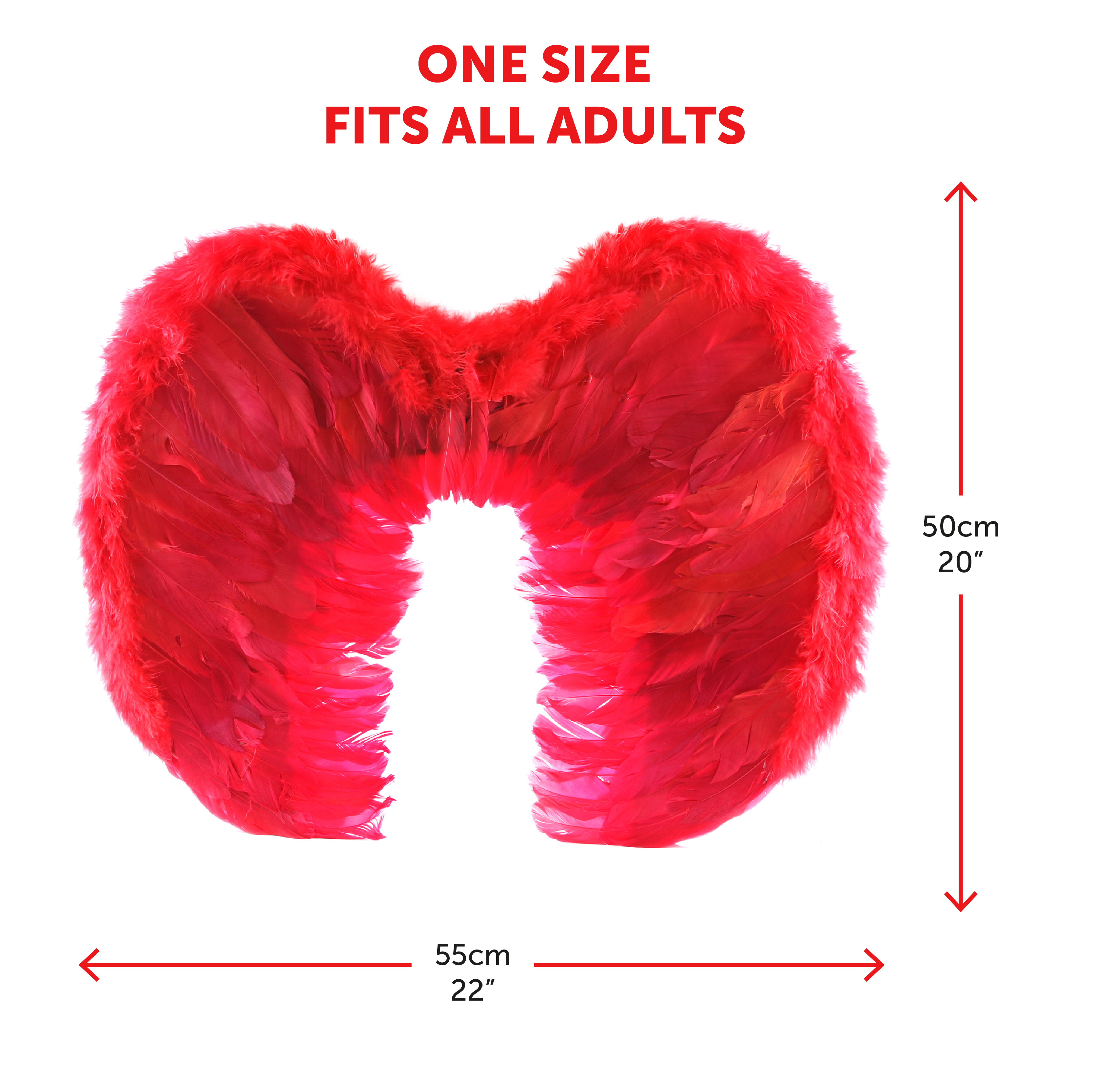 WING MEASUREMENTS: Your Red Wings are a great size, measuring 20" x 22" (50cm x 55cm), you’ll feel comfortable and have no issue bringing the Devilishness wherever you go!