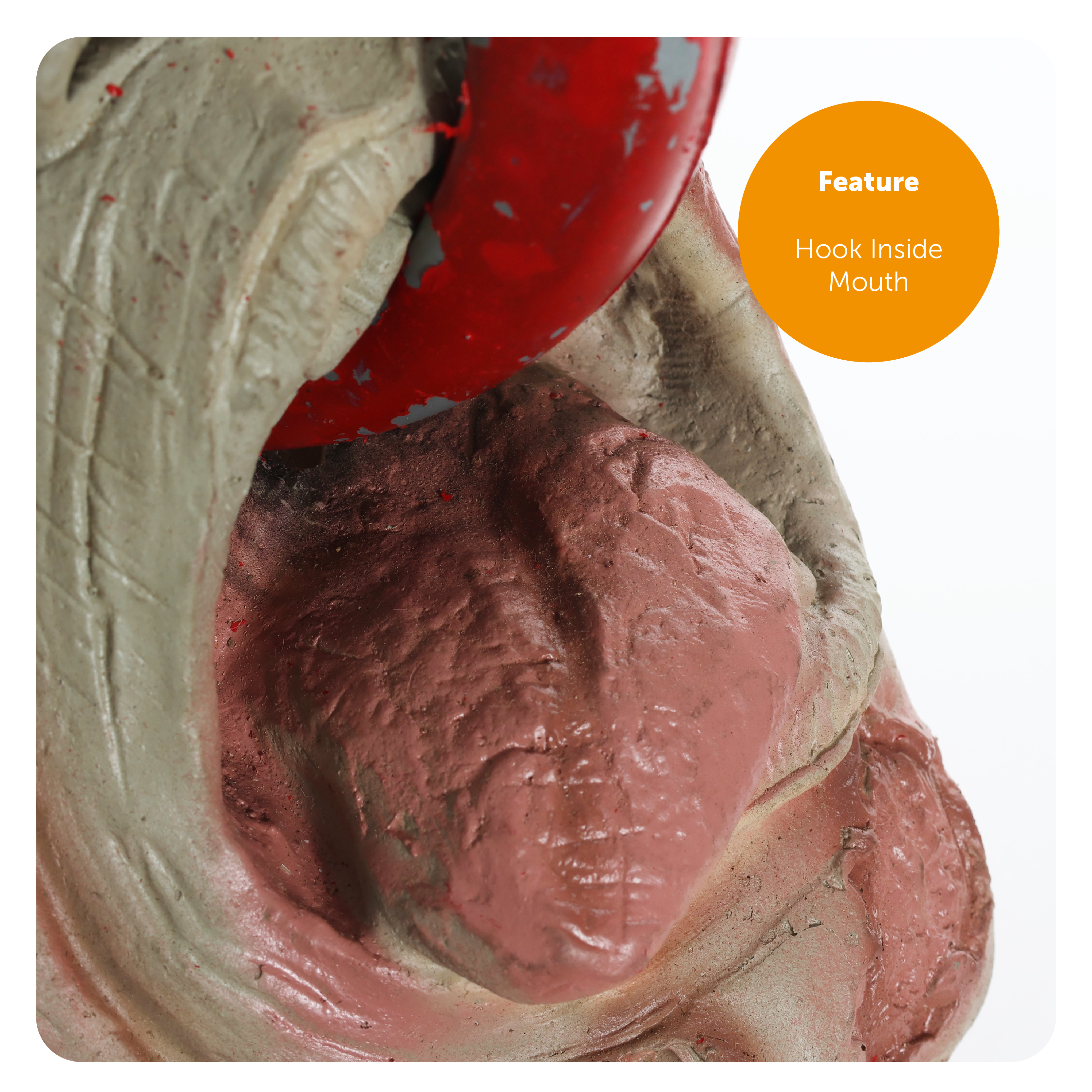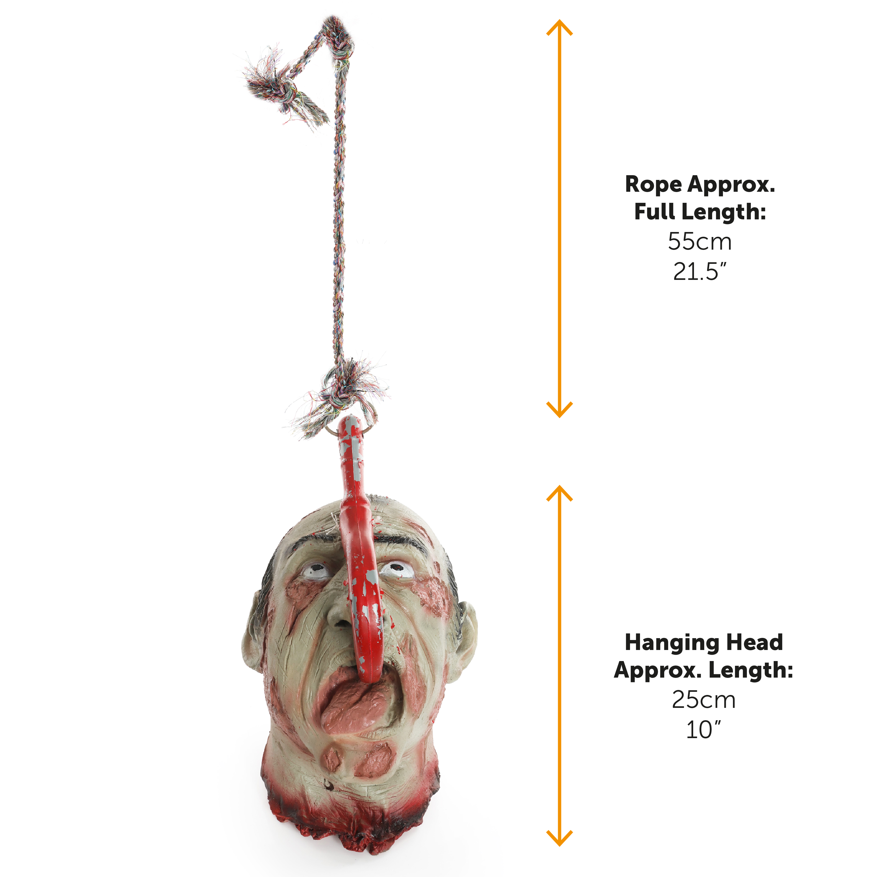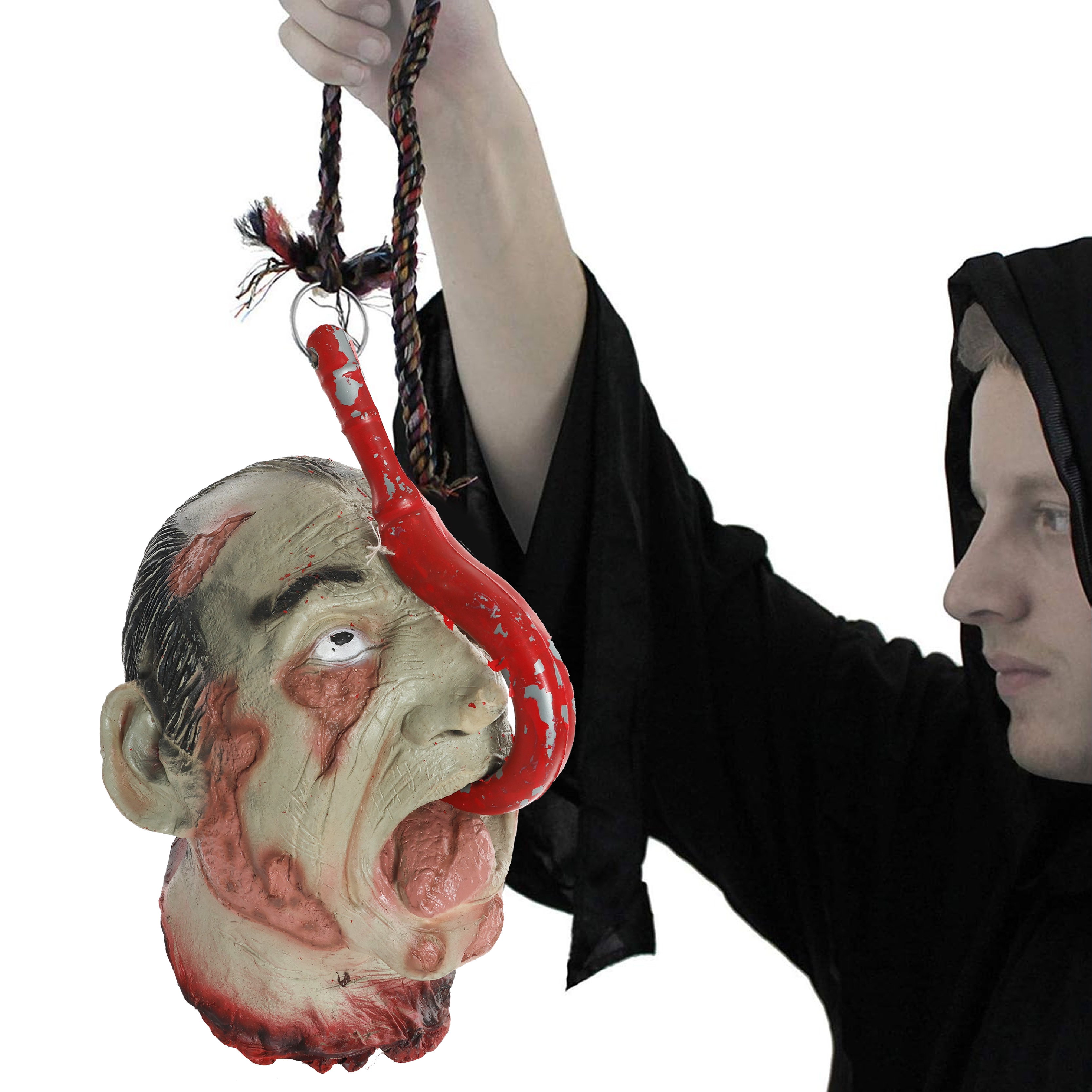 GREAT SIZE: The Hooked Mouth Hanging Head is a great sized decoration, with the life sized Head measuring an approximate length of 25cm (10") and the Rope measuring a length of 55cm (21.5")