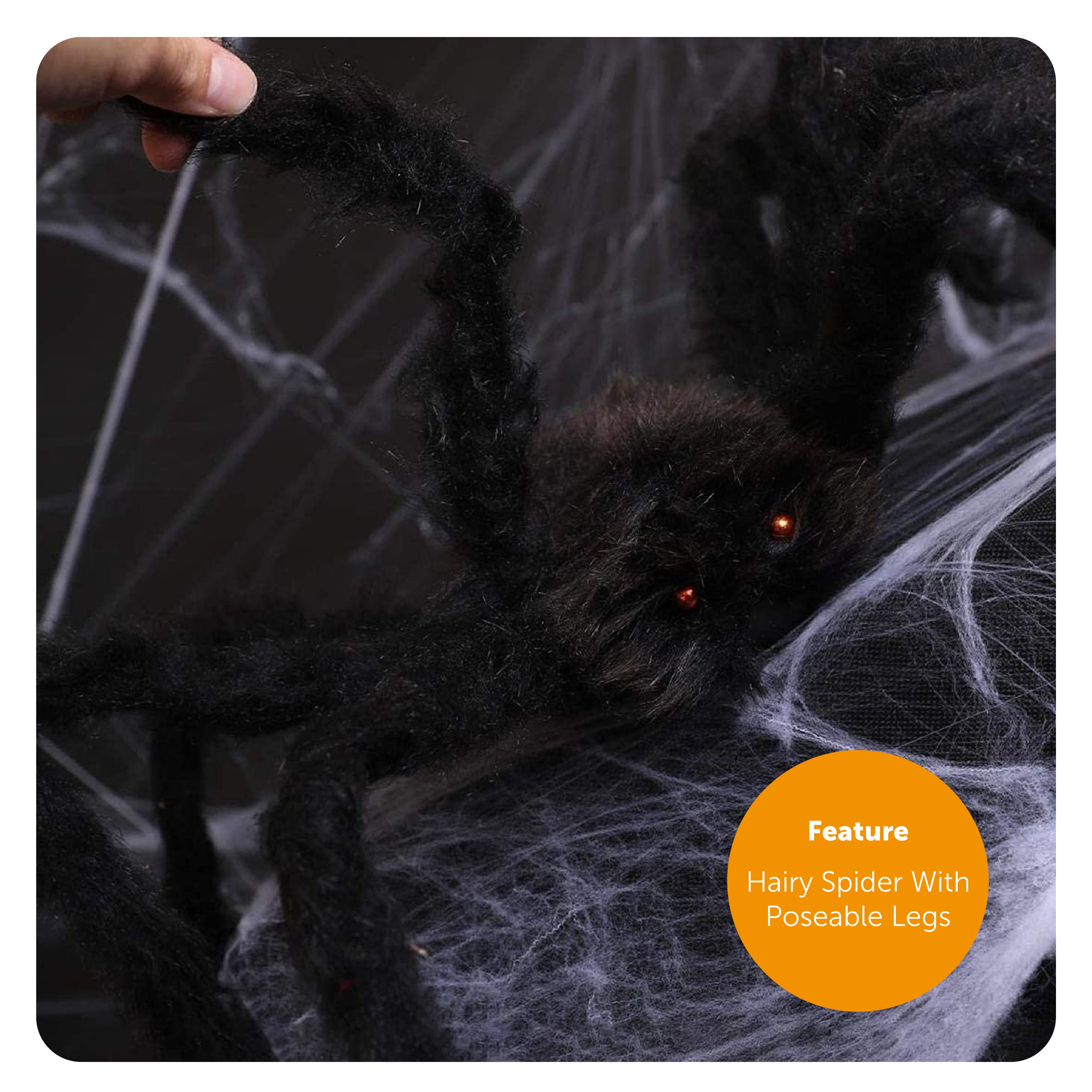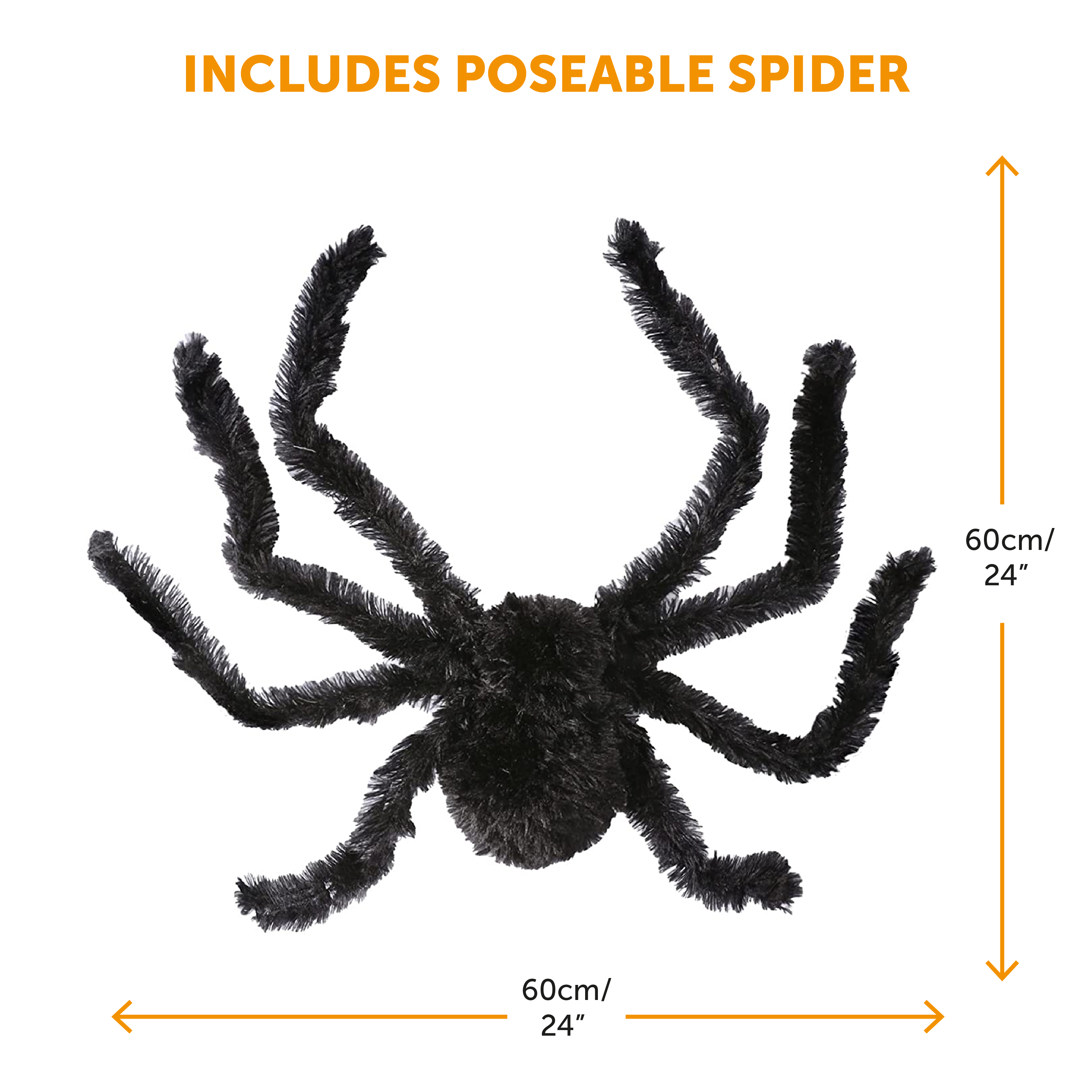 - LARGE SPIDER PROP DIMENSIONS: Your Large Poseable Spider has dimensions of 60cm 24” x 60cm 24” for you to pose and place anywhere to decorate and to terrify your visitors among the cobwebs!
