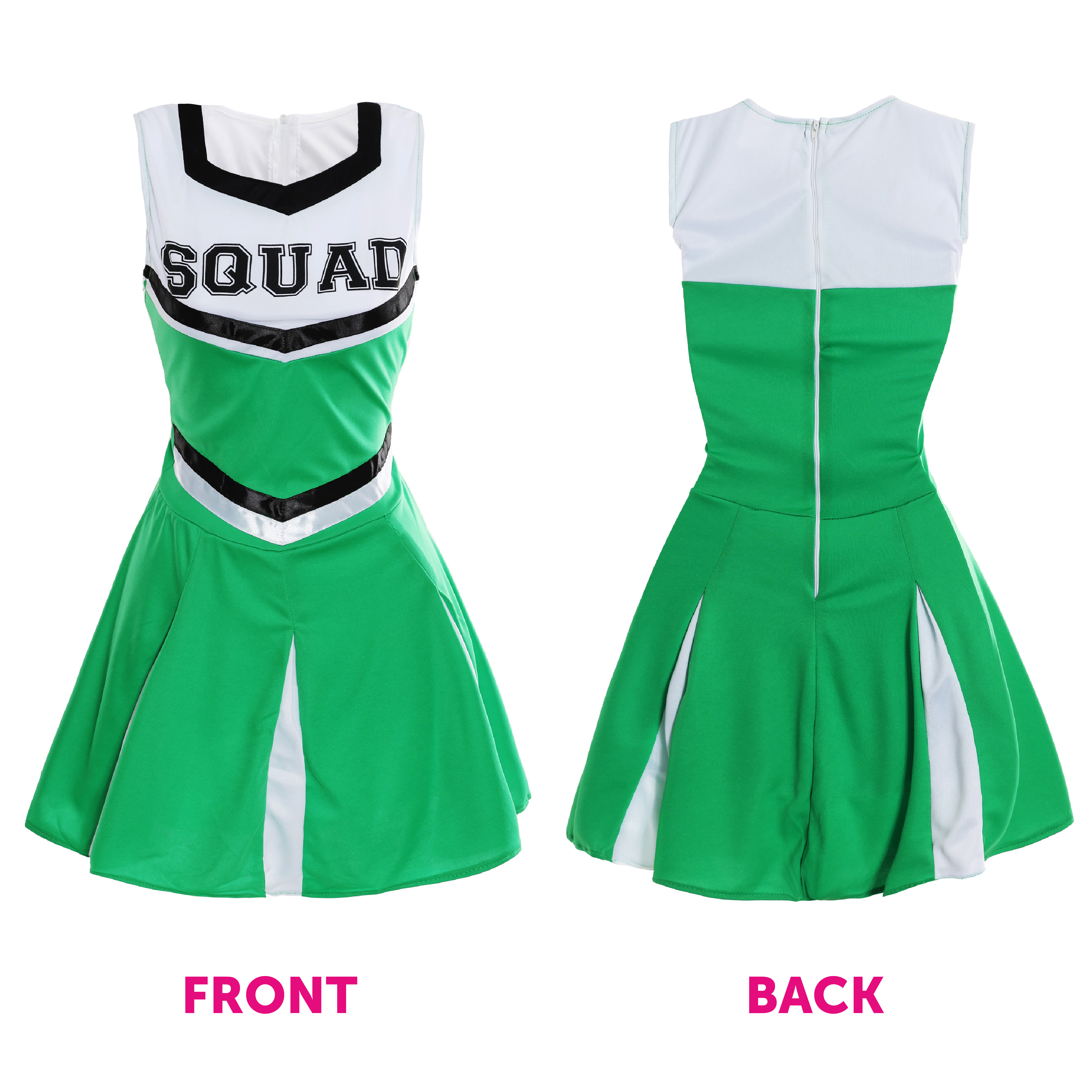 GREAT COSTUME QUALITY: With its bright colours, bold designs, and lightweight material, this Green Cheerleader Dress is a quality Costume piece, perfect for any fancy dress party!