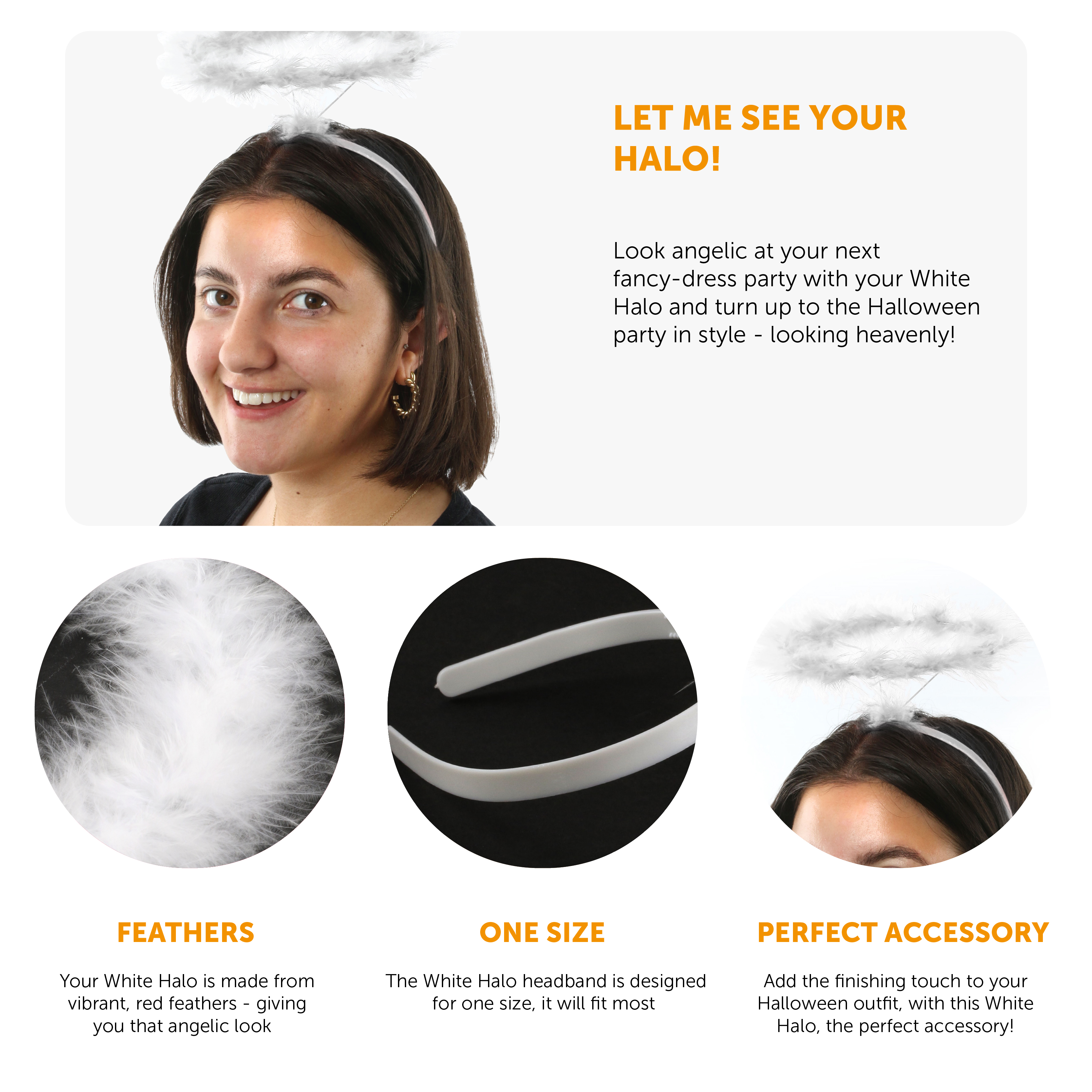 AVAILABLE IN MULTIPLE PACKS: Your White Marabou Halo Headband is available in multiple packs, from Single, Packs of 2, Packs of 3, Packs of 6, and Packs of 12 for you and your Angelic friends to look your most elegant for Halloween!
