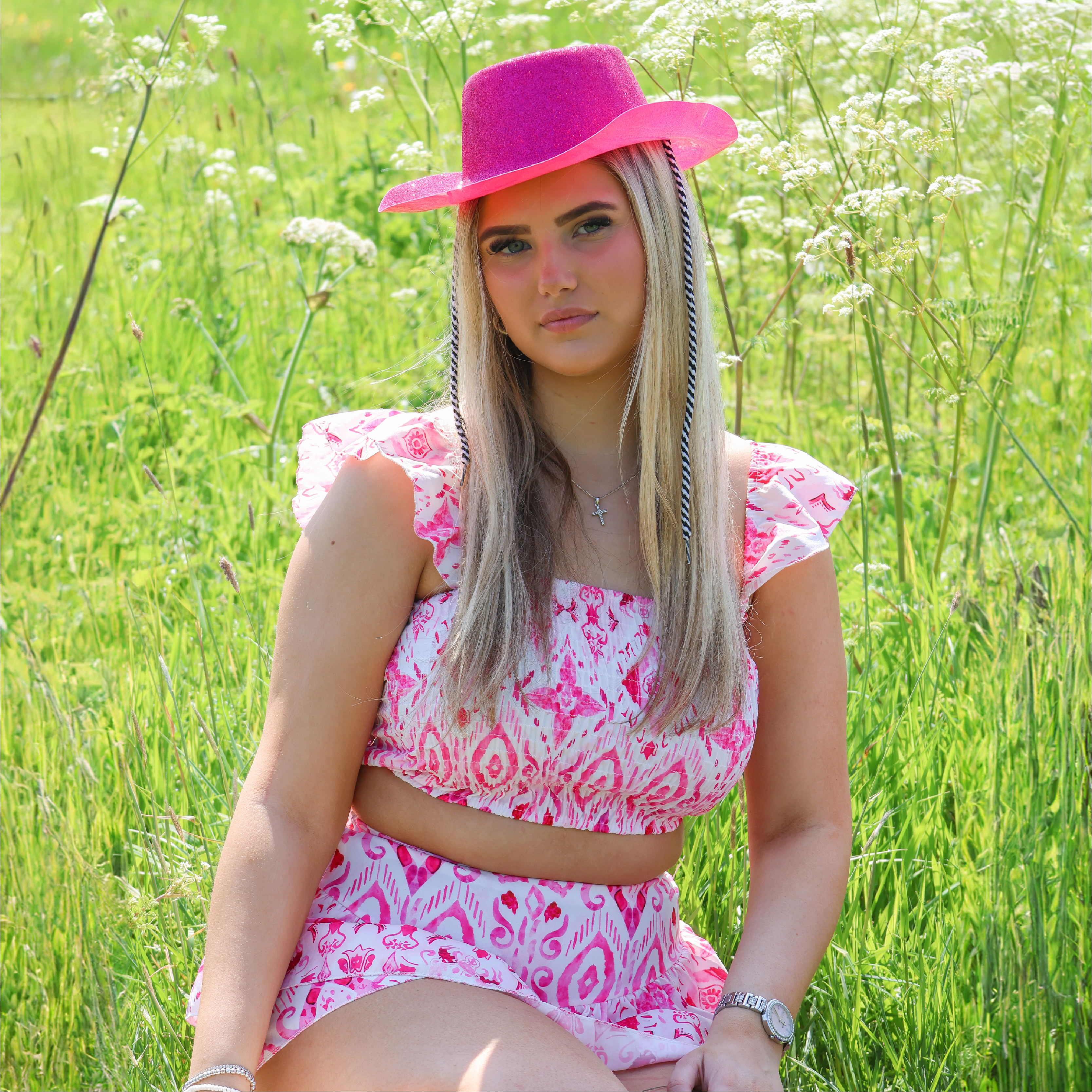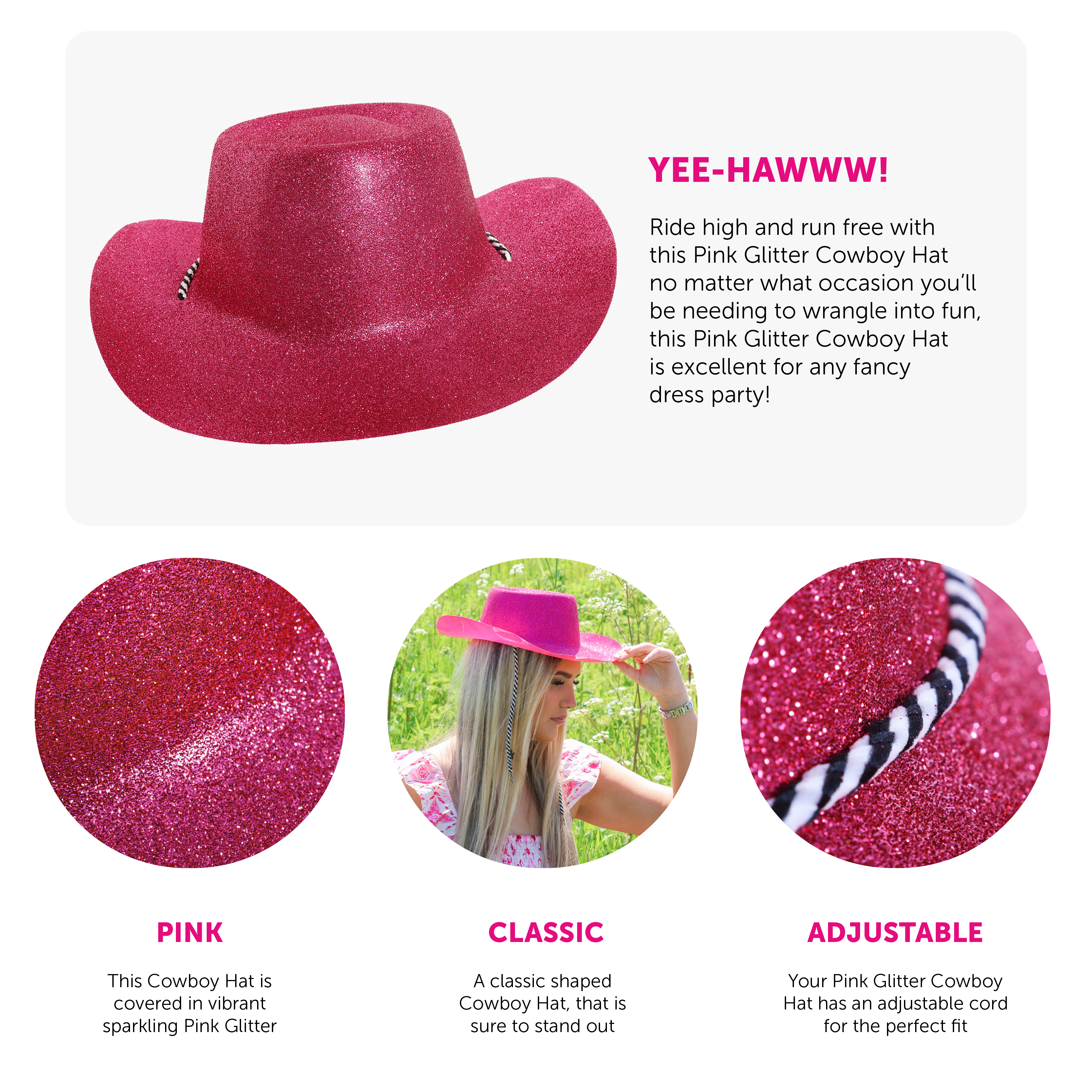 PINK GLITTER COWBOY HAT: Ride high and run free with this Pink Glitter Cowboy Hat no matter what occasion you’ll be needing to wrangle into fun, this Pink Glitter Cowboy Hat is excellent for any fancy dress party!