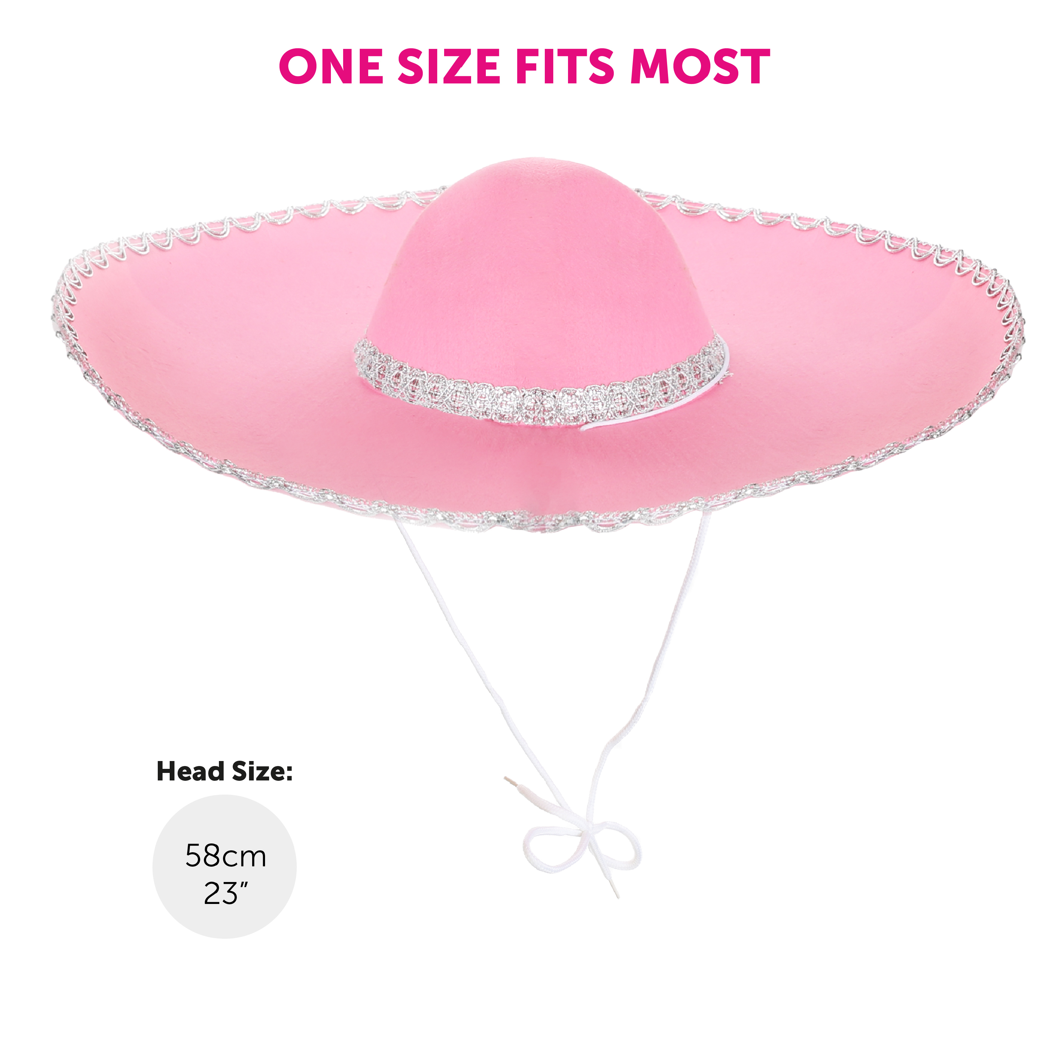 ONE SIZE FITS MOST: The Pink Sombrero Hat is one size for most Adults to wear comfortably with a head size measuring up to 58cm (23"), this is the perfect Hat to add to your Mexican Costume!