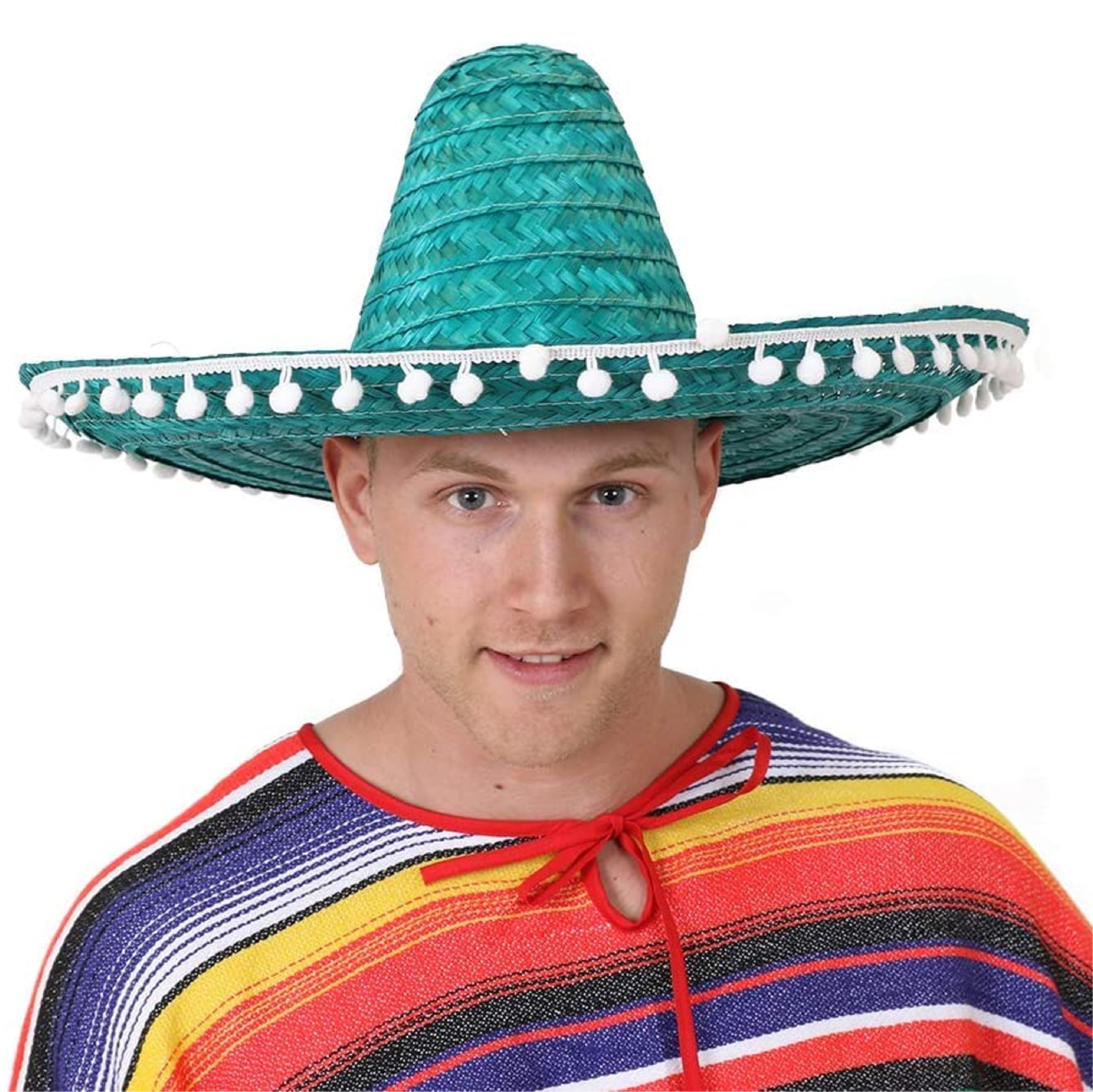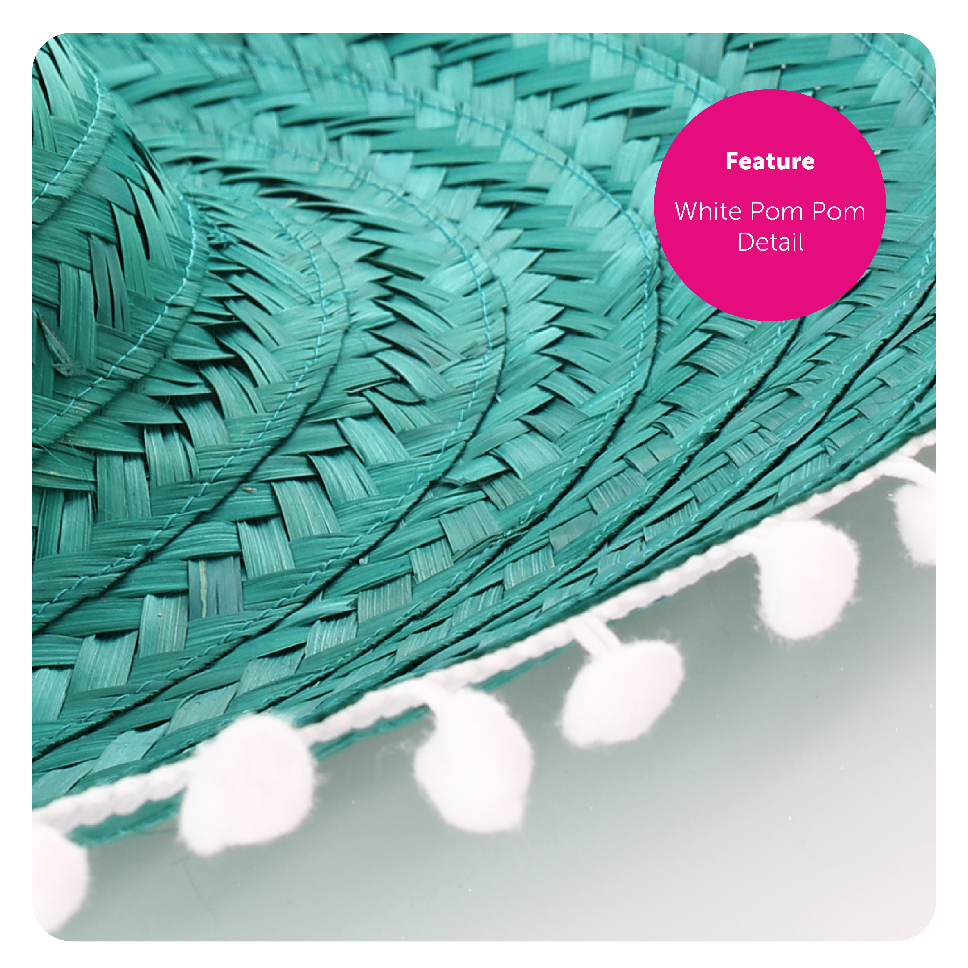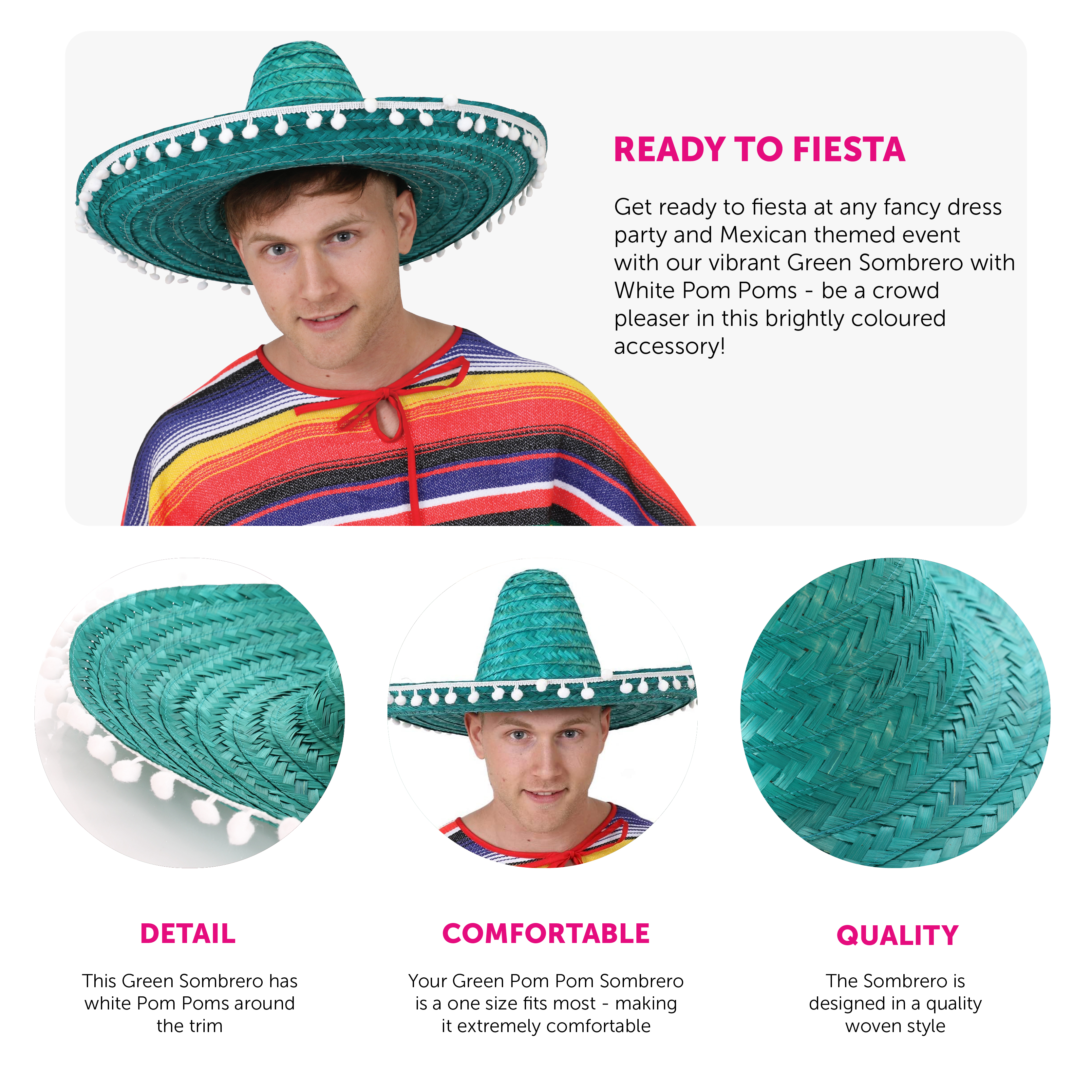 GREEN POM-POM SOMBRERO HAT: Take the fiesta and life of the party with you wherever you go for your next big event or occasion with our Green Pom-Pom Sombrero Hat and liven up any party or gathering! AVAILABLE IN MULTIPLE PACKS: Your Green Pom-Pom Sombrero Hats are available in multiple packs, from Single, Packs of 3, Packs of 6, and Packs of 12 to share amongst your friends and family! ONE SIZE FITS MOST: Being a very comfortable size for all adults having a very well-rounded size, this Green Sombrero Hat is wearable for most if not all adults, measuring in at 58cm (23") for head space, this is the perfect hat to wear for a fun night! GREAT QUALITY HAT: Not only being a great-looking authentically made Sombrero Hat, but it is made with a strong and sturdy base, Pom-Pom details on the brimming, and made from a fantastic, Embroidered material that you can reuse over and over again! PERFECT FOR ANY FANCY DRESS PARTY: Whether it be a Mexican-themed party, a night out with some friends, or even just a fun accessory, you’ll be sure to get some nights of fun out of your Green Pom-Pom Sombrero Hat!