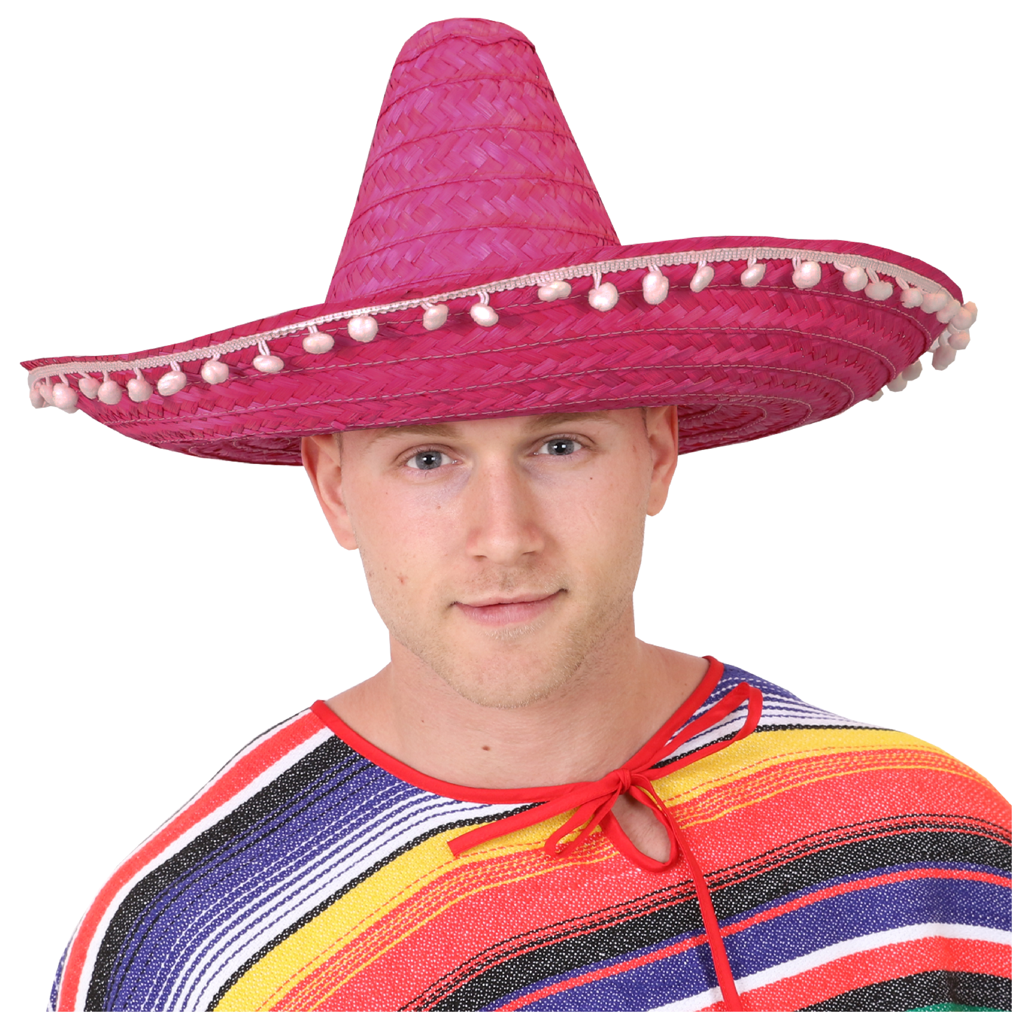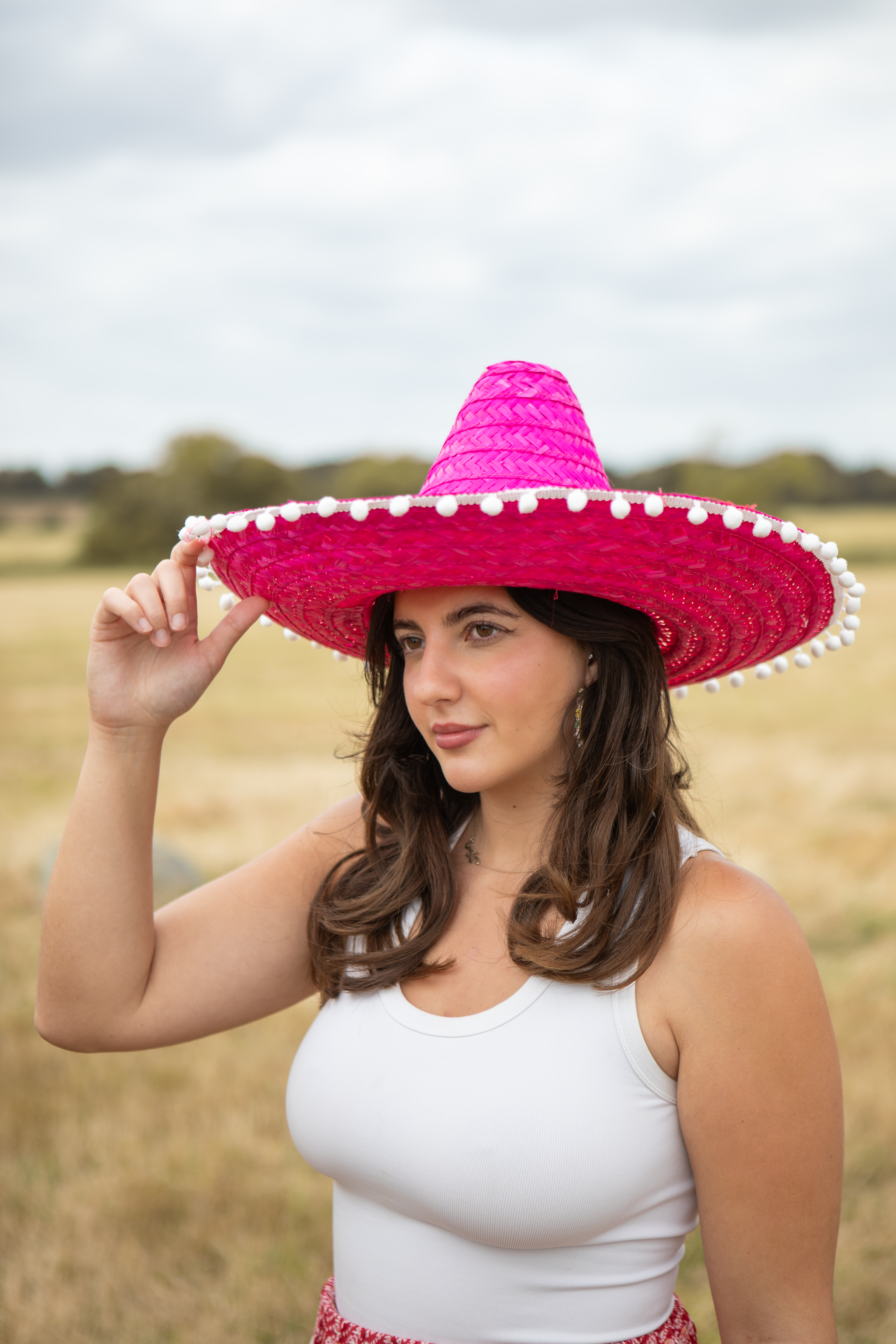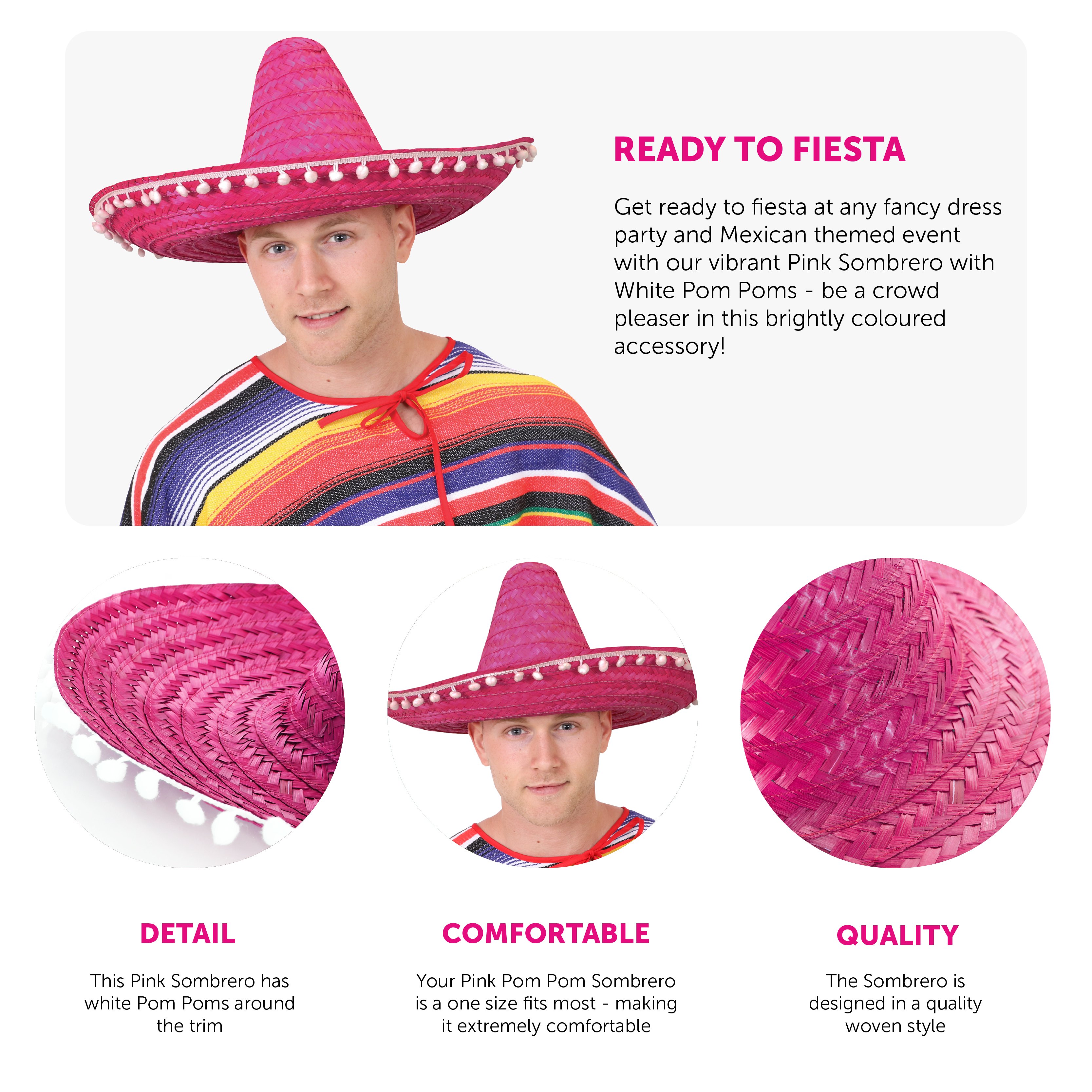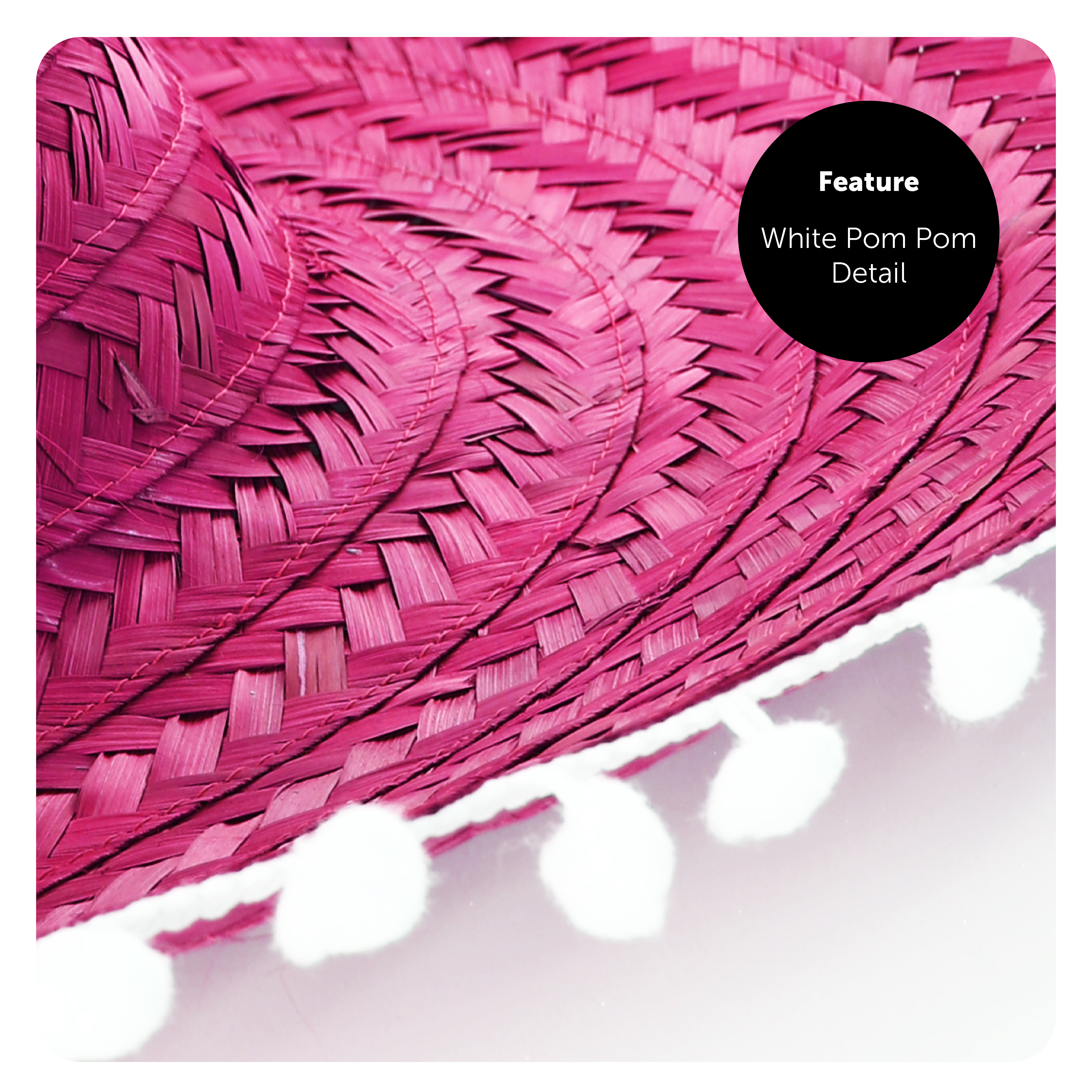 PINK POM-POM SOMBRERO HAT: Take the fiesta and life of the party with you wherever you go for your next big event or occasion with our Pink Pom-Pom Sombrero Hat and liven up any party or gathering!