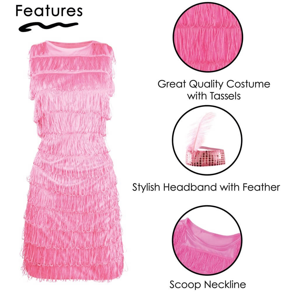 PERFECT FOR 1920S FANCY DRESS: If you need a good old-fashioned dress up for any party or event, or just a grand 1920s Occasion, our beautifully made Ladies Pink Flapper Dress has you covered for all Fancy Dress Costume parties!