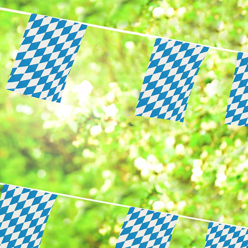 OKTOBERFEST BAVARIAN FLAG BUNTING: Celebrate the great German festival of Oktoberfest every year with your brilliant Oktoberfest Bavarian Flag Bunting and swing your steins of beer around with joy!
