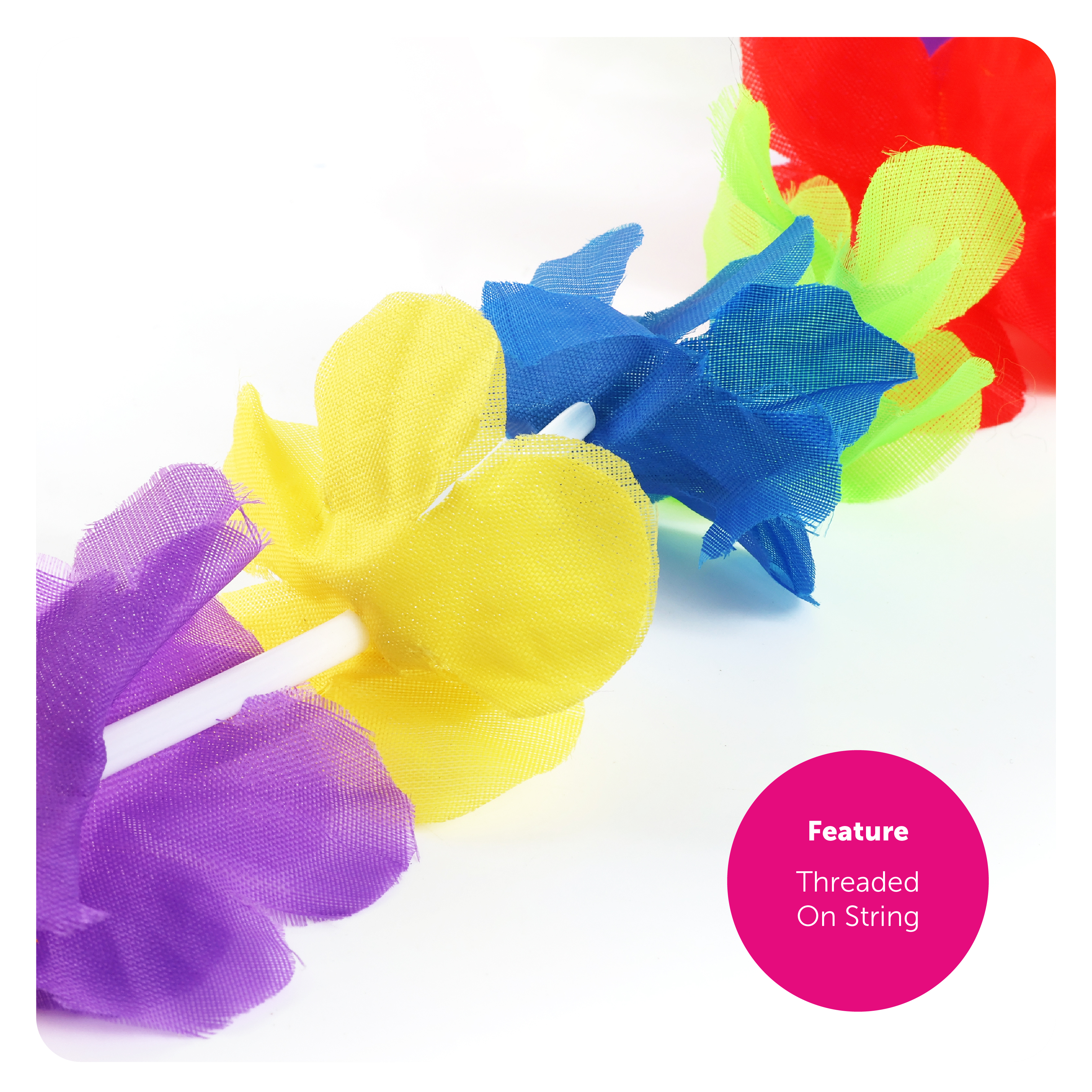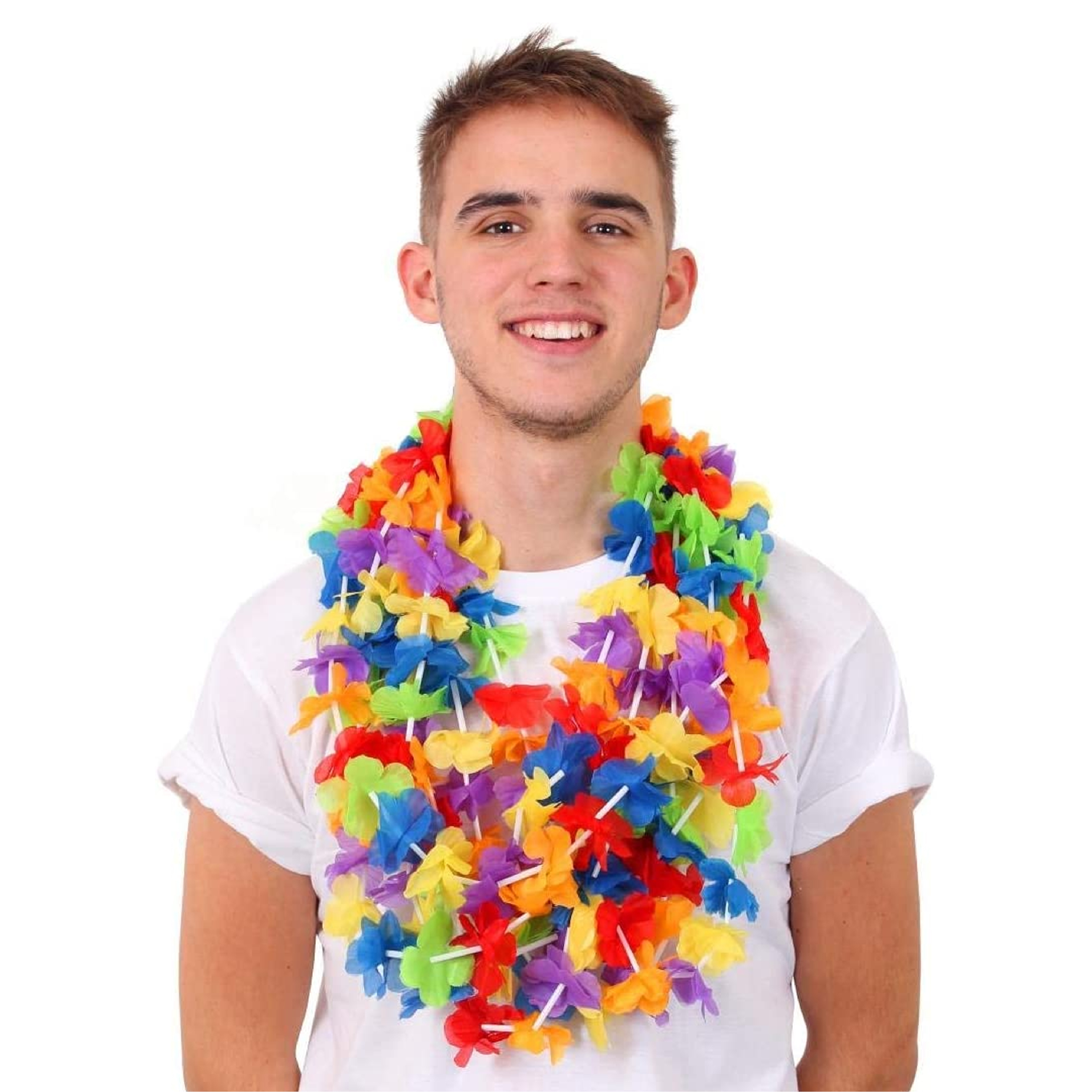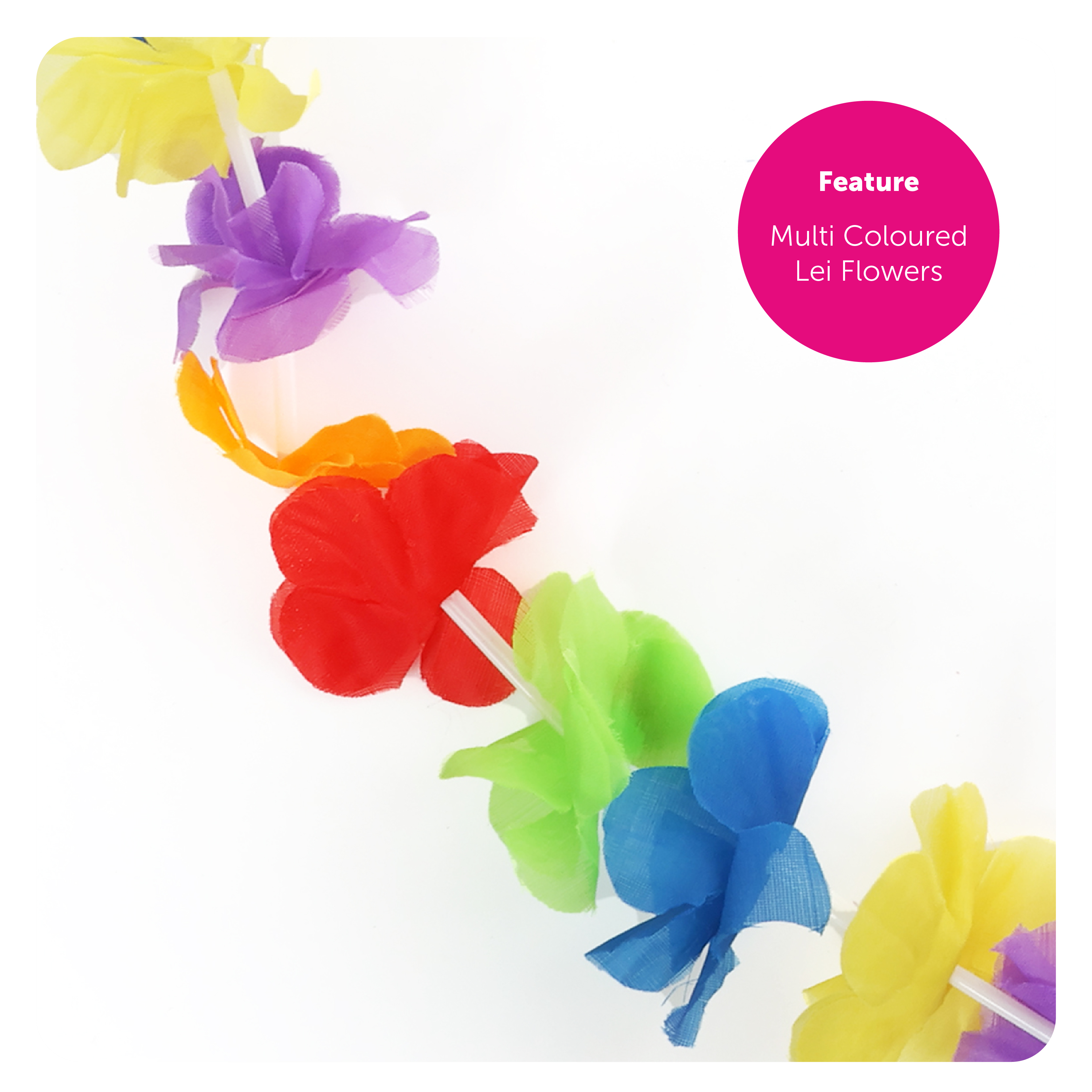FLOWER LEI DETAILS: This Rainbow Lei Flower Necklace is a Garland that is made up with multicoloured Flower Leis, a soft and comfortable Hawaiian styled Necklace for you to wear comfortably in the sun at any event!