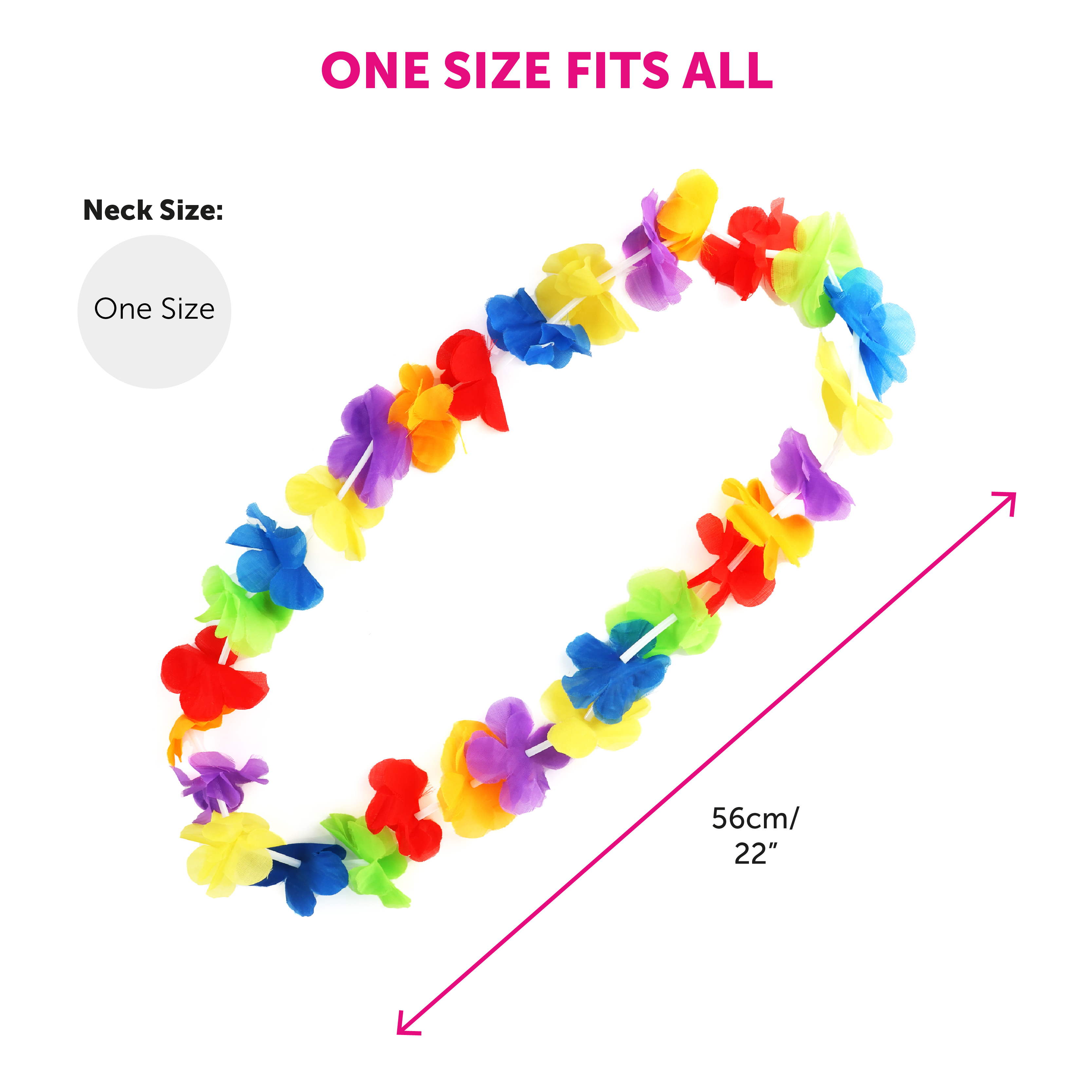 LEI MEASUREMENT: Your Rainbow Lei Flower Necklace is an approximate length of 56cm/22", this size makes them suitable for most to wear comfortably at any summer themed party and Pride events!