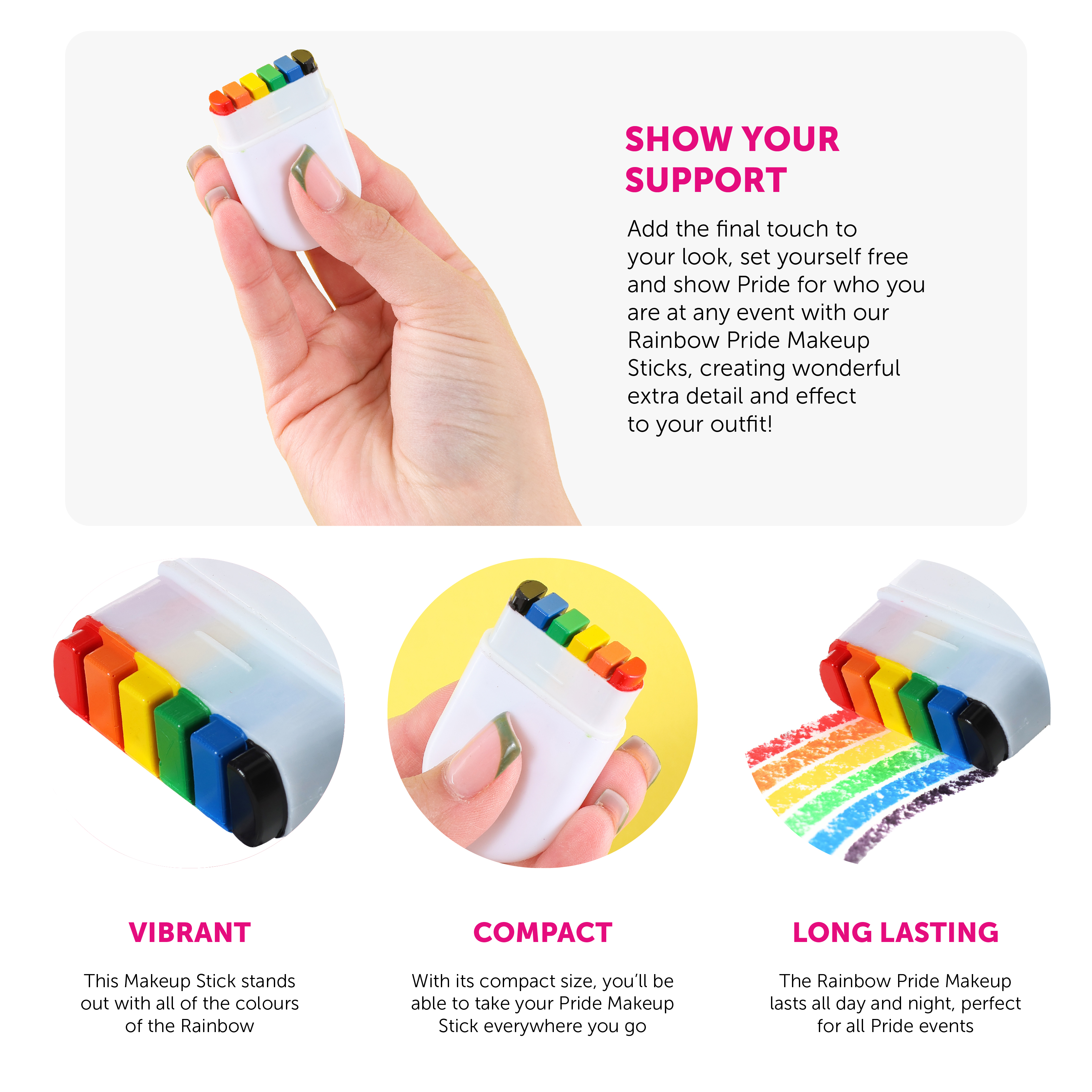 RAINBOW PRIDE MAKEUP STICK: Add the final touch to your look, set yourself free and show Pride for who you are at any event with our Rainbow Pride Makeup Sticks, creating wonderful extra detail and effect to your outfit!