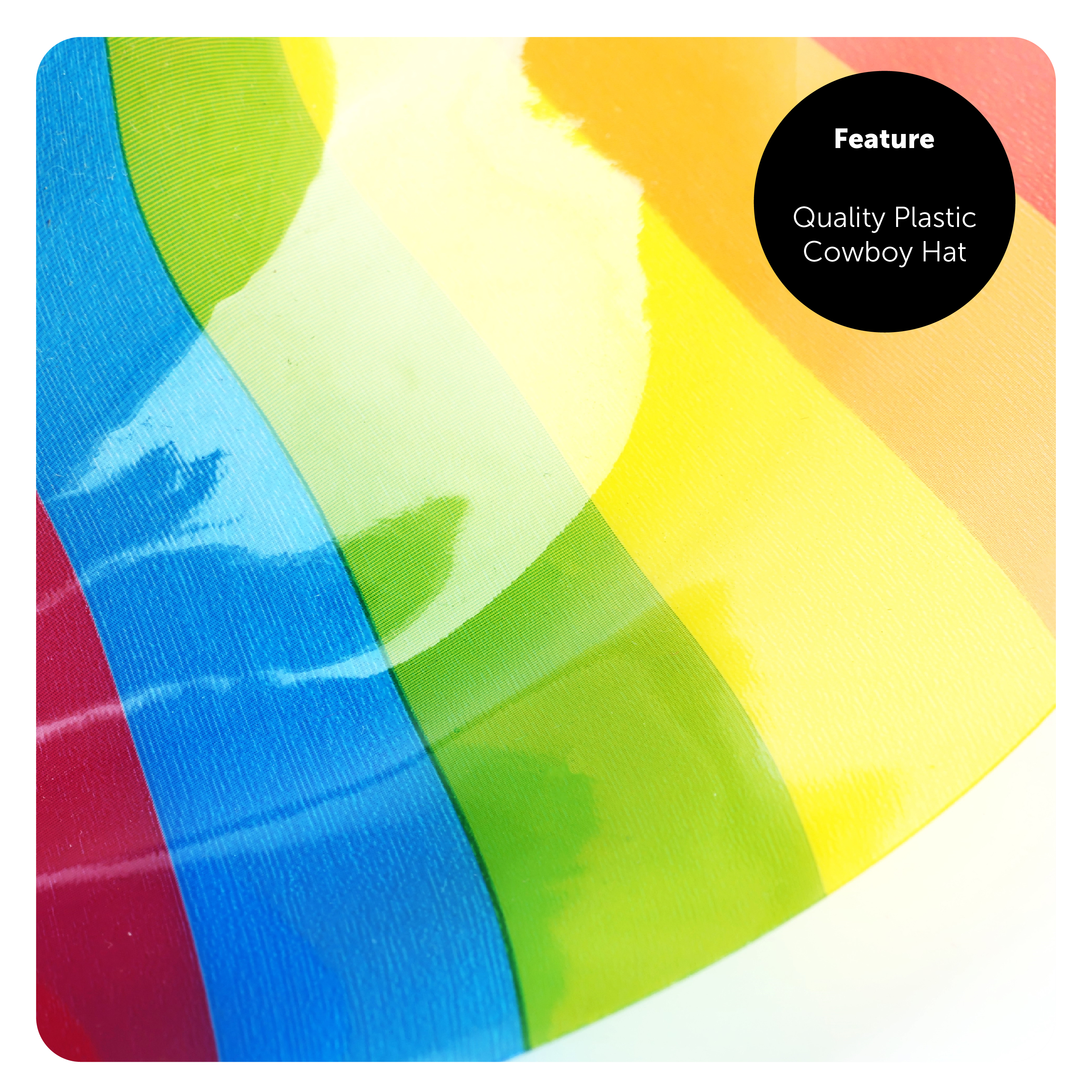 ONE SIZE FITS MOST: The Plastic Rainbow Cowboy Hat is one size, designed to suitably fit most Adults comfortably with a head size of 58cm (23"), the perfect look for any Pride event!