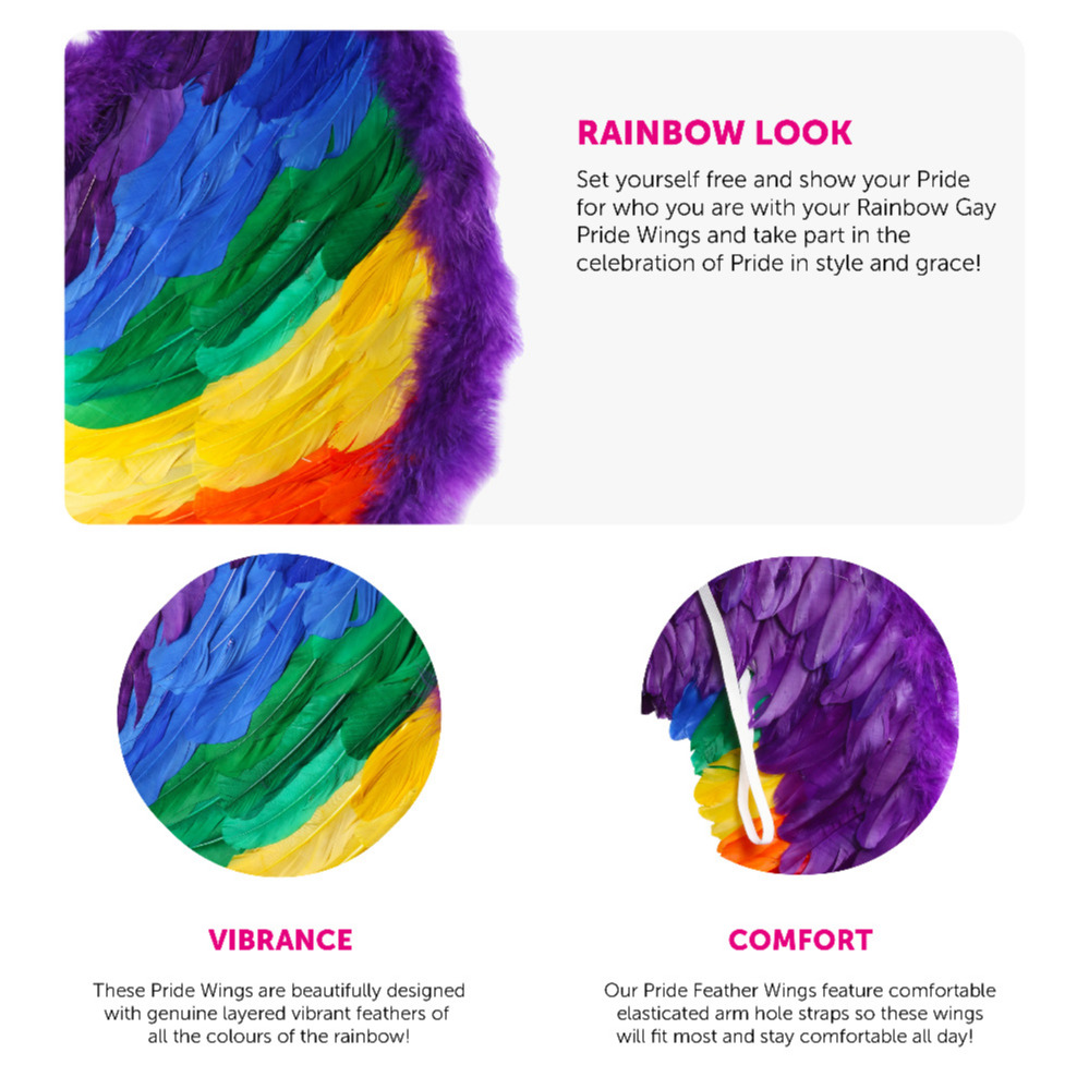 RAINBOW GAY PRIDE FEATHER WINGS: Set yourself free and show your Pride for who you are with your Rainbow Gay Pride Wings and take part in the celebration of Pride in style and grace!