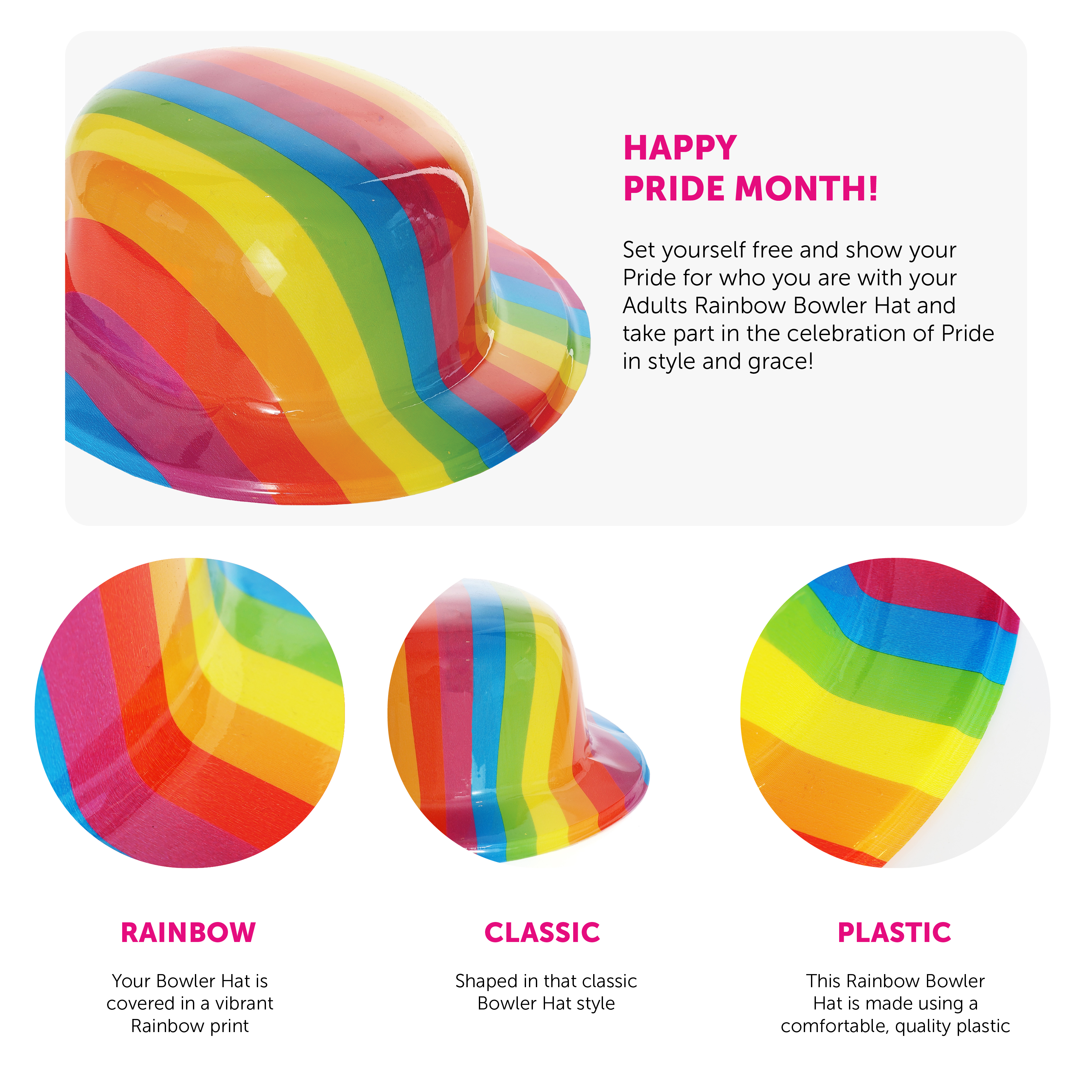 ADULTS RAINBOW BOWLER HAT: Set yourself free and show your Pride for who you are with your Adults Rainbow Bowler Hat and take part in the celebration of Pride in style and grace!