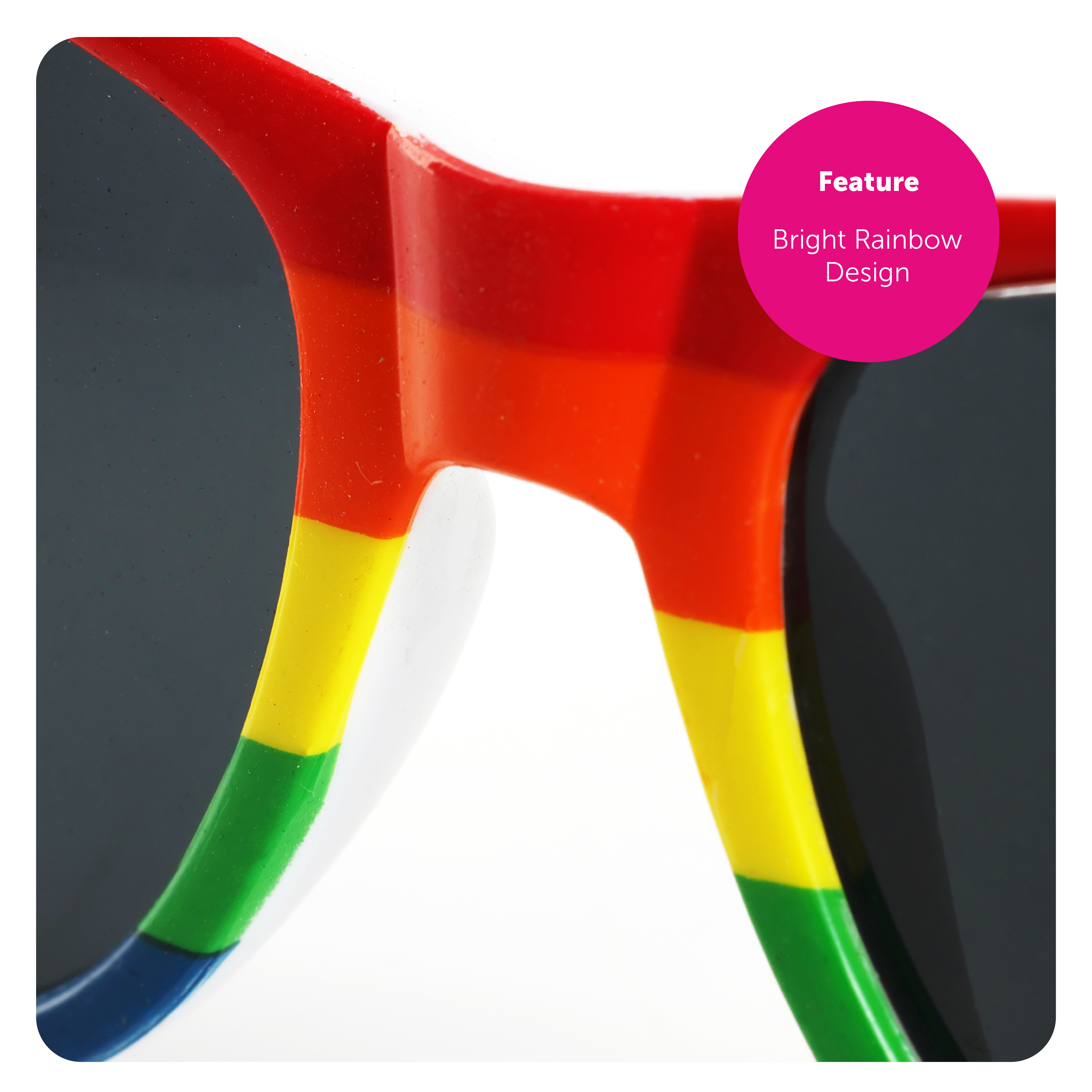 QUALITY DESIGN: Designed to a high quality, these brightly coloured Rainbow Sunglasses are a great accessory that can be easily carried around in your pocket or bag with the foldable frame!