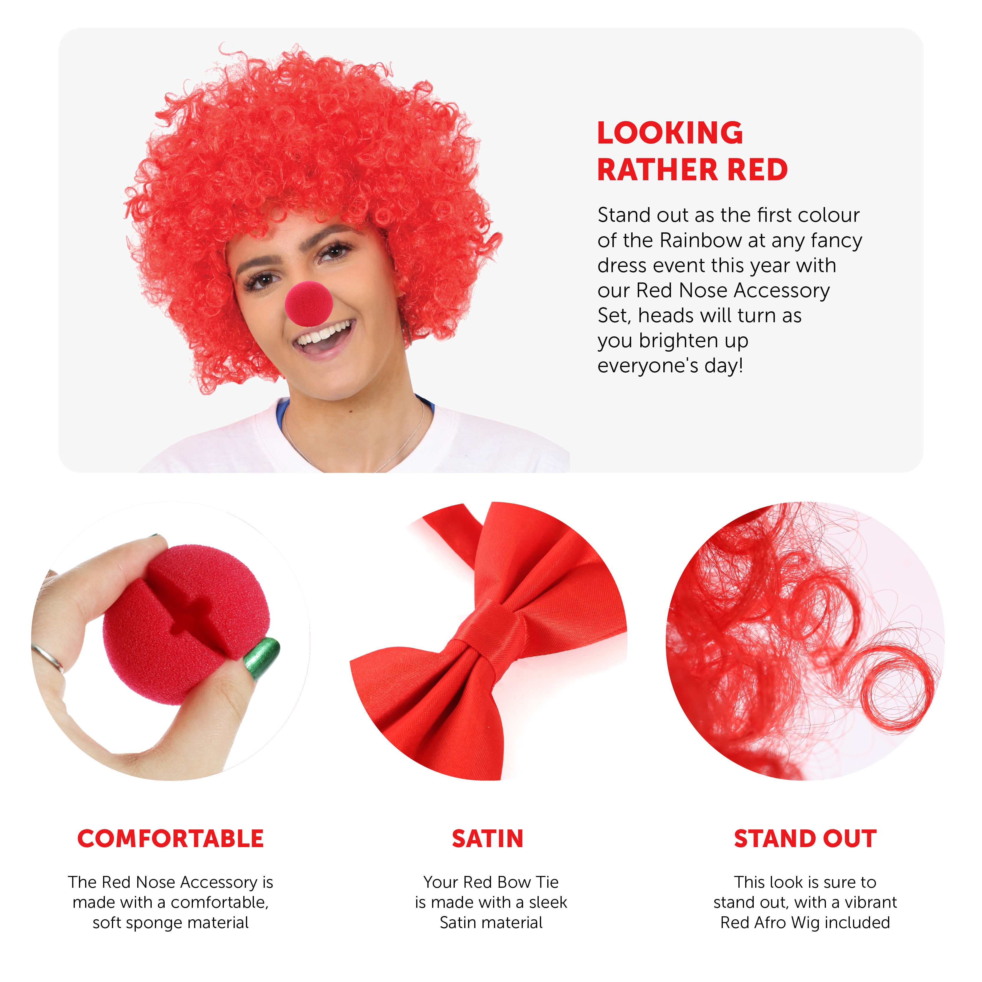 - RED NOSE ACCESSORY SET: Stand out as the first colour of the Rainbow at any fancy dress event this year with our Red Nose Accessory Set, heads will turn as you brighten up everyone's day!