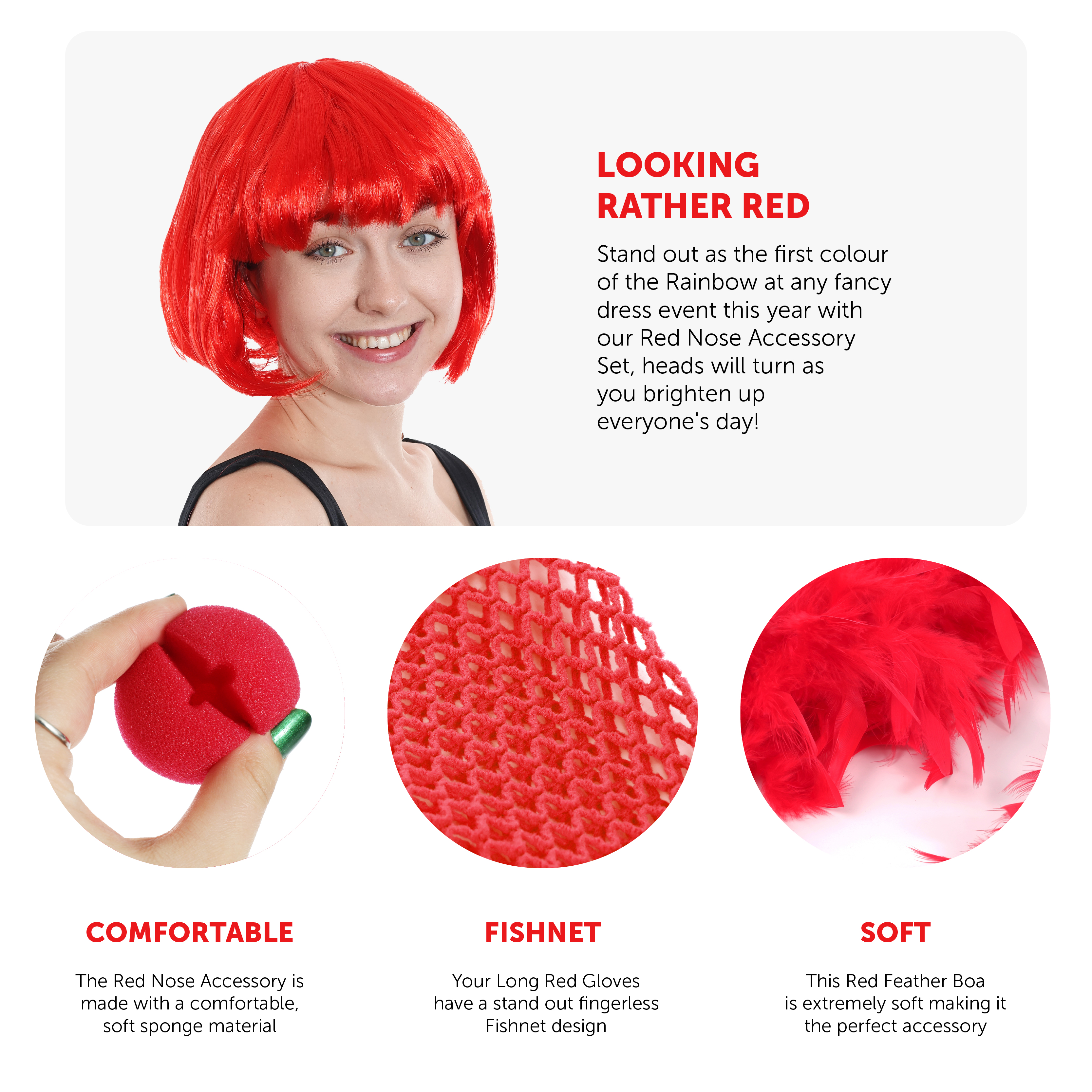 Red Nose Accessory Set - Nose, Bob Wig, Feather Boa, Fishnet Gloves, Tutu & Leg Warmers £18.99